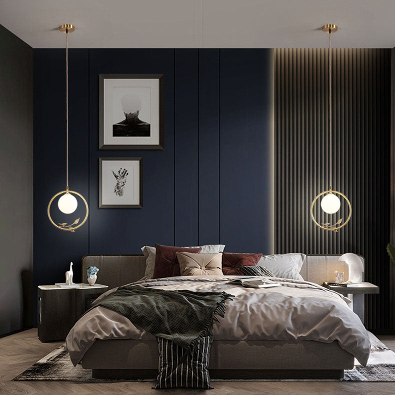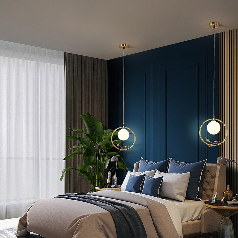 مصباح معلق دائري من النحاس والزجاج الفاخر من نورديك، مزود بمصباح واحد