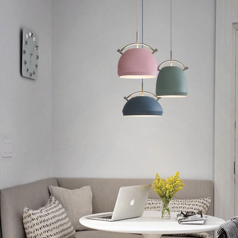 مصباح معلق دائري من سبائك الألومنيوم بتصميم ماكارون نورديك، مزود بمصباح واحد