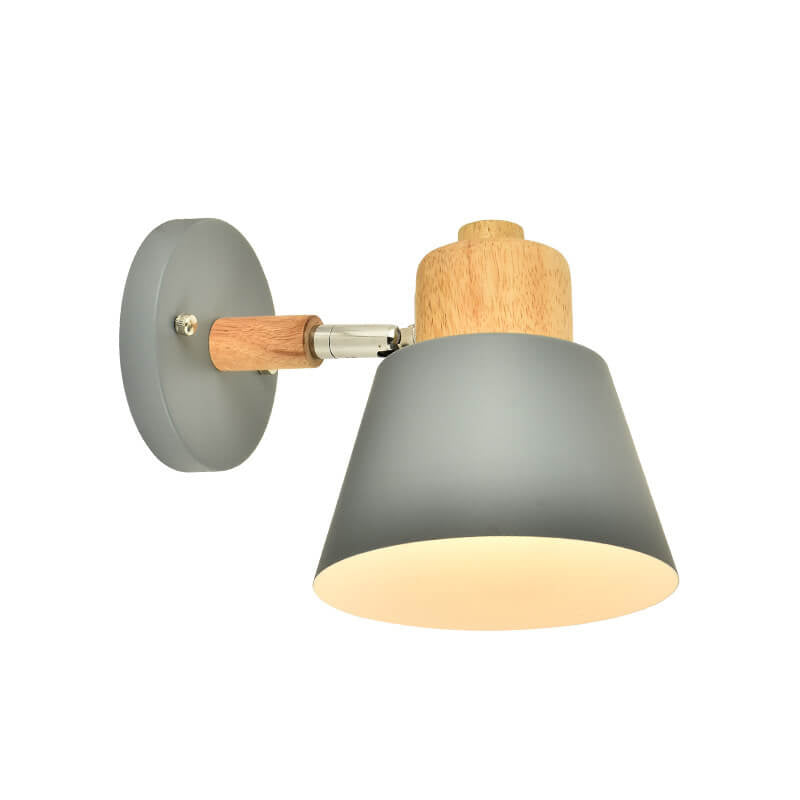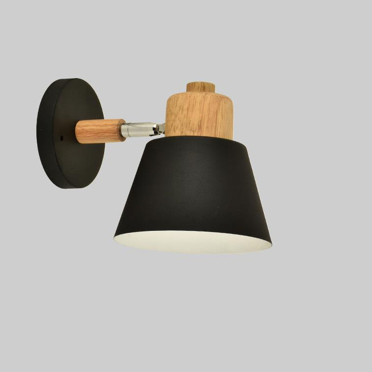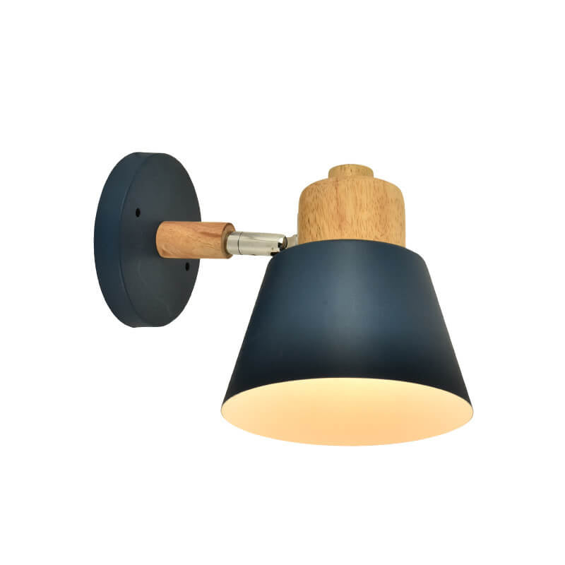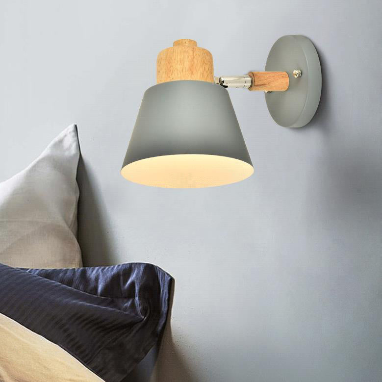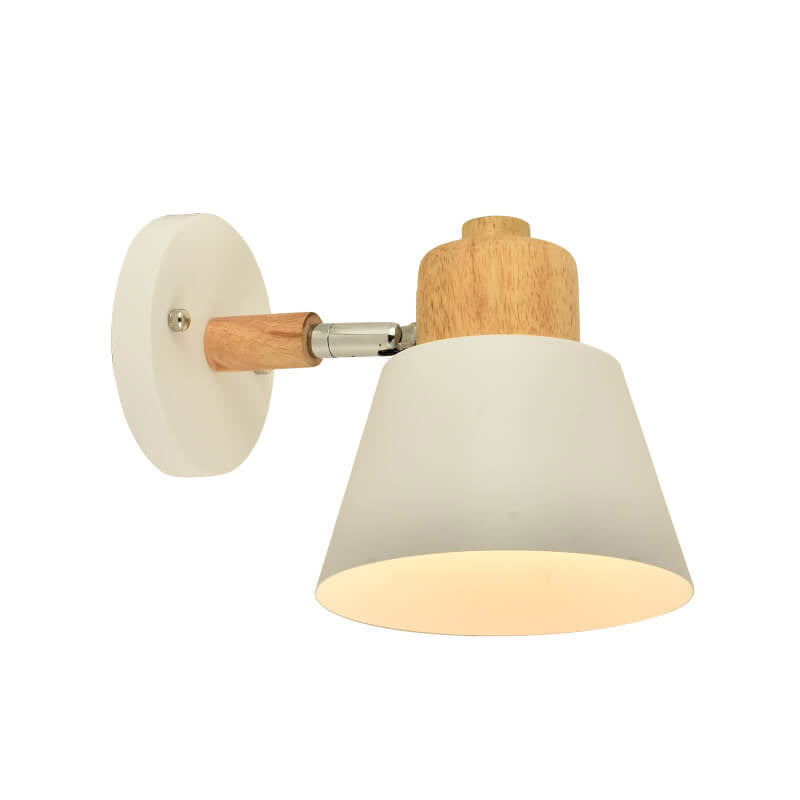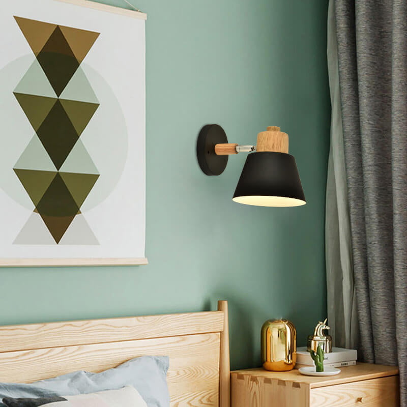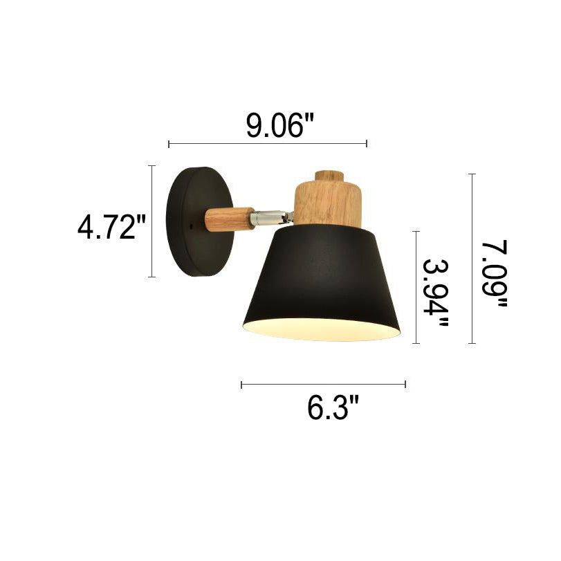 مصباح حائطي نورديك مخروطي الشكل بغطاء خشبي وقاعدة واحدة وقاعدة خشبية