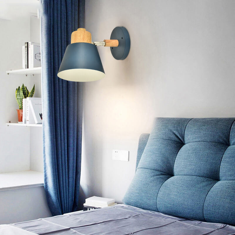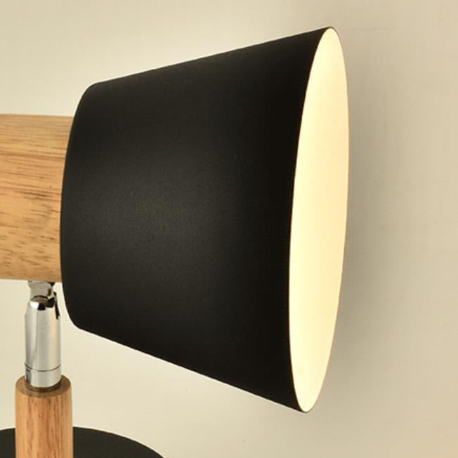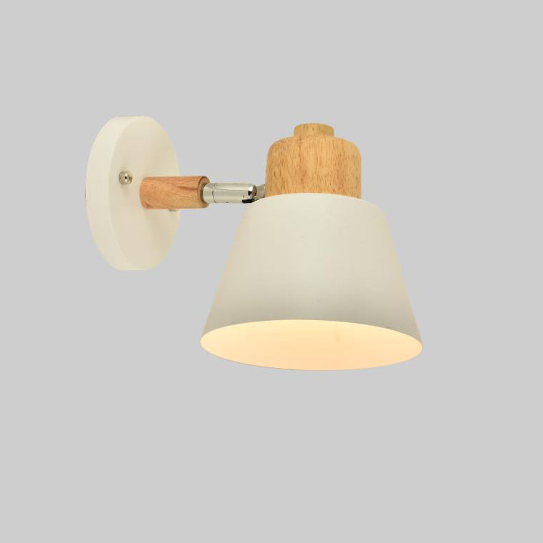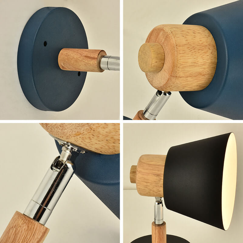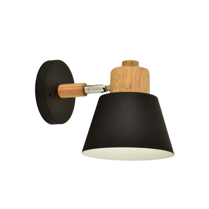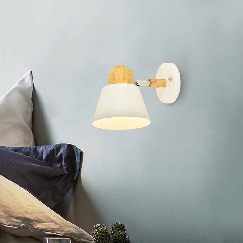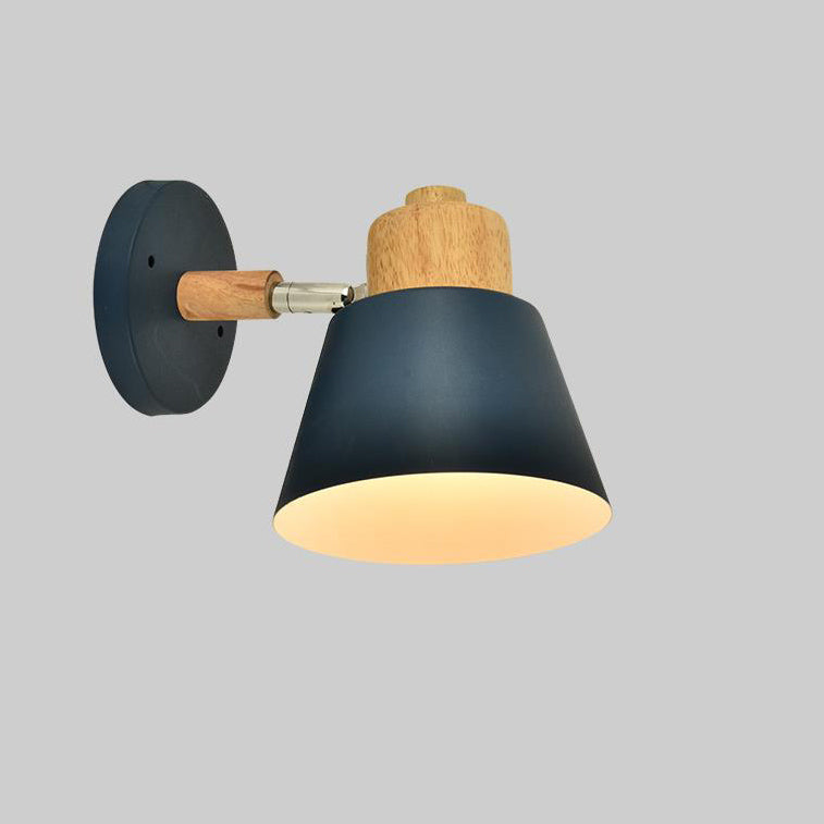 مصباح حائطي نورديك مخروطي الشكل بغطاء خشبي وقاعدة واحدة وقاعدة خشبية
