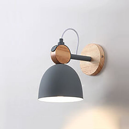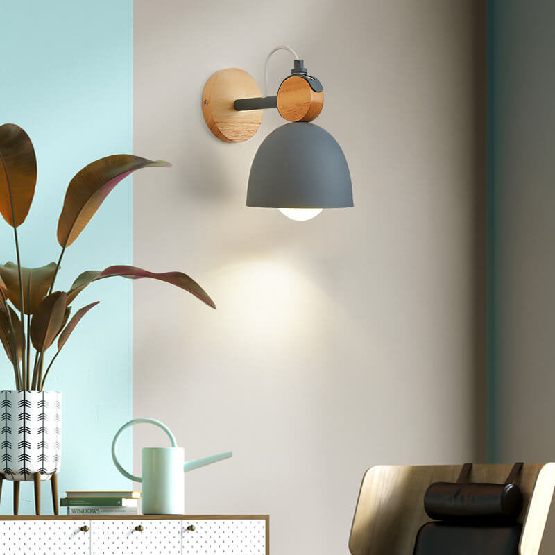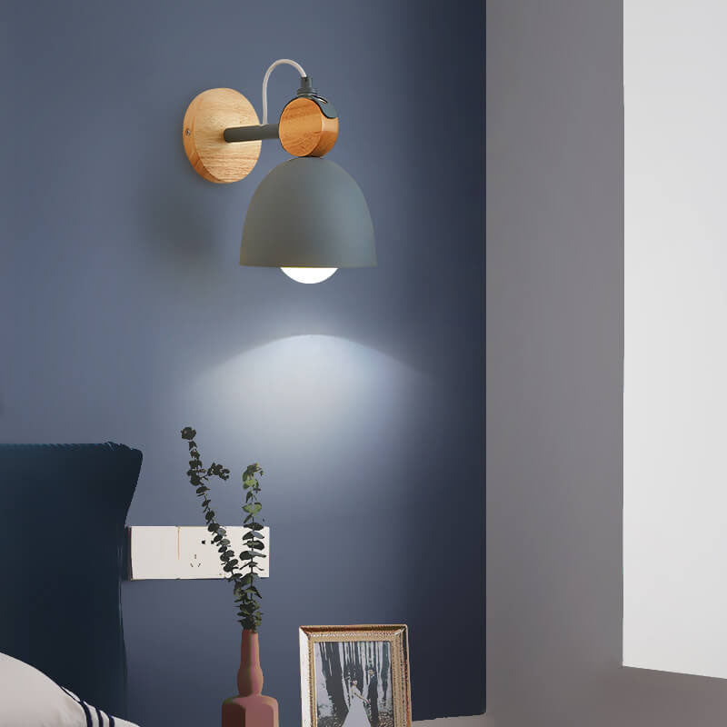 مصباح حائطي بهيكل خشبي على شكل قبة ماكارون نورديك مزود بإضاءة واحدة