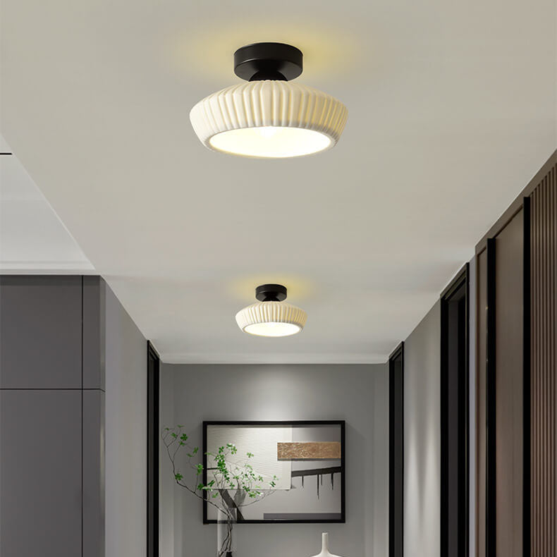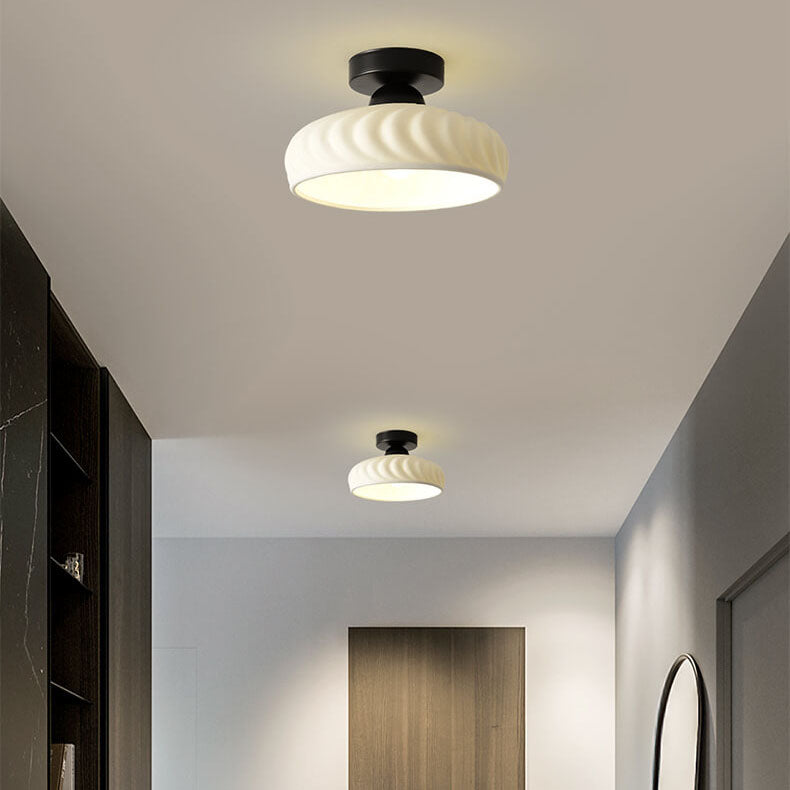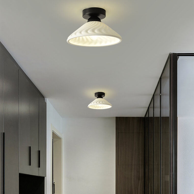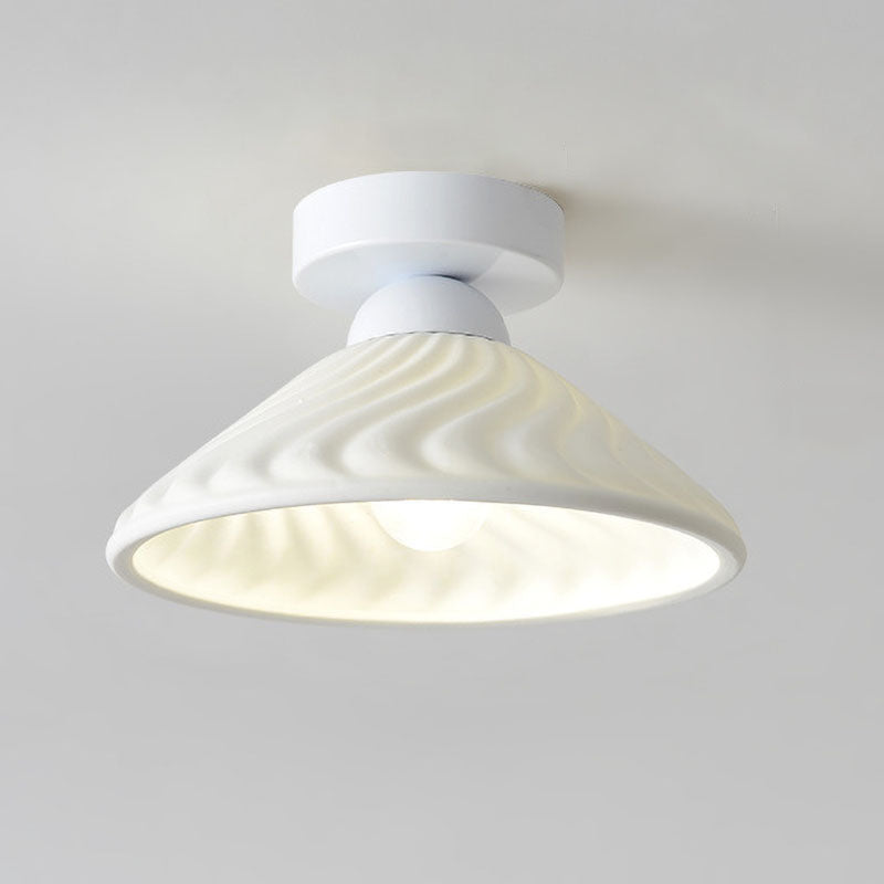 مصباح سقف مخروطي دائري من السيراميك بتصميم بسيط على الطراز الاسكندنافي، مزود بإضاءة واحدة وتركيب شبه مسطح