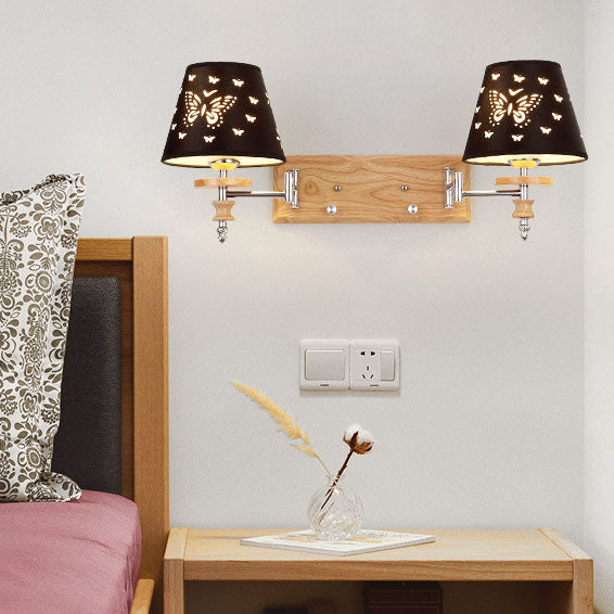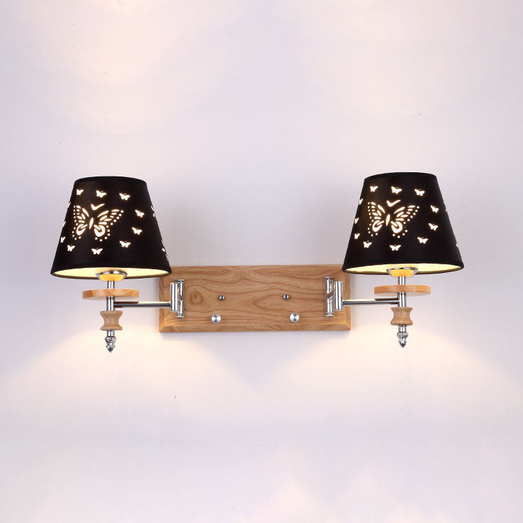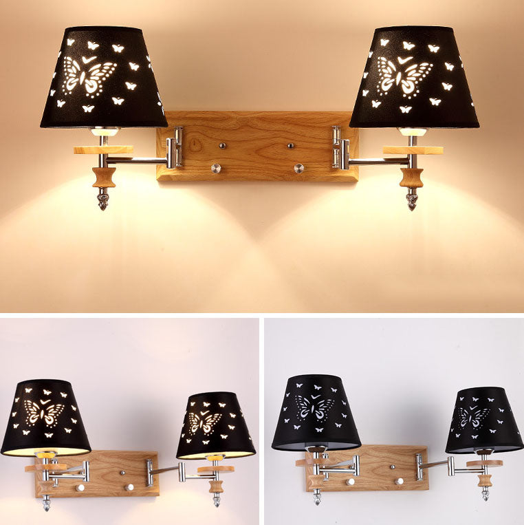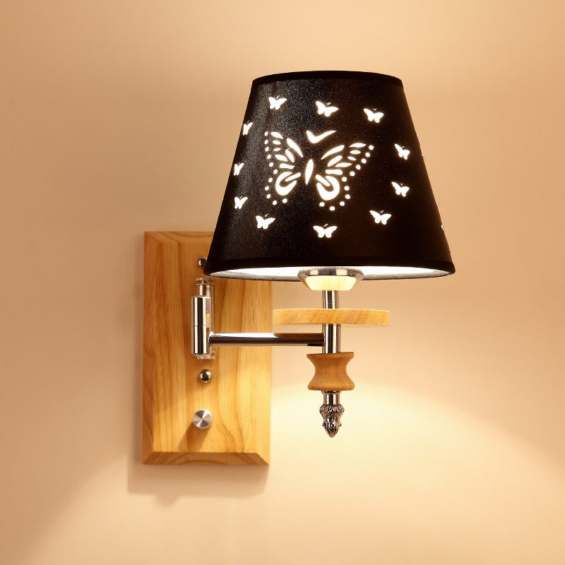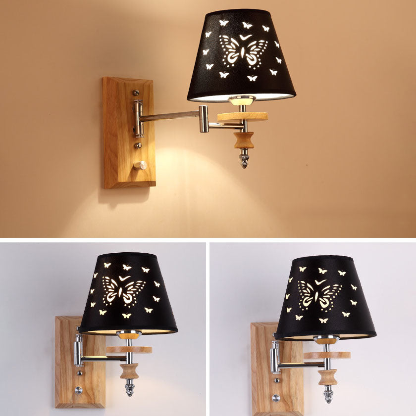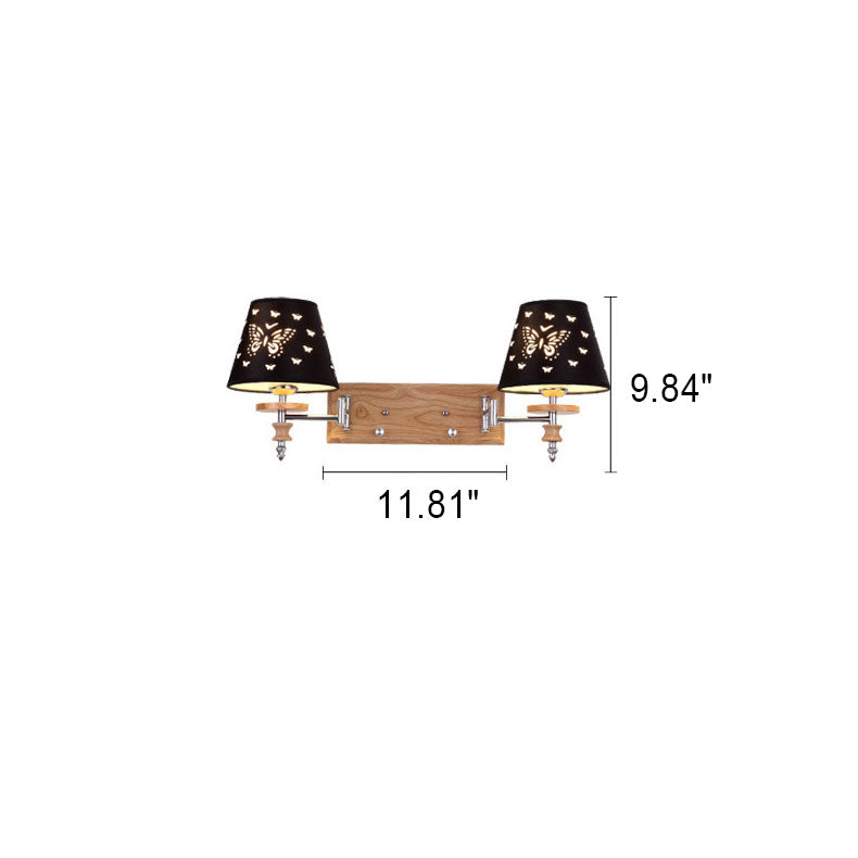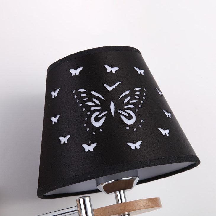 مصباح حائطي بتصميم مخروطي على شكل فراشة من القماش الأسود بتصميم بسيط إسكندنافي، نصف ضوء