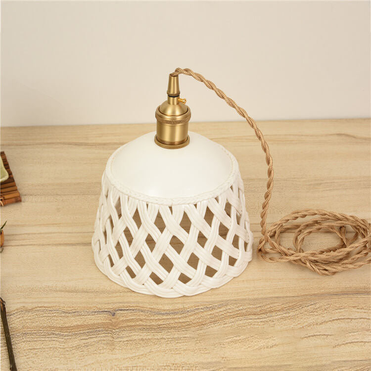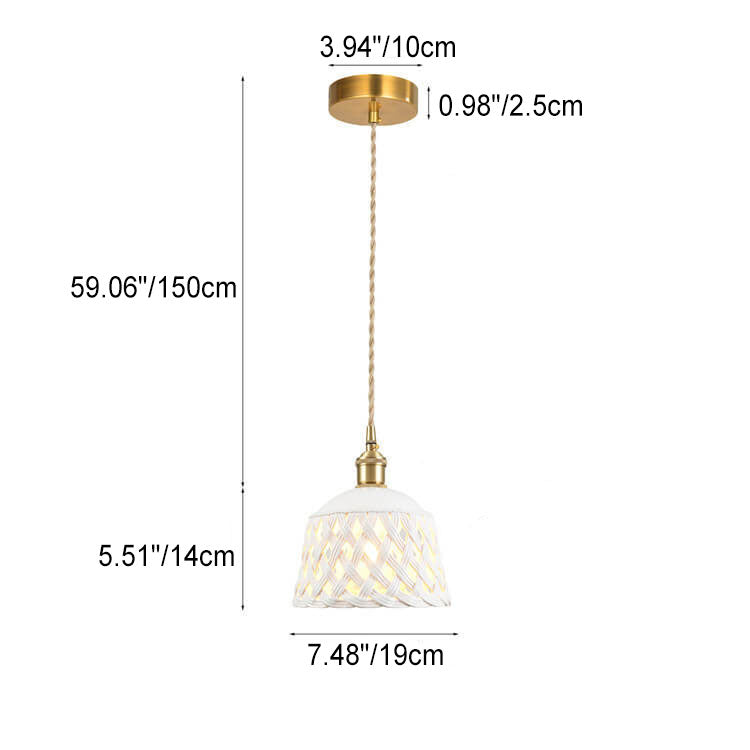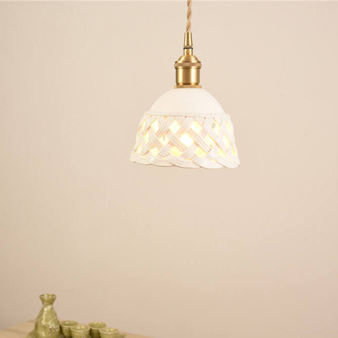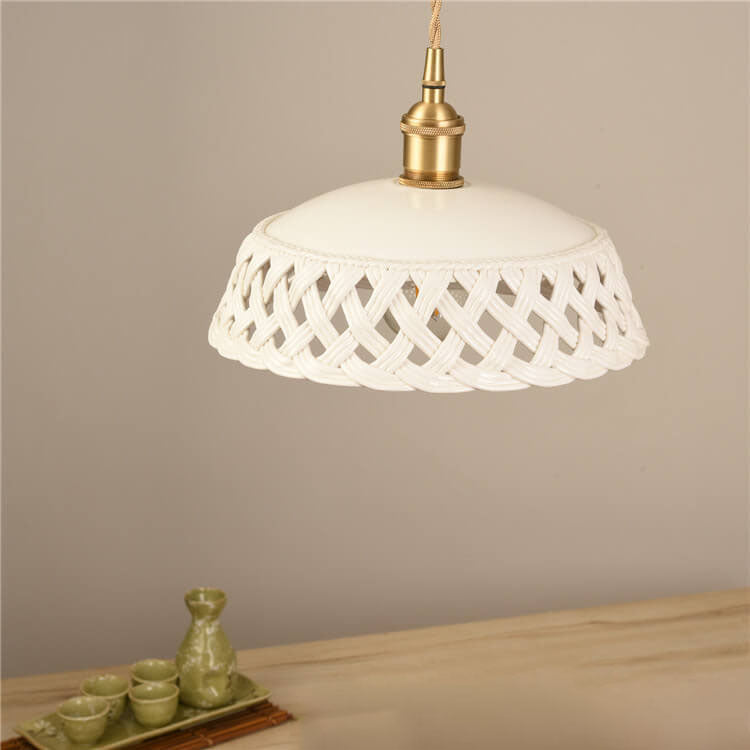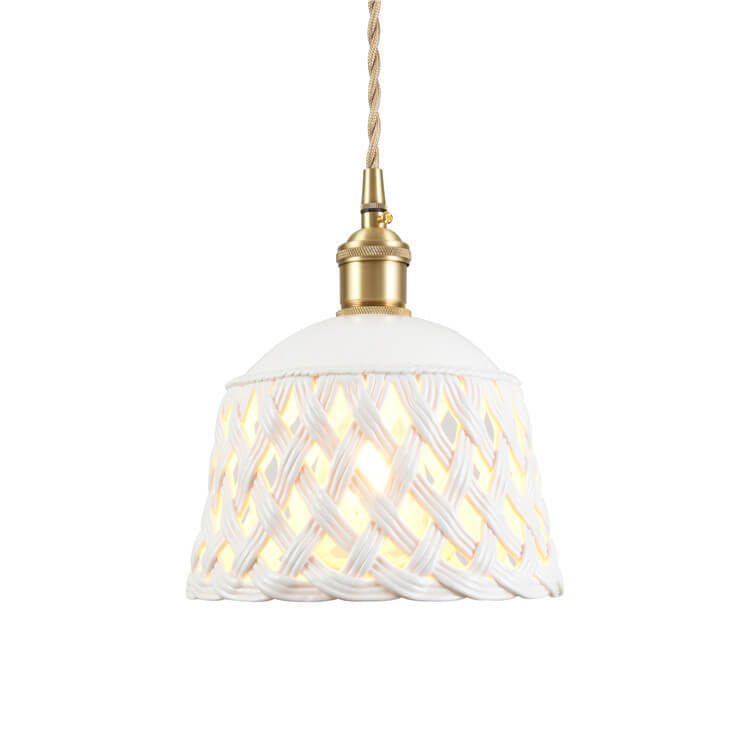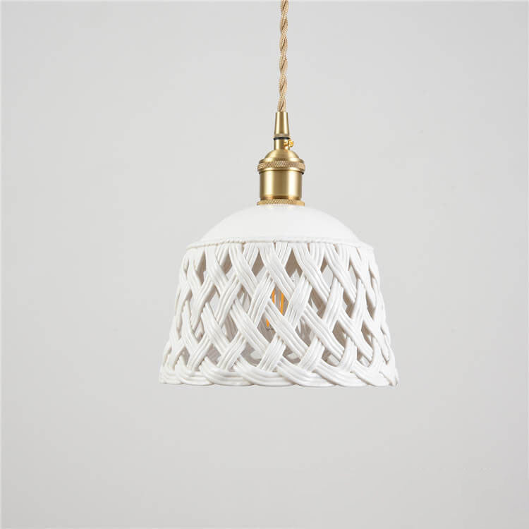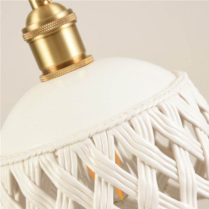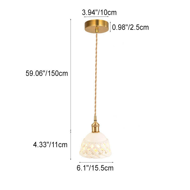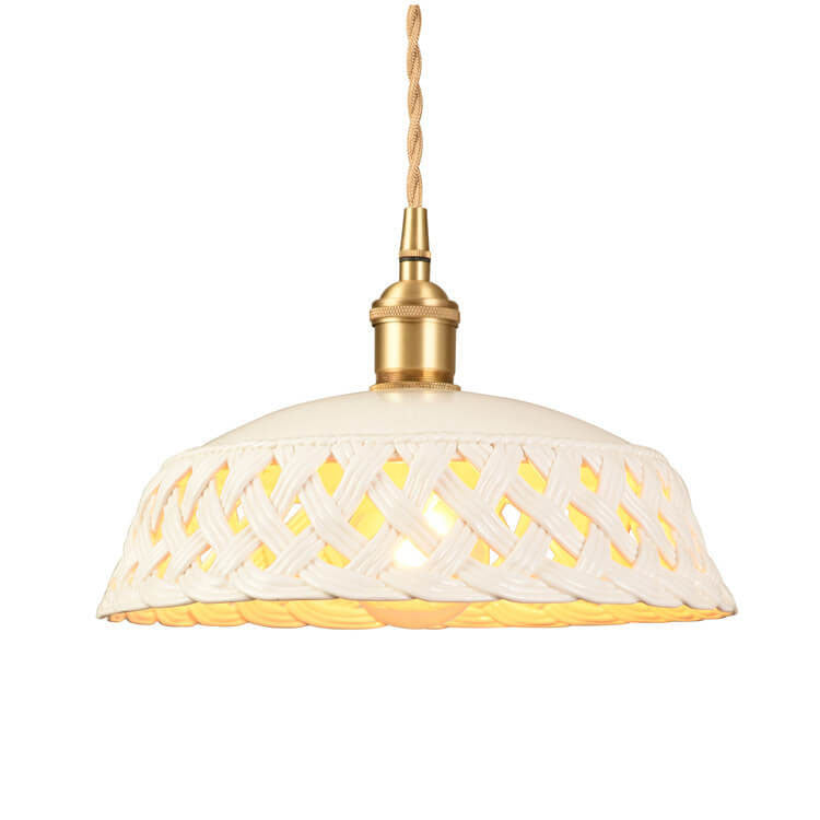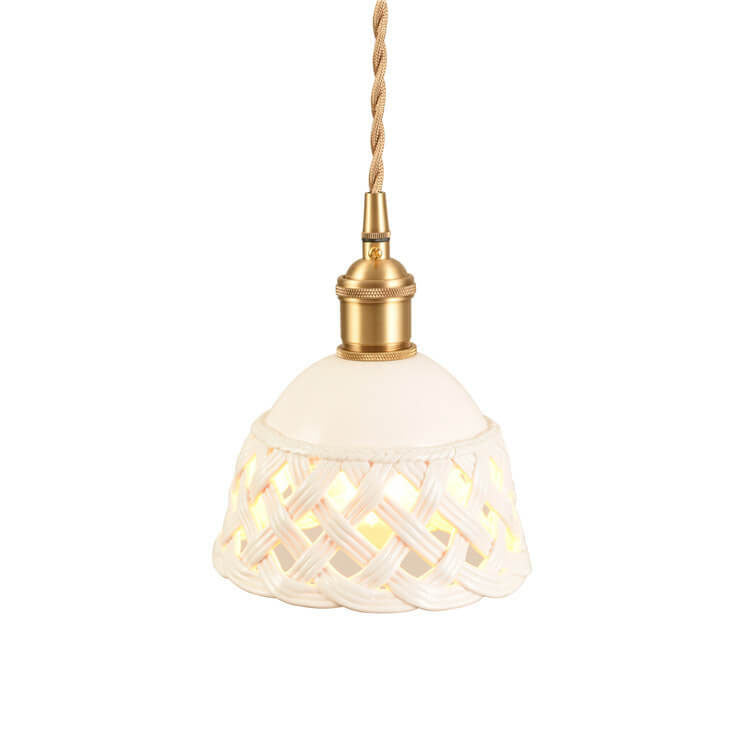 مصباح معلق نحاسي بتصميم قبة مجوف من السيراميك على الطراز الاسكندنافي البسيط، مزود بمصباح واحد