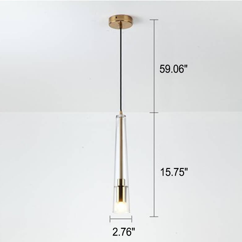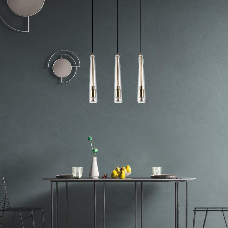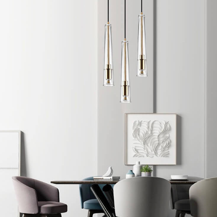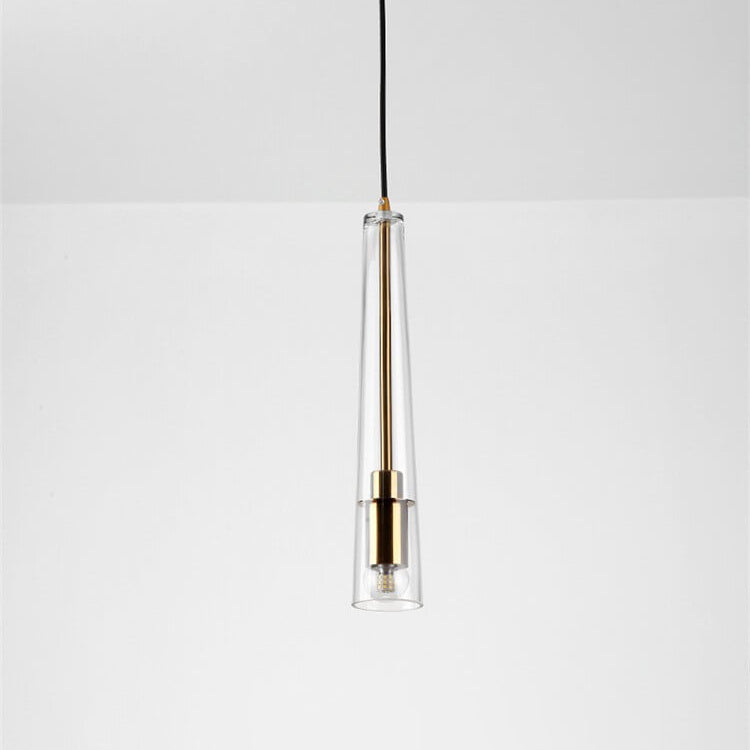 مصباح معلق طويل مخروطي الشكل من الزجاج الشفاف بتصميم بسيط إسكندنافي، مزود بمصباح واحد