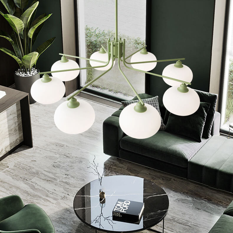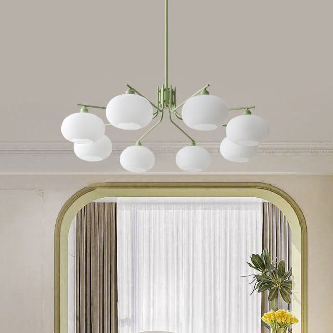 ثريا زجاجية دائرية بسيطة بتصميم نورديك مع ثريا خضراء بثلاثة مصابيح وخمسة مصابيح وثمانية مصابيح