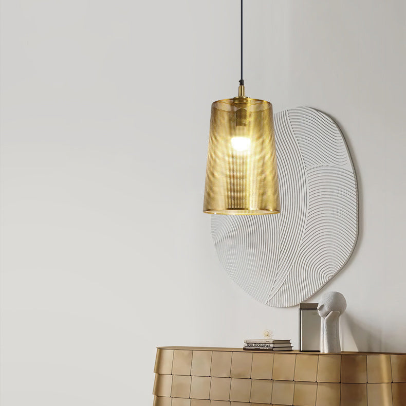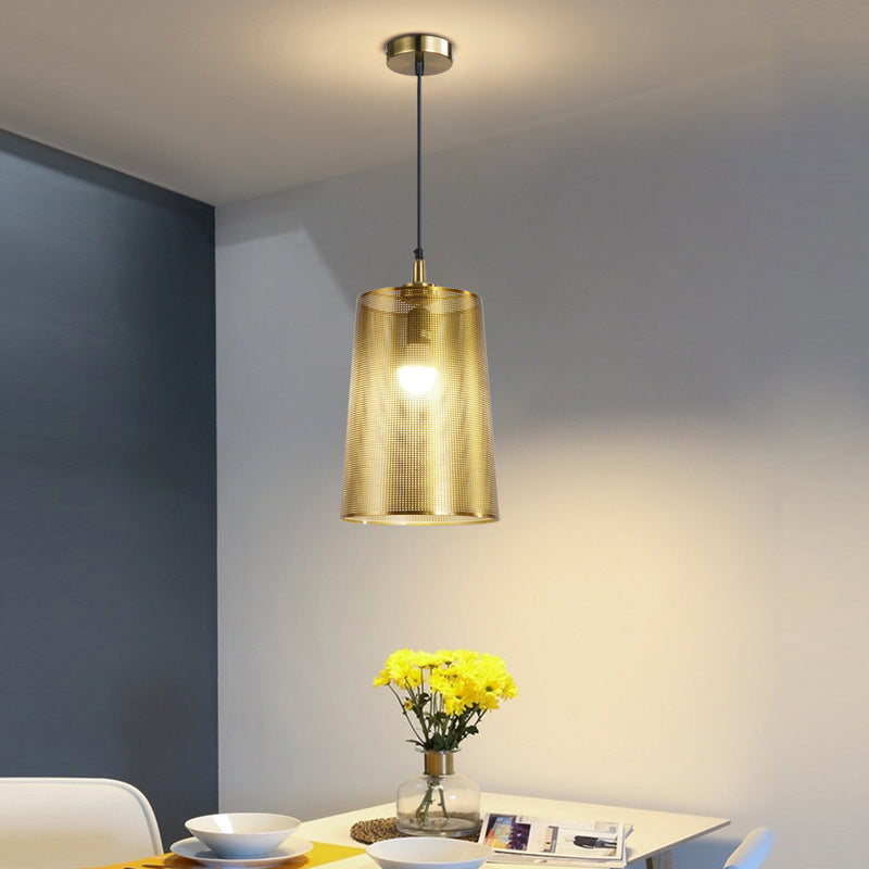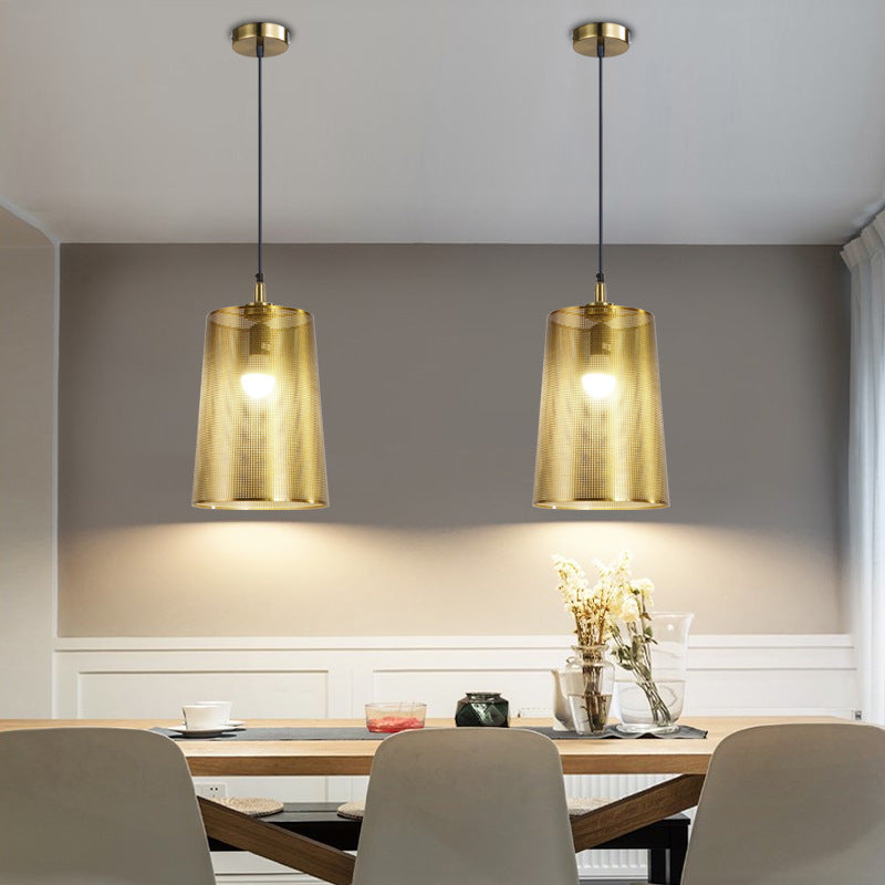 مصباح معلق أسطواني معدني ذهبي بسيط من نورديك، مزود بمصباح واحد