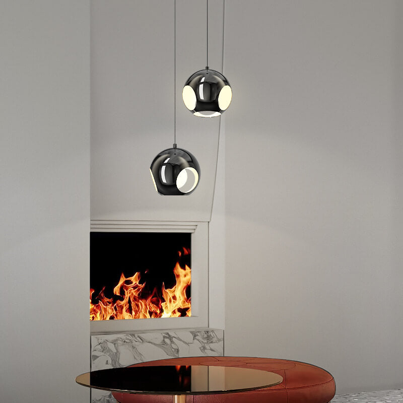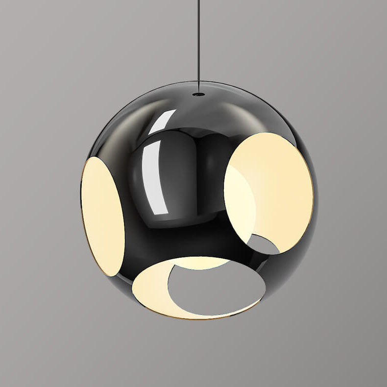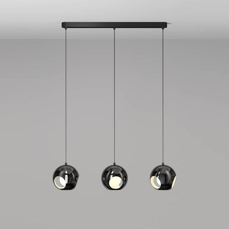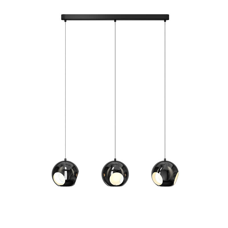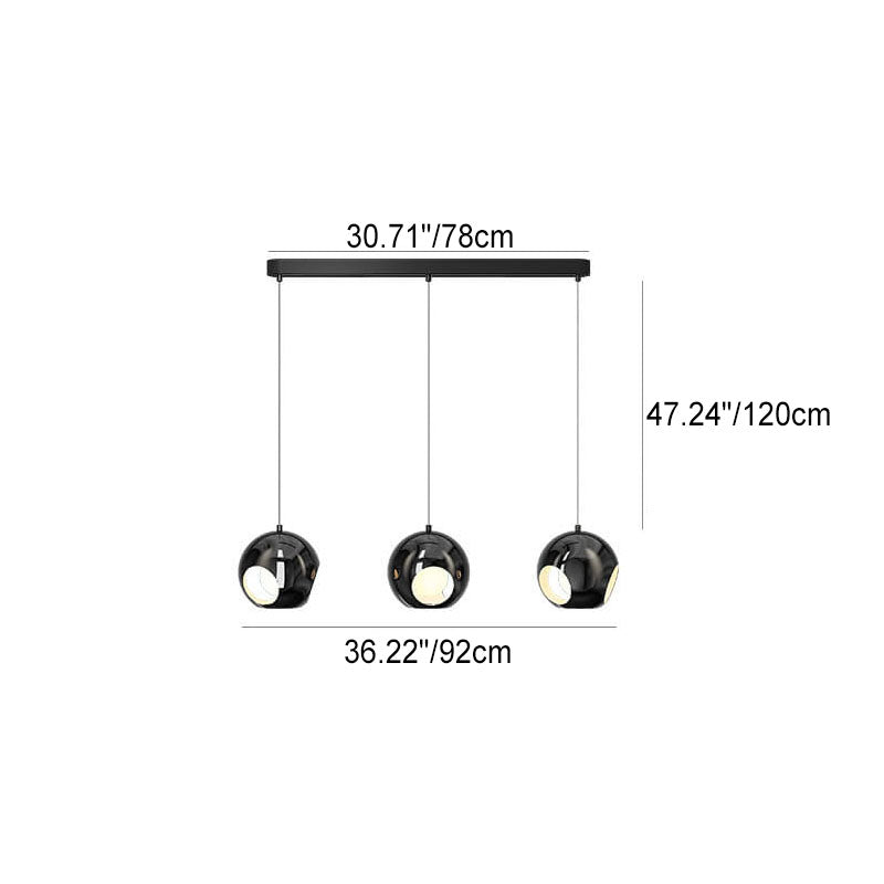 ثريا جزيرة حديدية مجوفة بتصميم بسيط على شكل كرة مستديرة، بإضاءة ثلثية
