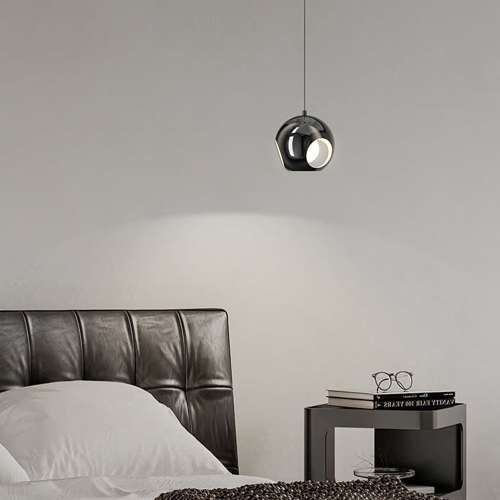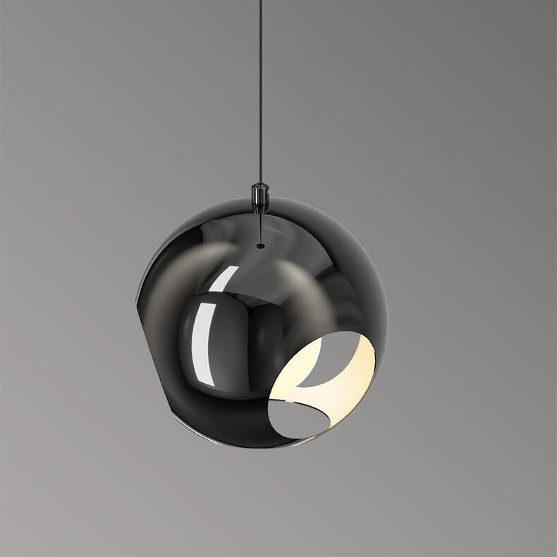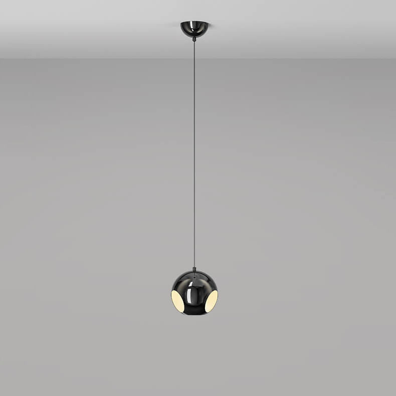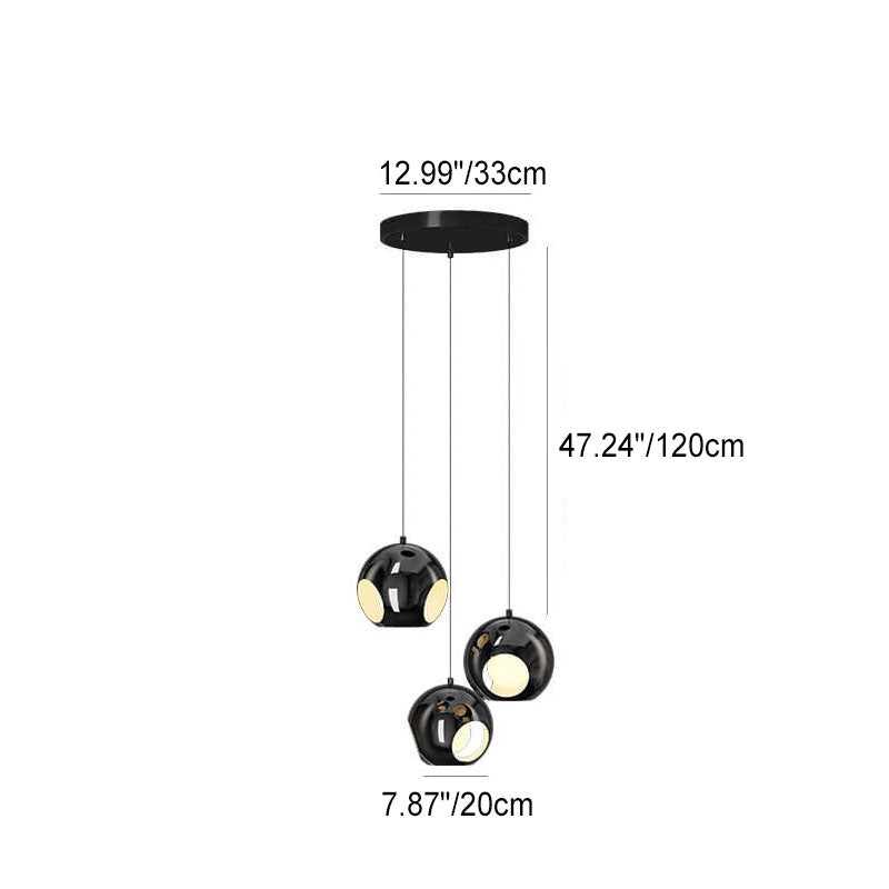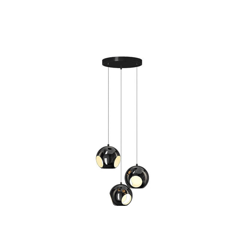 ثريا جزيرة حديدية مجوفة بتصميم بسيط على شكل كرة مستديرة، بإضاءة ثلثية