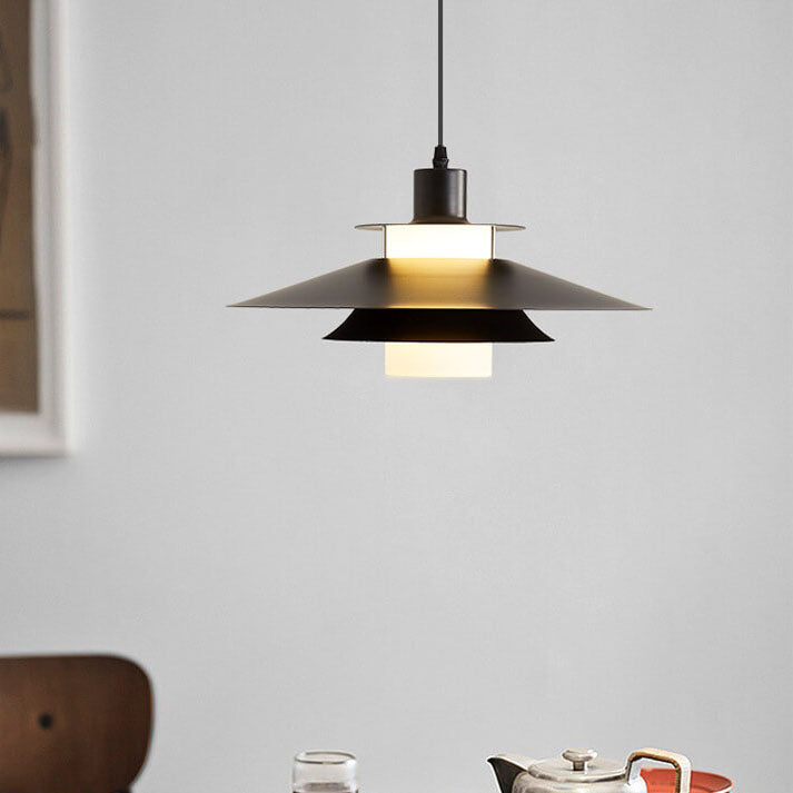 مصباح معلق دائري متعدد الطبقات من الحديد والزجاج بتصميم إسكندنافي بسيط، مزود بمصباح واحد