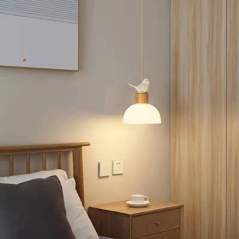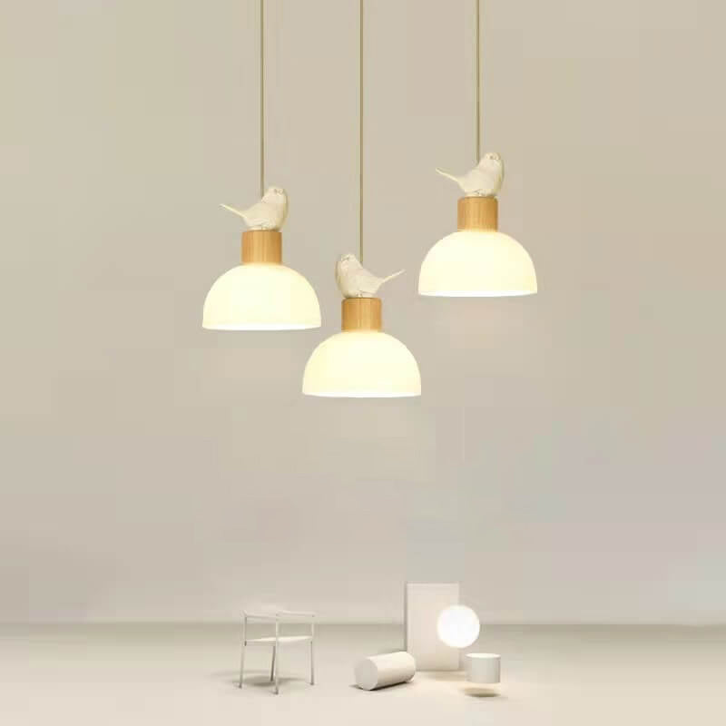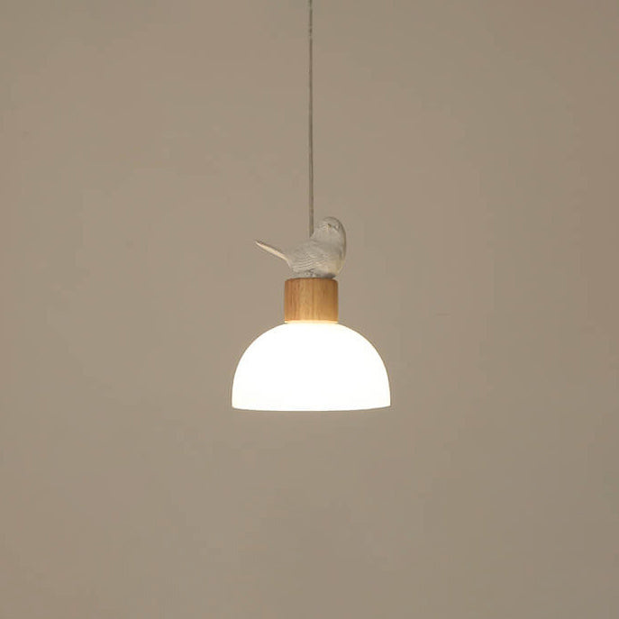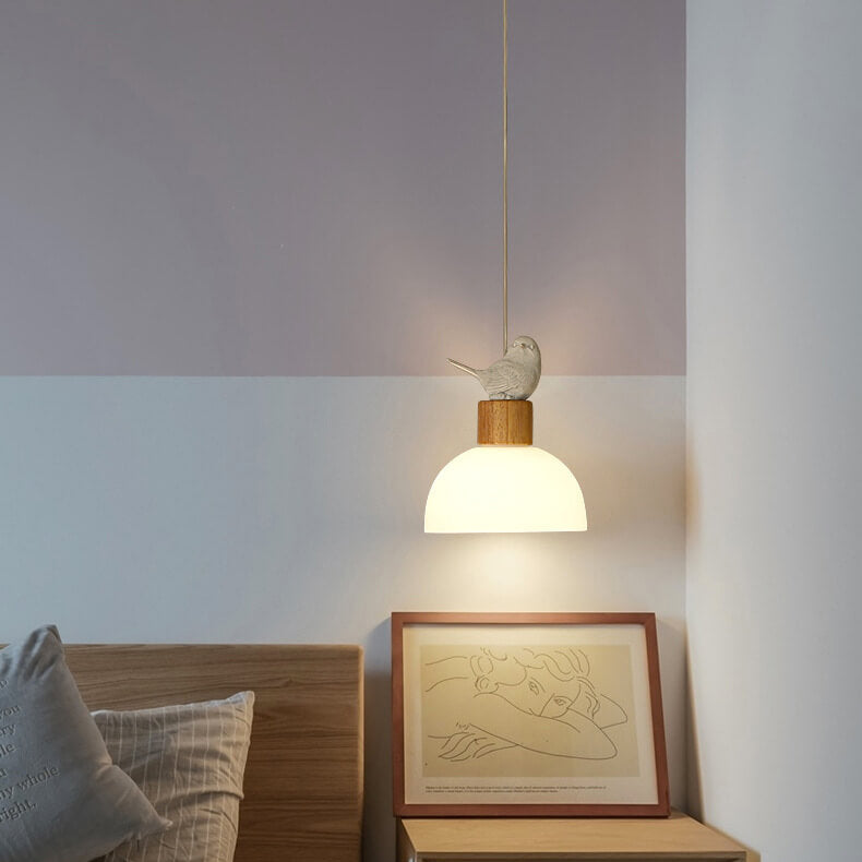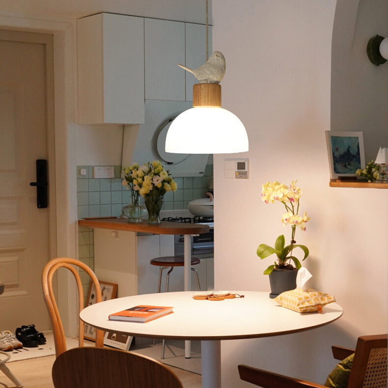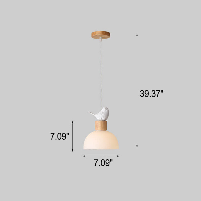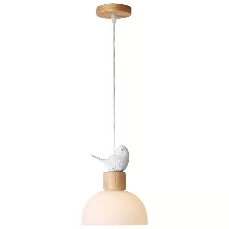 مصباح معلق على شكل طائر زجاجي أبيض بسيط من الطراز الاسكندنافي مزود بمصباح واحد