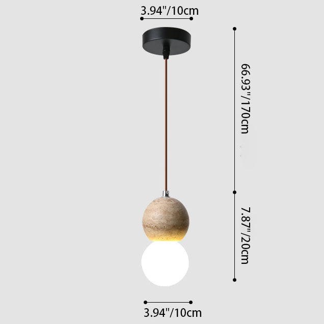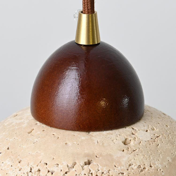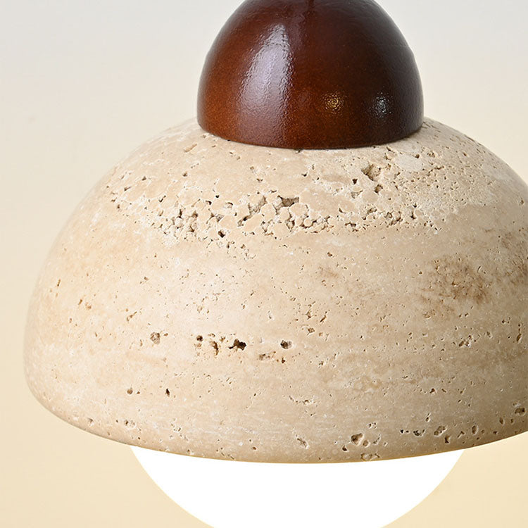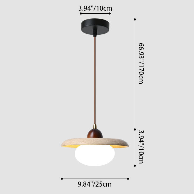 مصباح معلق بسيط على شكل لوحة نصف دائرية من خشب الترافرتين الأصفر والزجاج الصلب، مصباح واحد