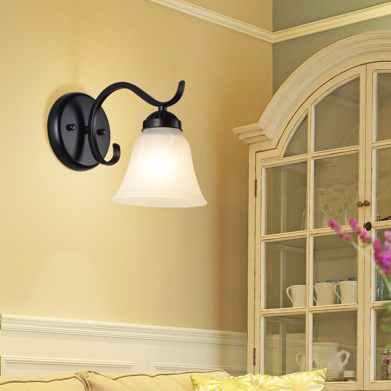 مصباح حائطي زجاجي حديدي بتصميم ريفي عتيق، بإضاءة واحدة