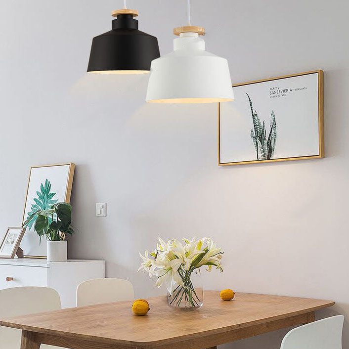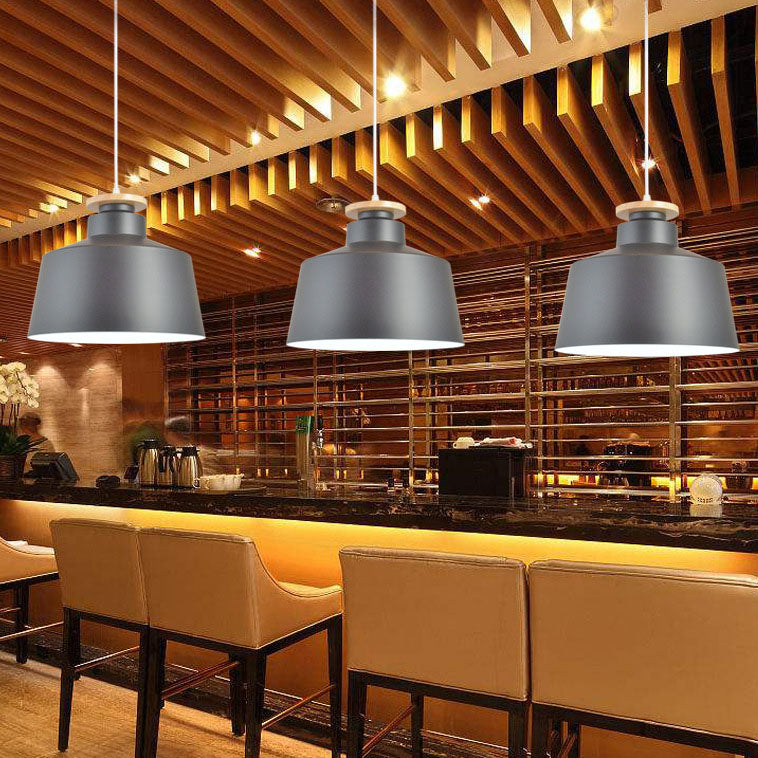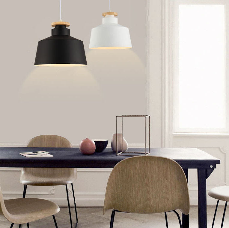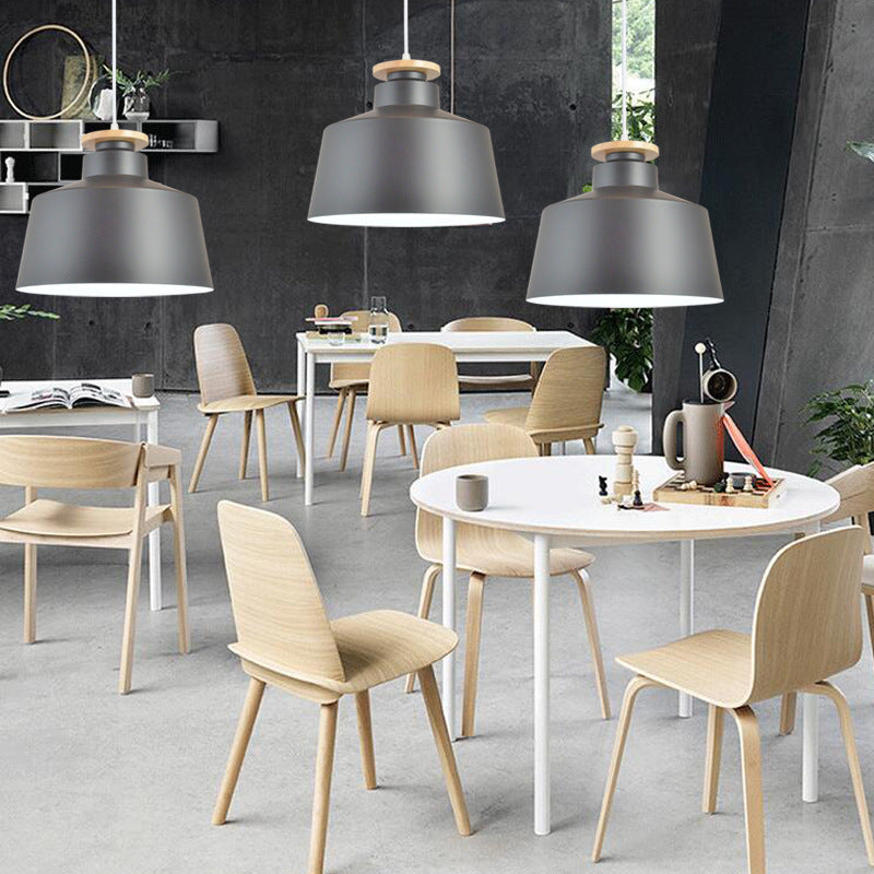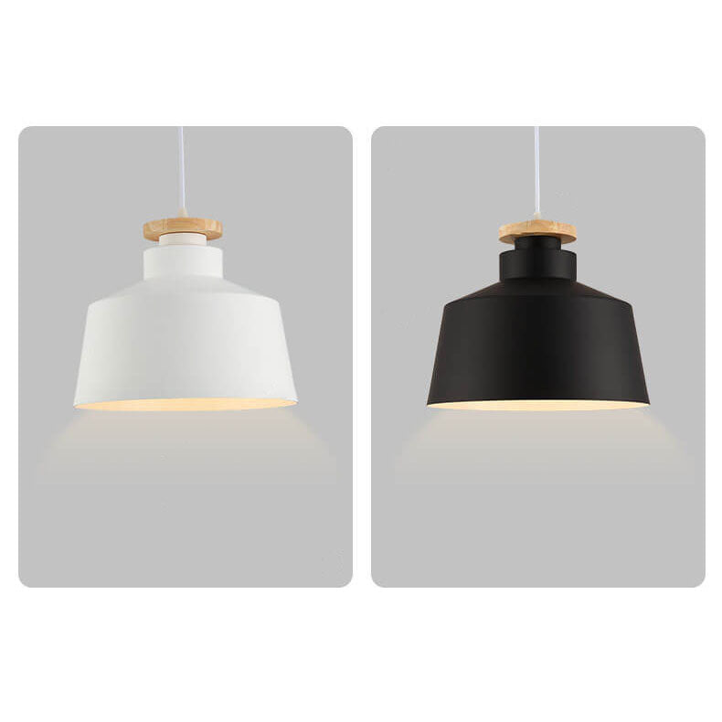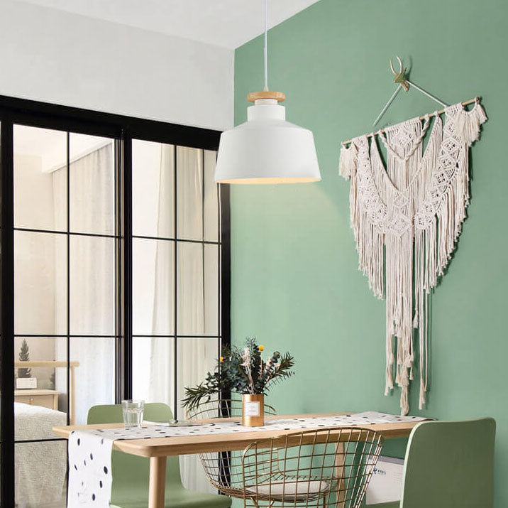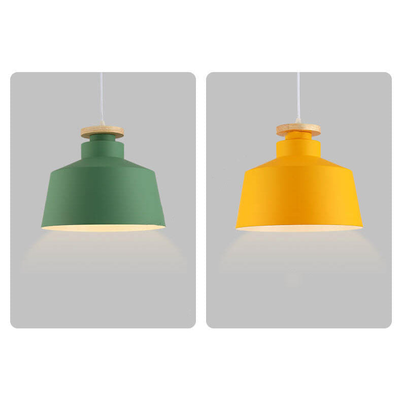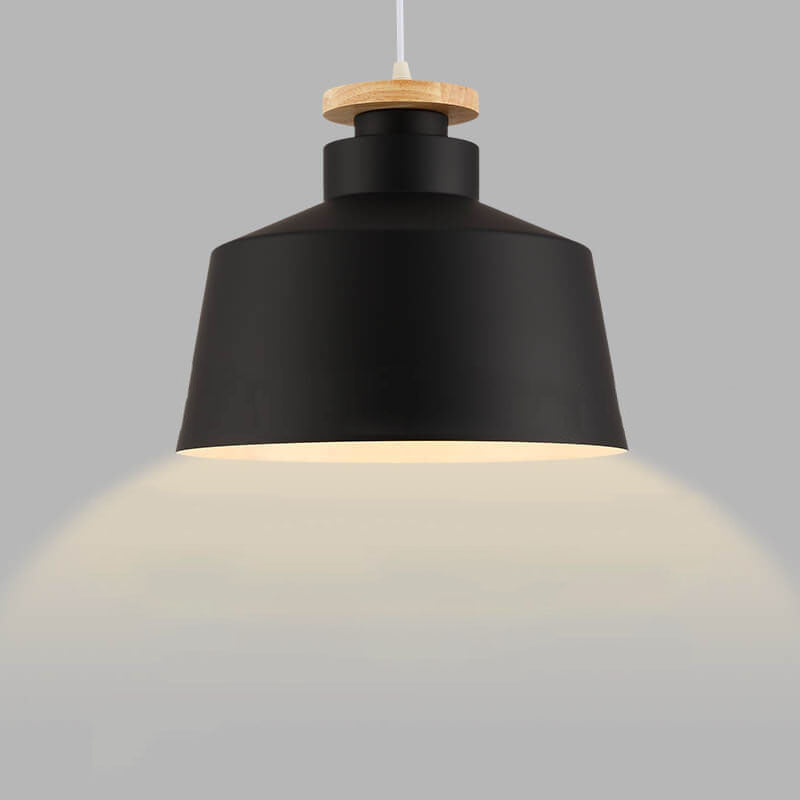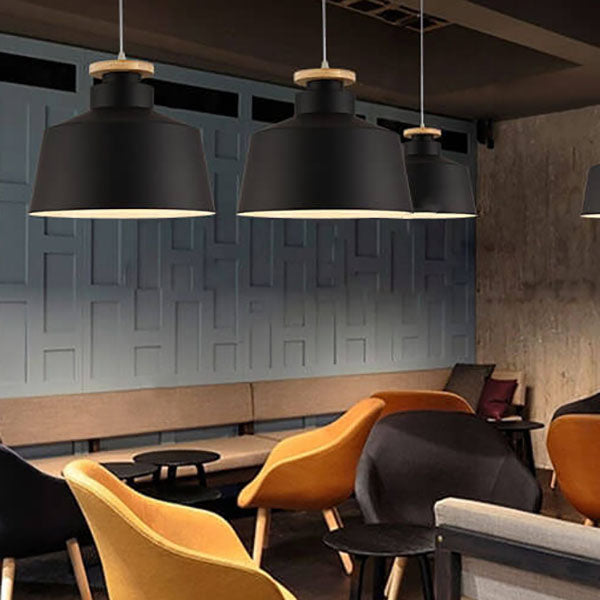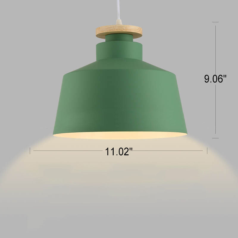 مصباح معلق بسيط من الألومنيوم على شكل قبة مخروطية خشبية من نورديك، مزود بمصباح واحد