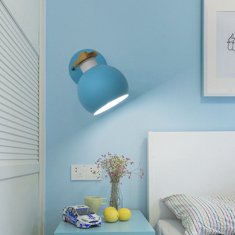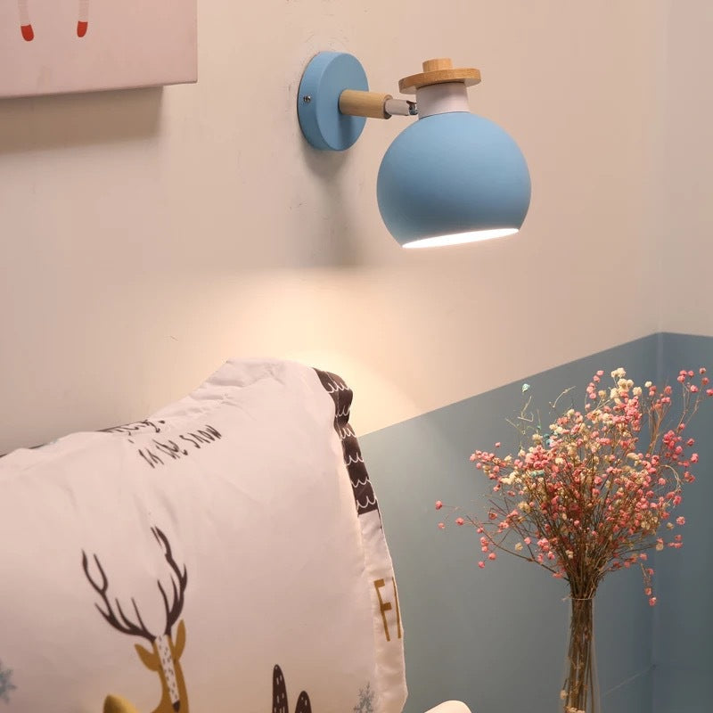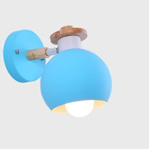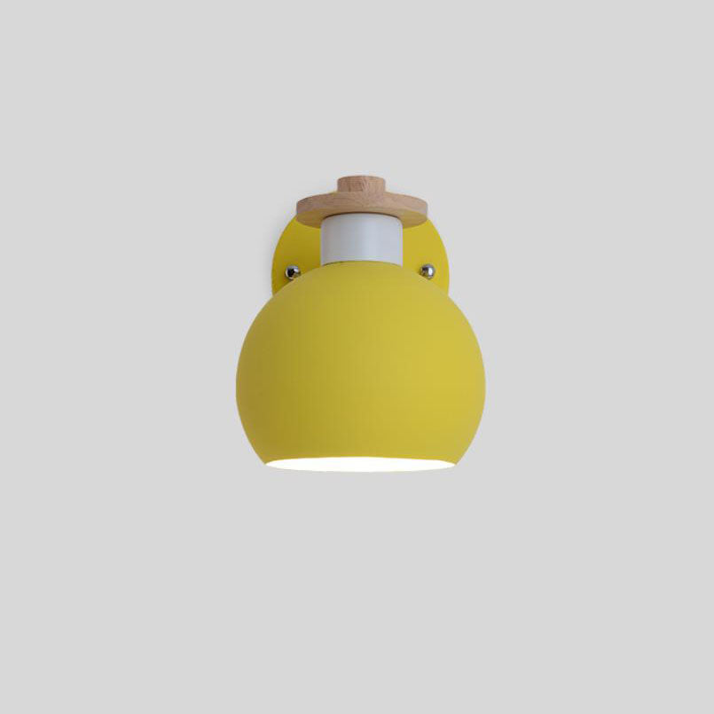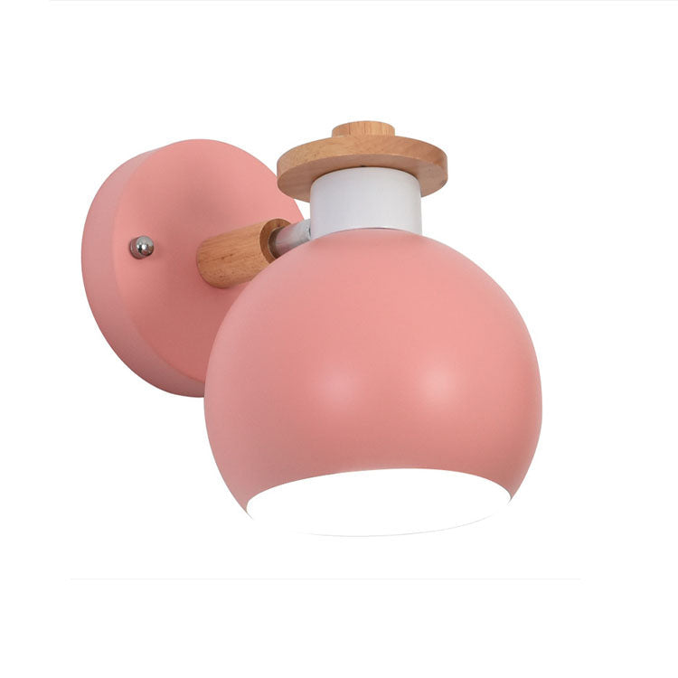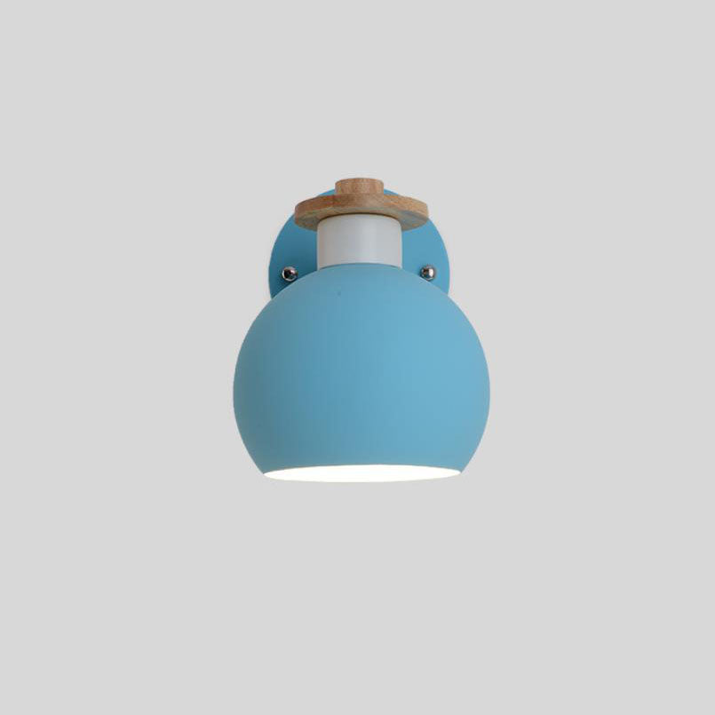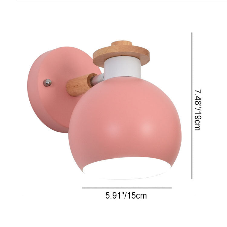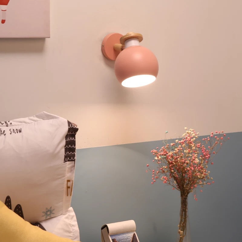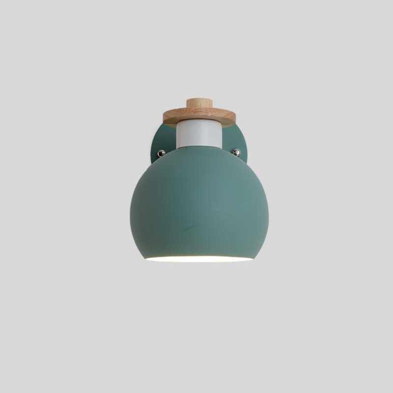 مصباح حائط بسيط على شكل قبة خشبية مع ضوء واحد