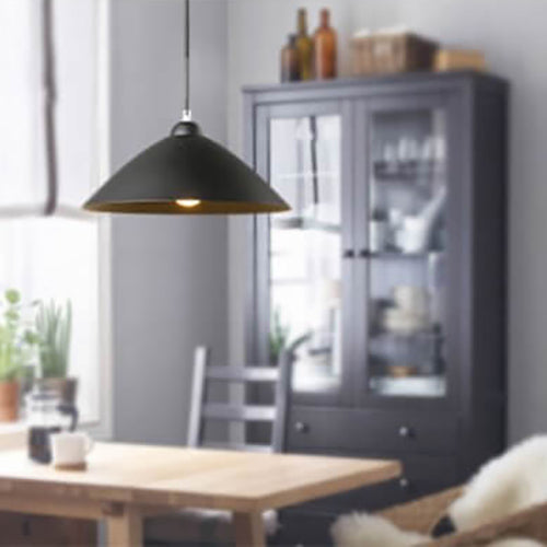 مصباح معلق بسيط من الحديد على شكل قبة، مزود بمصباح واحد، بتصميم نورديك