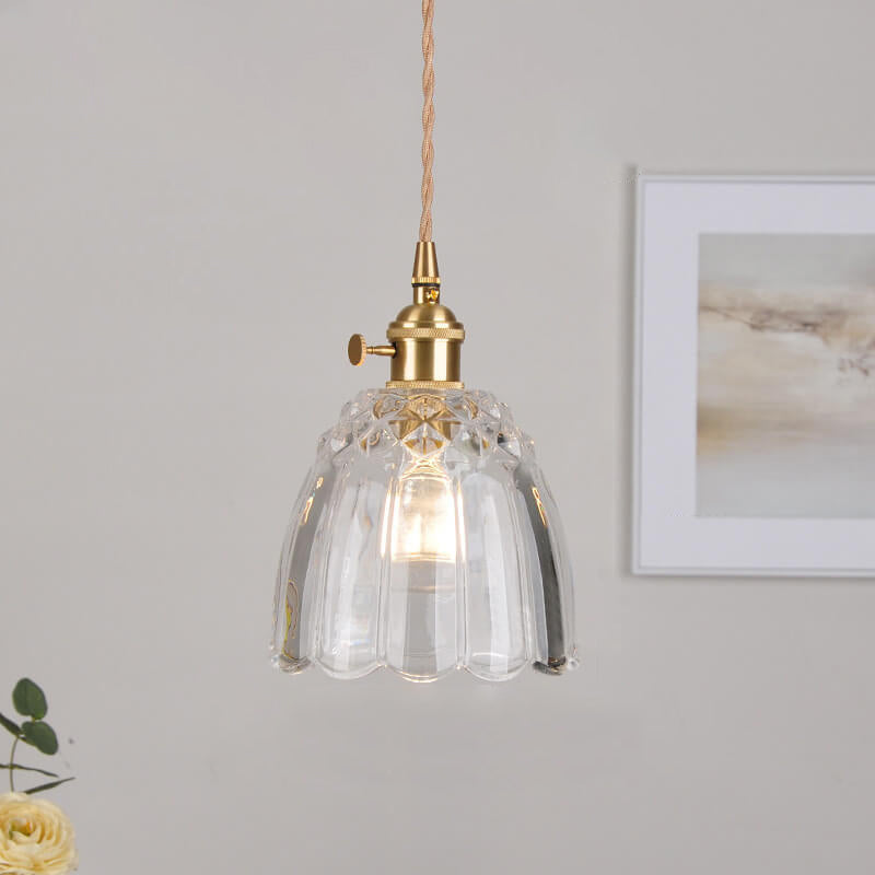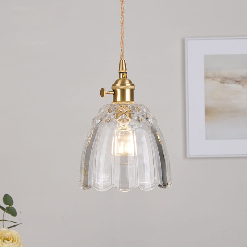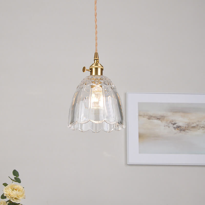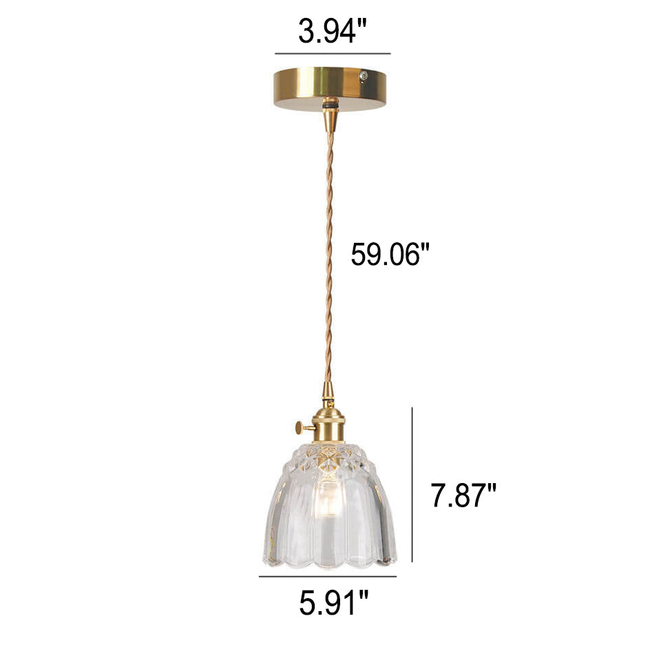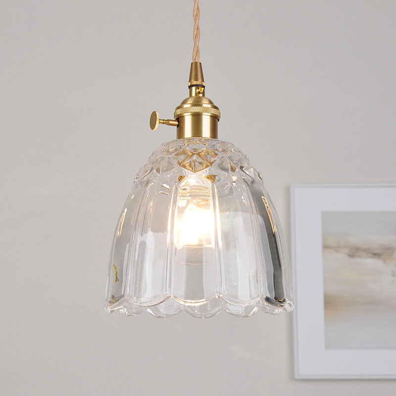 مصباح معلق بسيط من الزجاج الشفاف بتصميم نورديك، مصباح نحاسي واحد
