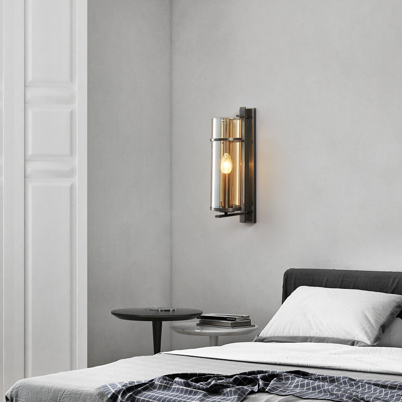 مصباح حائطي نورديك عتيق مصنوع بالكامل من النحاس والزجاج ومصباح واحد
