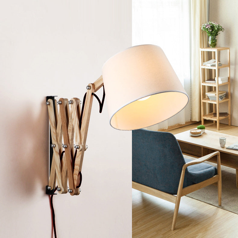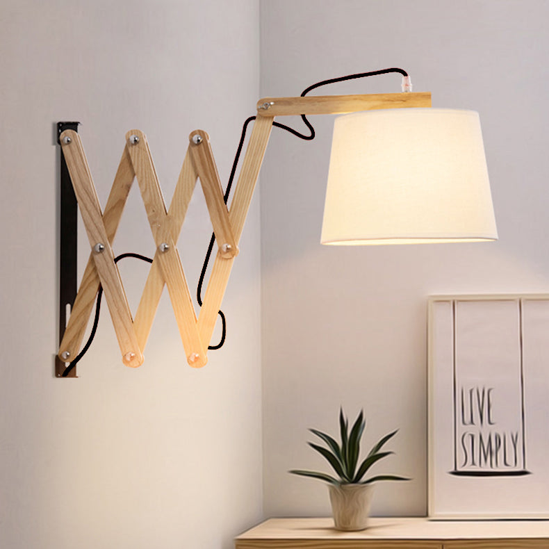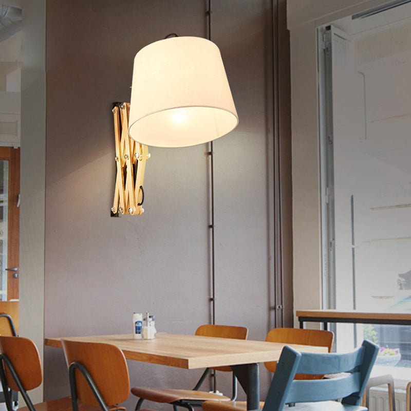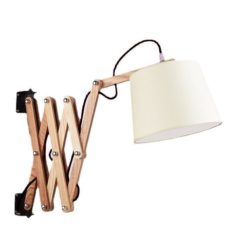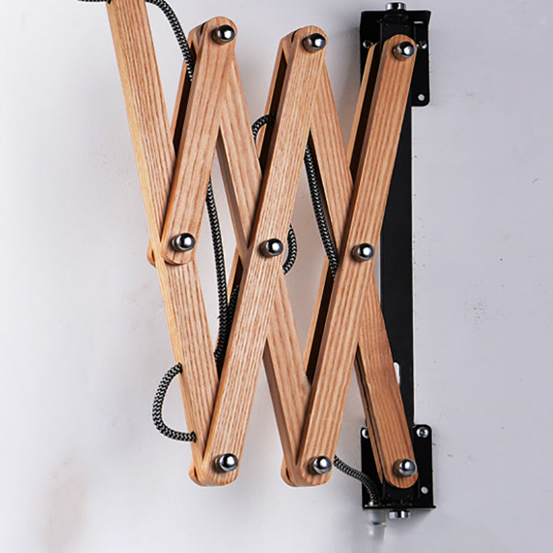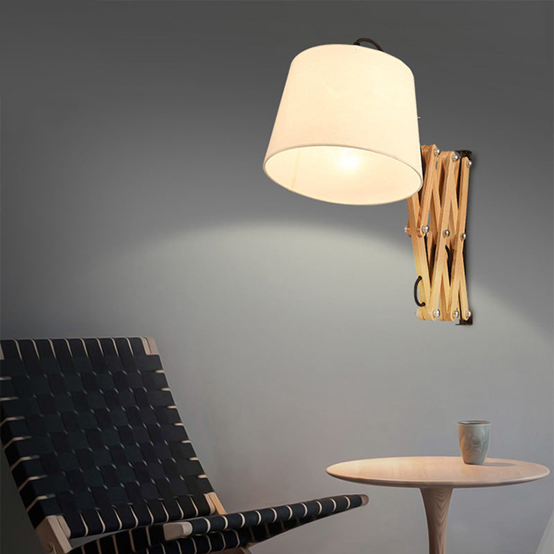 مصباح حائط مخروطي الشكل من الخشب الصلب بتصميم عتيق قابل للسحب والدوران، مزود بإضاءة واحدة