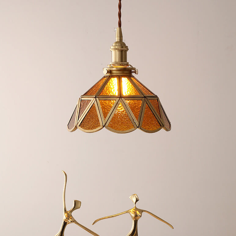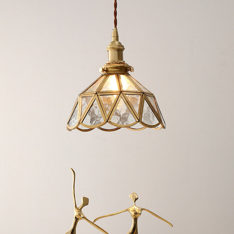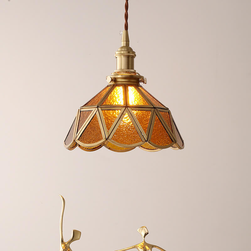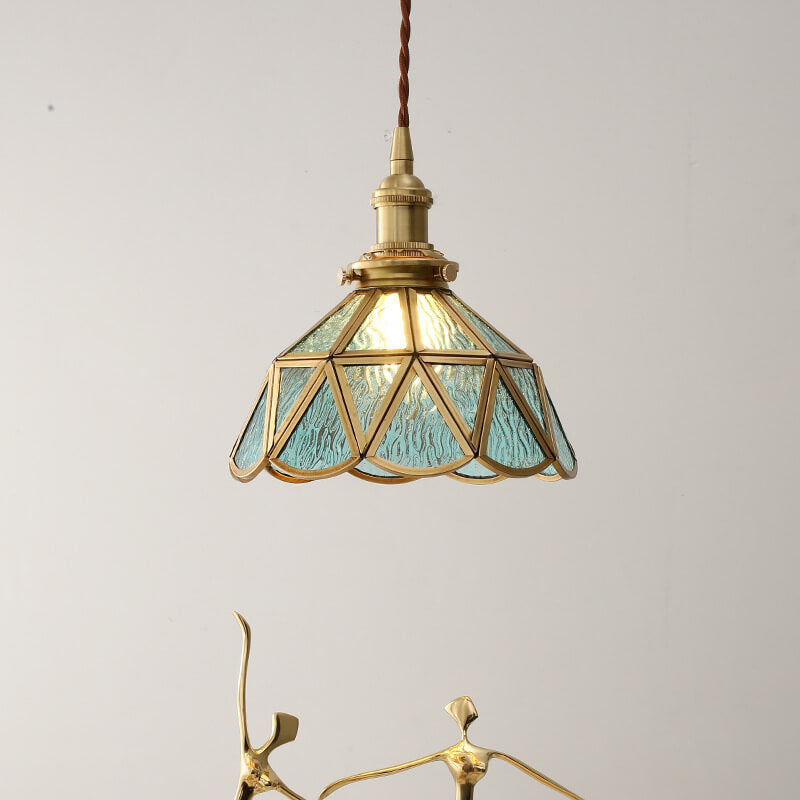 مصباح معلق من النحاس بتصميم مخروطي هندسي من الزجاج بنمط مائي عتيق من نورديك، مزود بمصباح واحد