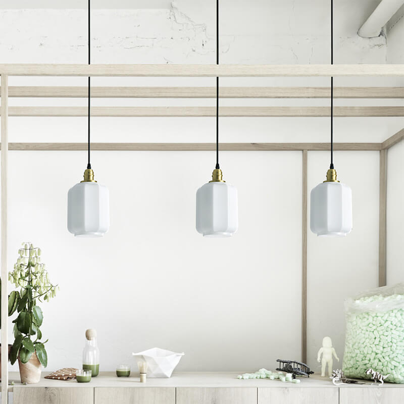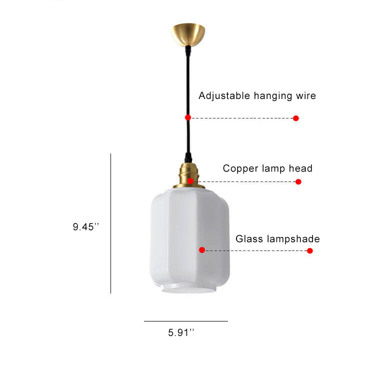 مصباح معلق من الزجاج الأبيض العتيق الشمالي مزود بمصباح واحد