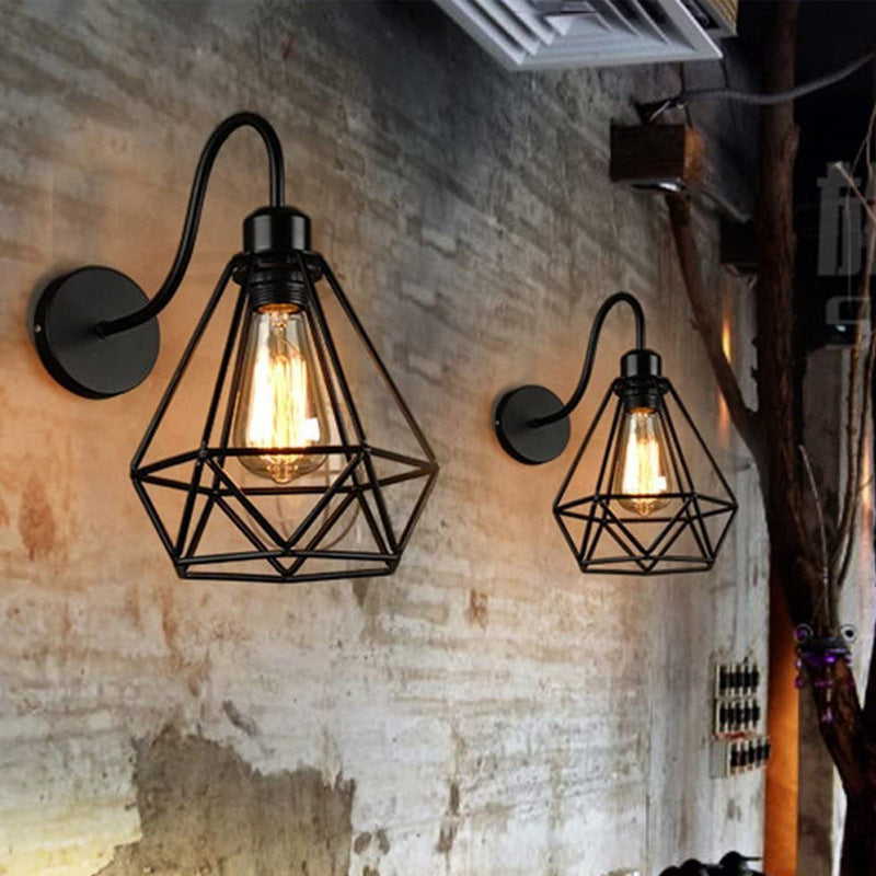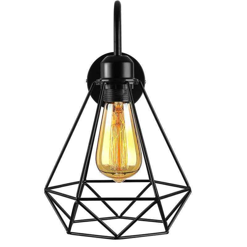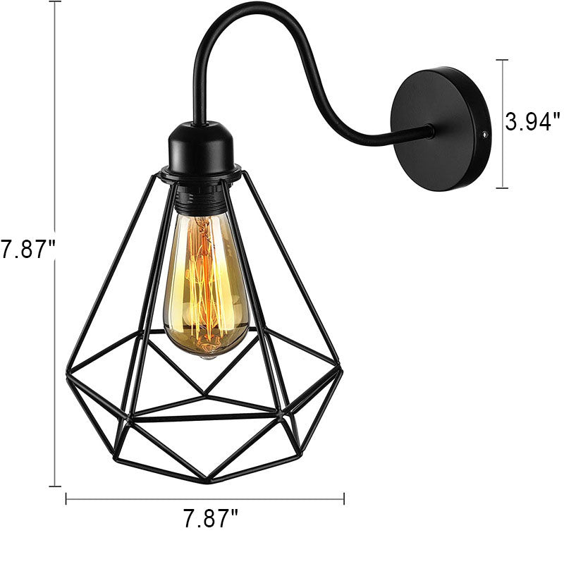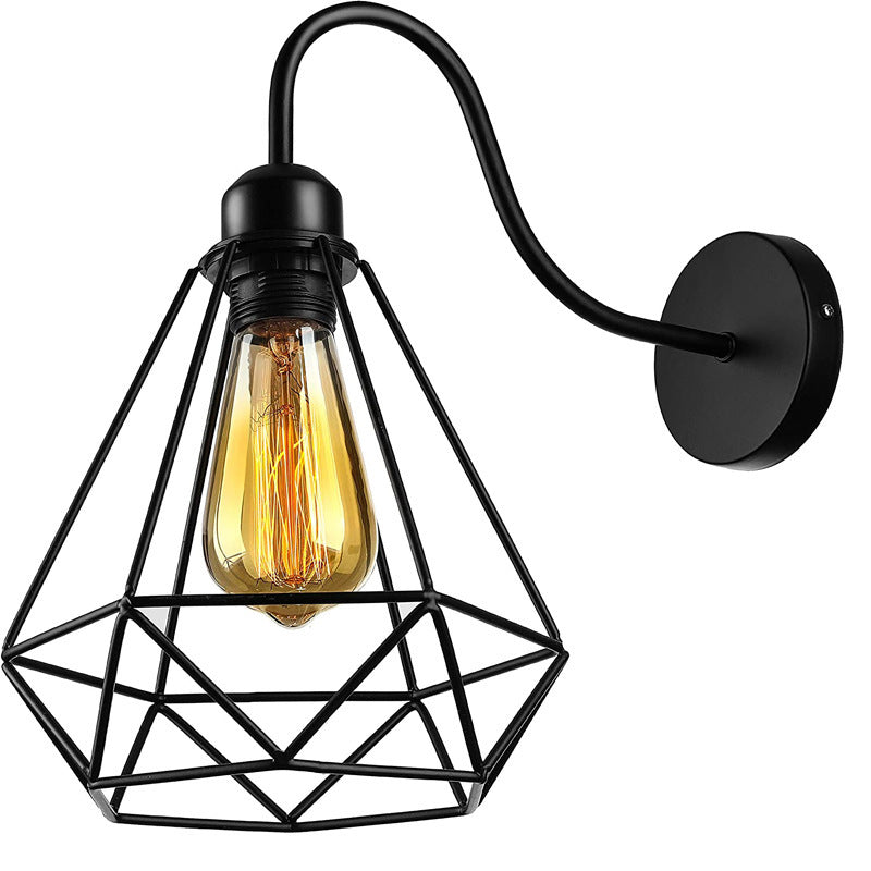 مصباح حائطي بتصميم قفص حديدي صناعي عتيق مزود بإضاءة واحدة