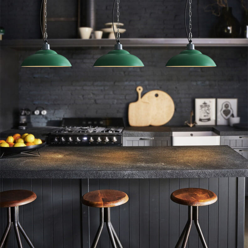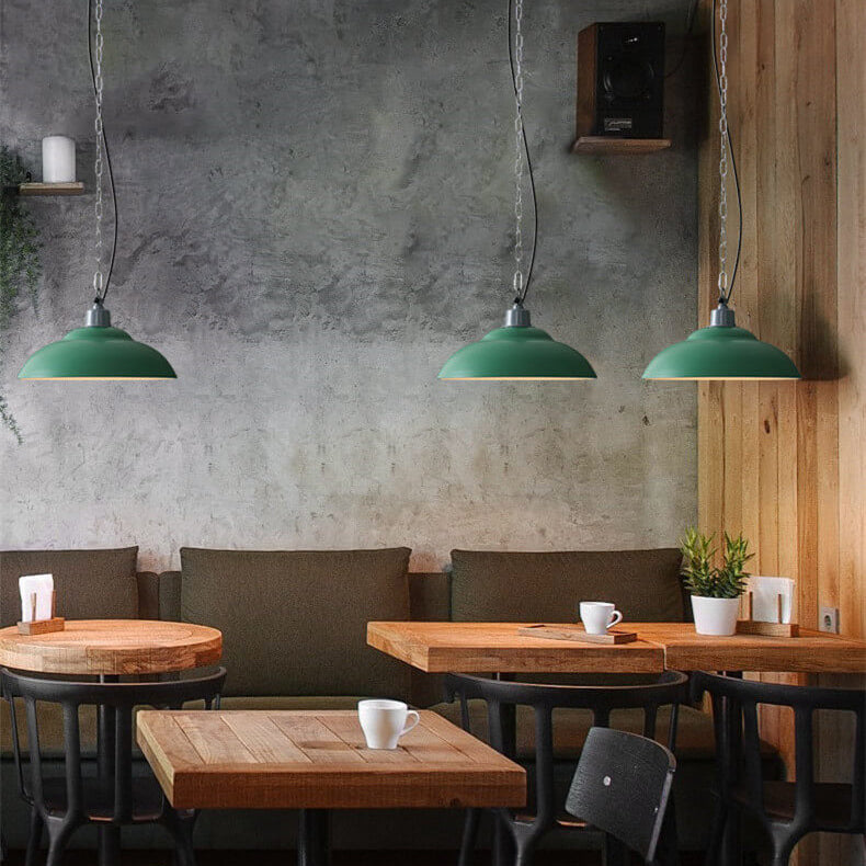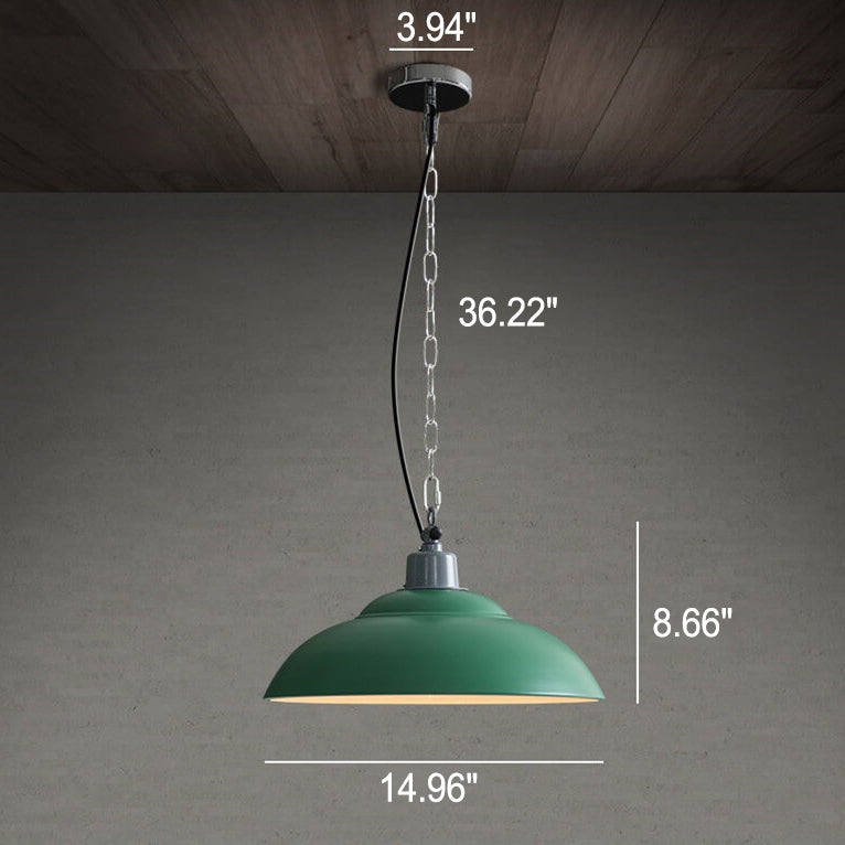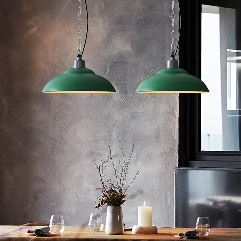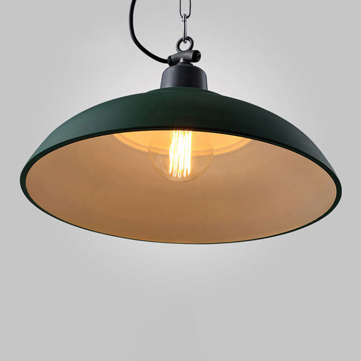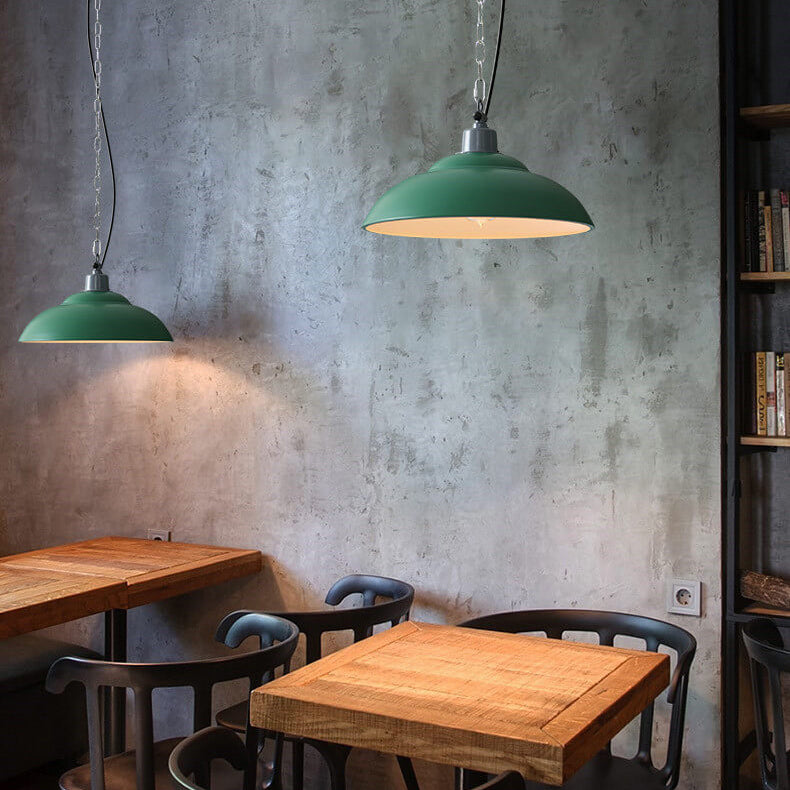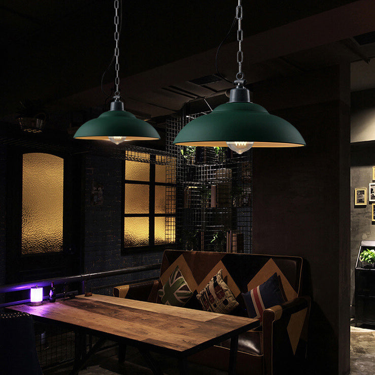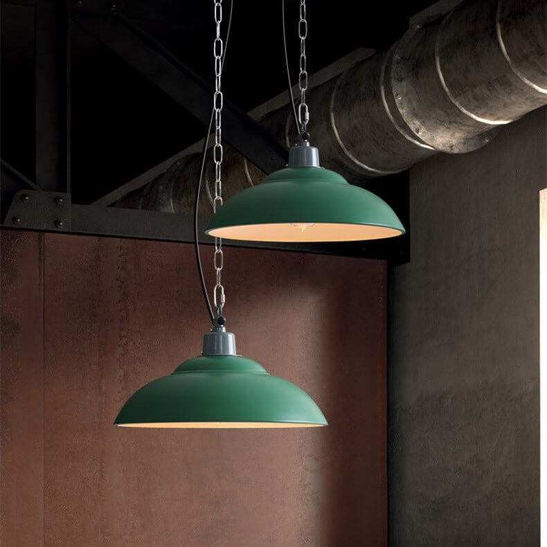 مصباح معلق حديدي صناعي عتيق باللون الأخضر العسكري مع قبة ومصباح واحد