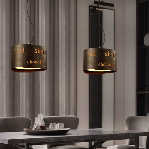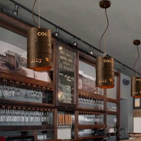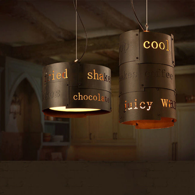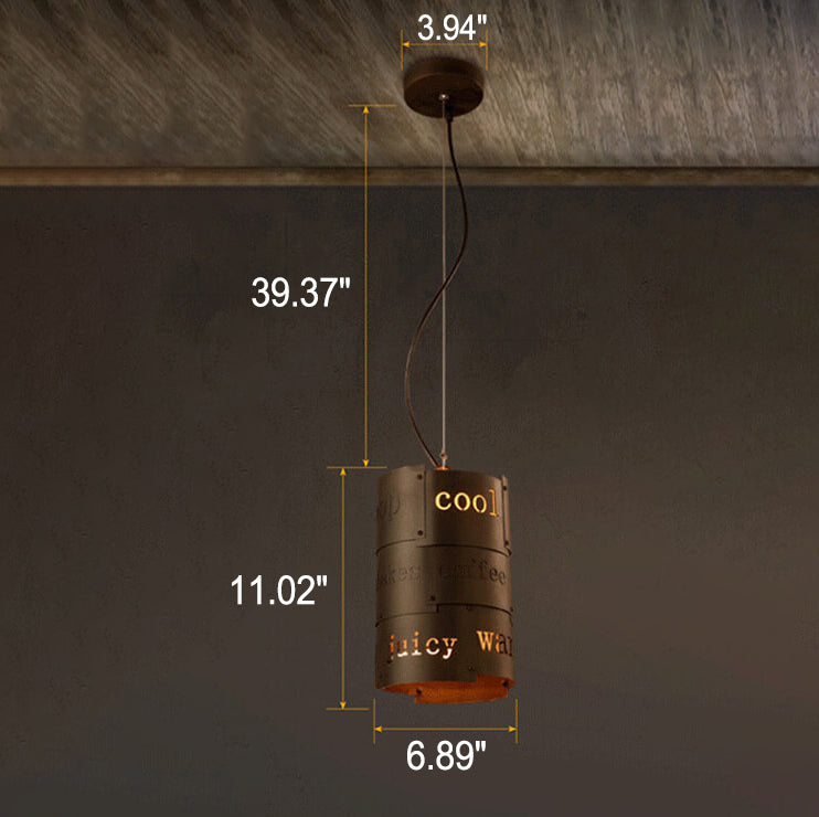 مصباح معلق على شكل حرف أسطواني من الحديد بتصميم ريترو لوفت، مزود بمصباح واحد