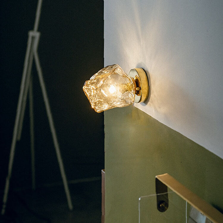 مصباح حائط زجاجي أحادي الإضاءة بتصميم إسكندنافي حديث وبسيط على شكل حجر