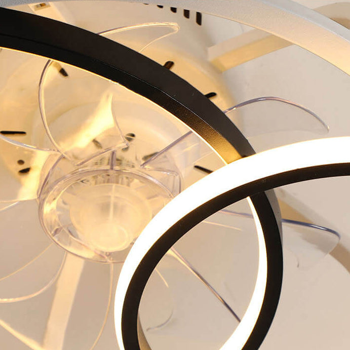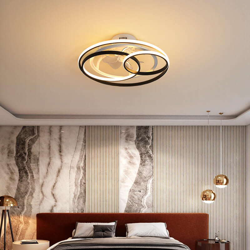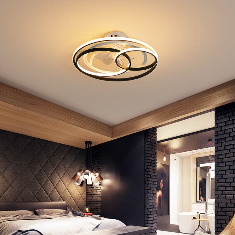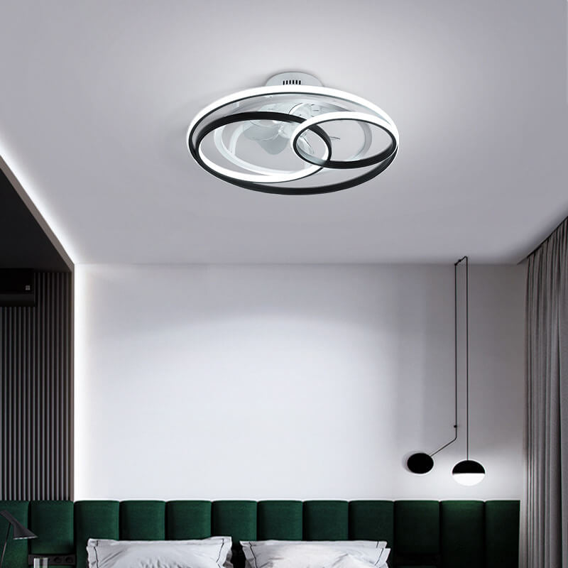 مروحة سقف LED بتصميم بسيط ومبتكر مع تداخل حلقتين
