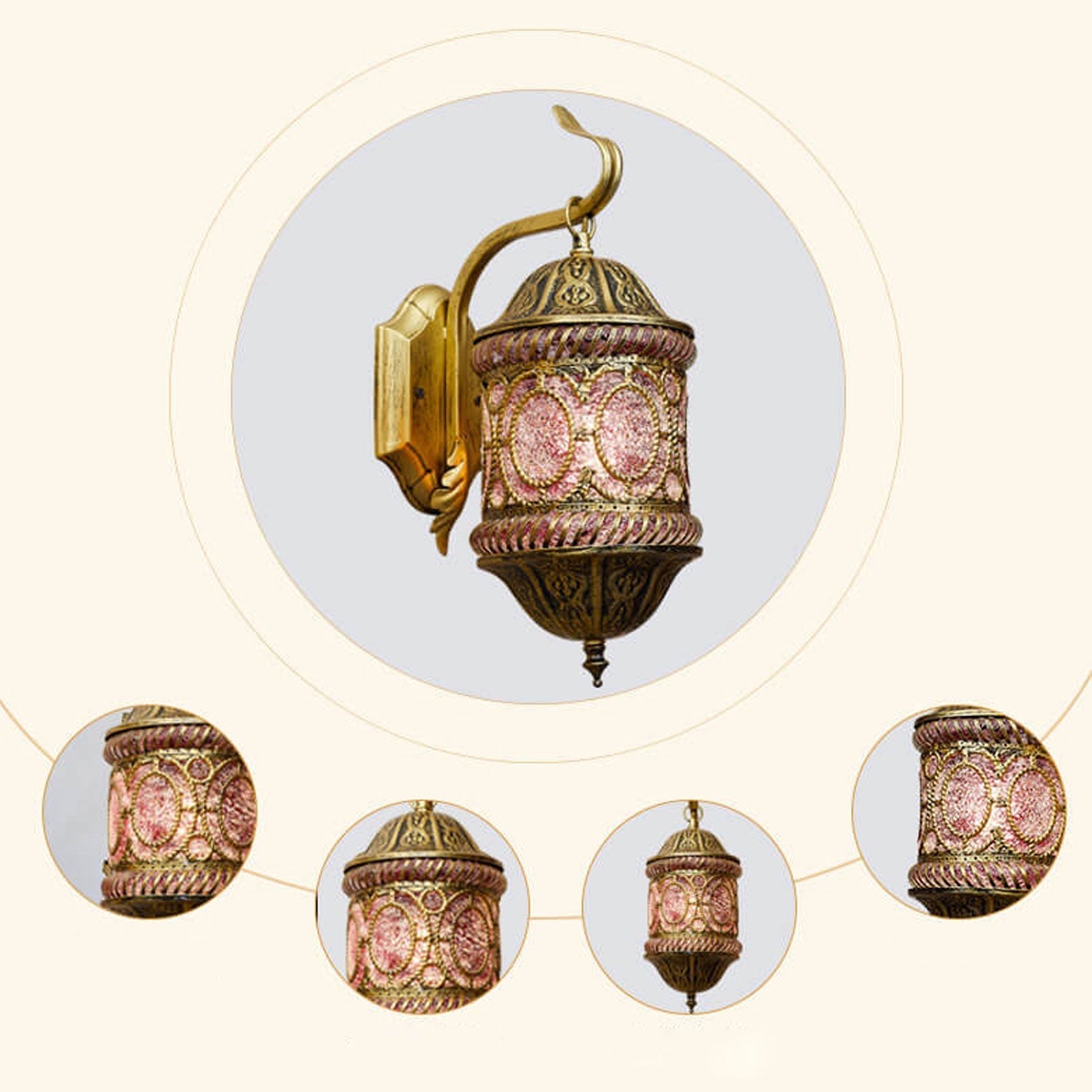 مصباح حائط وردي من الحديد المجوف على طراز جنوب شرق آسيا، مزود بإضاءة واحدة