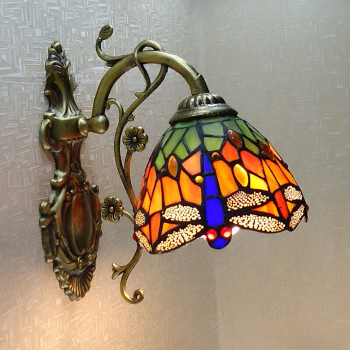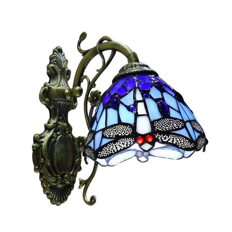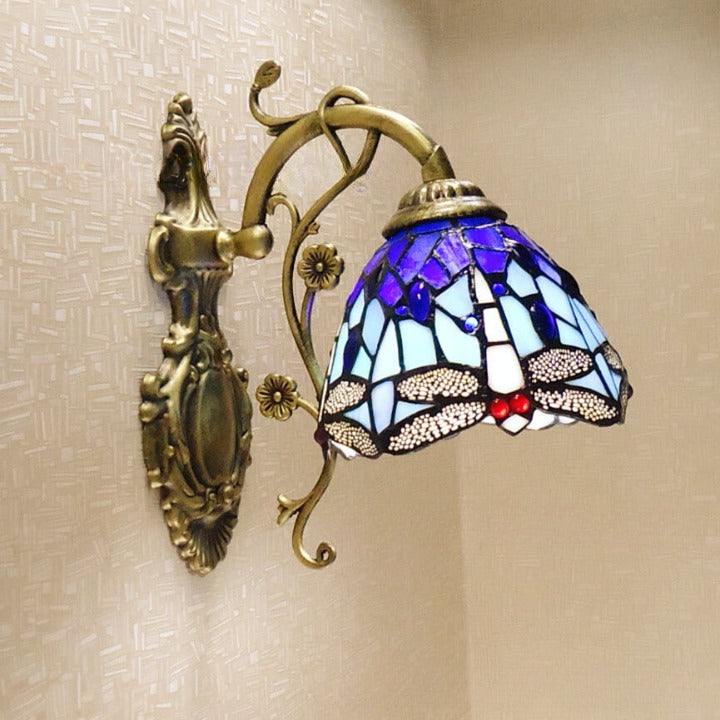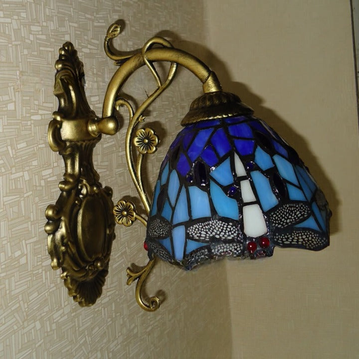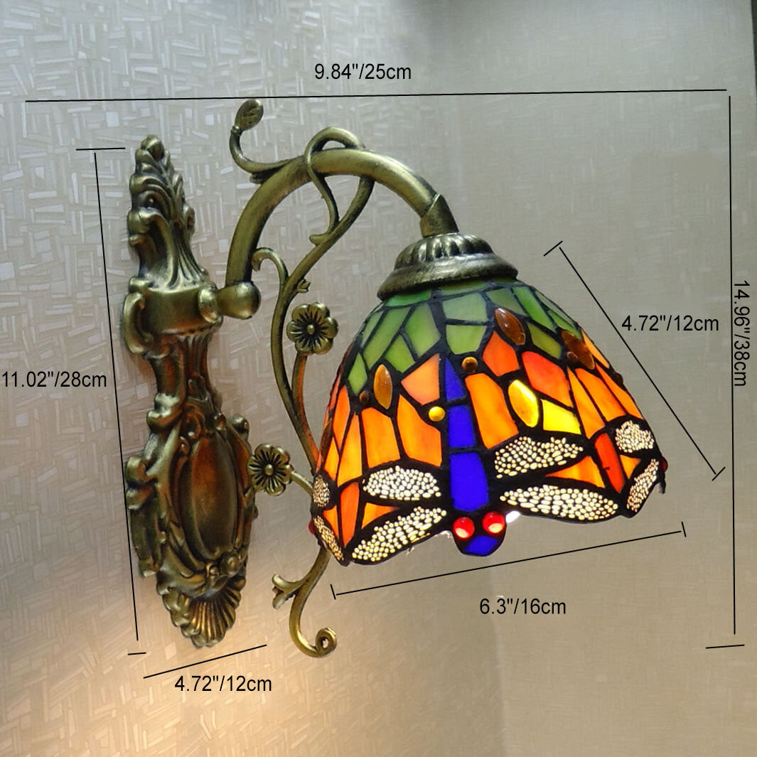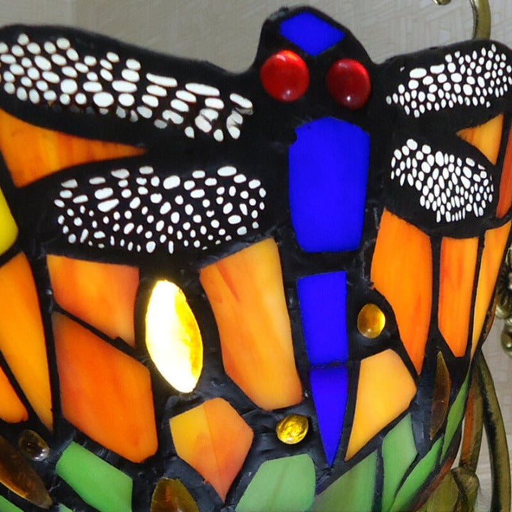مصباح حائط تيفاني المصنوع يدويًا من الزجاج الملون على شكل يعسوب، مزود بضوء واحد