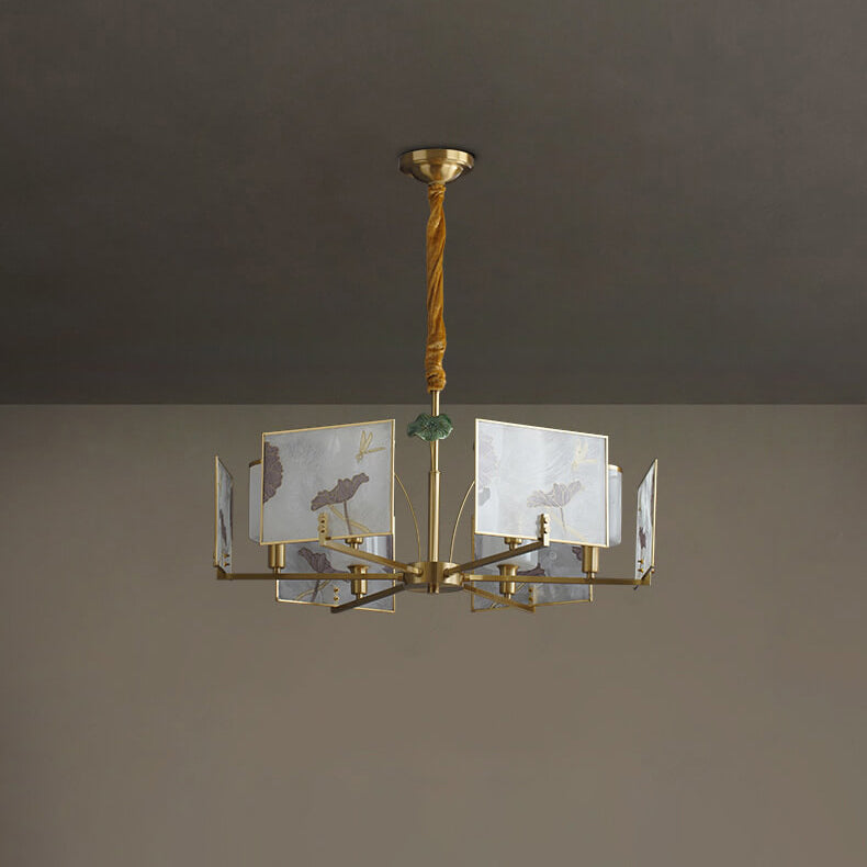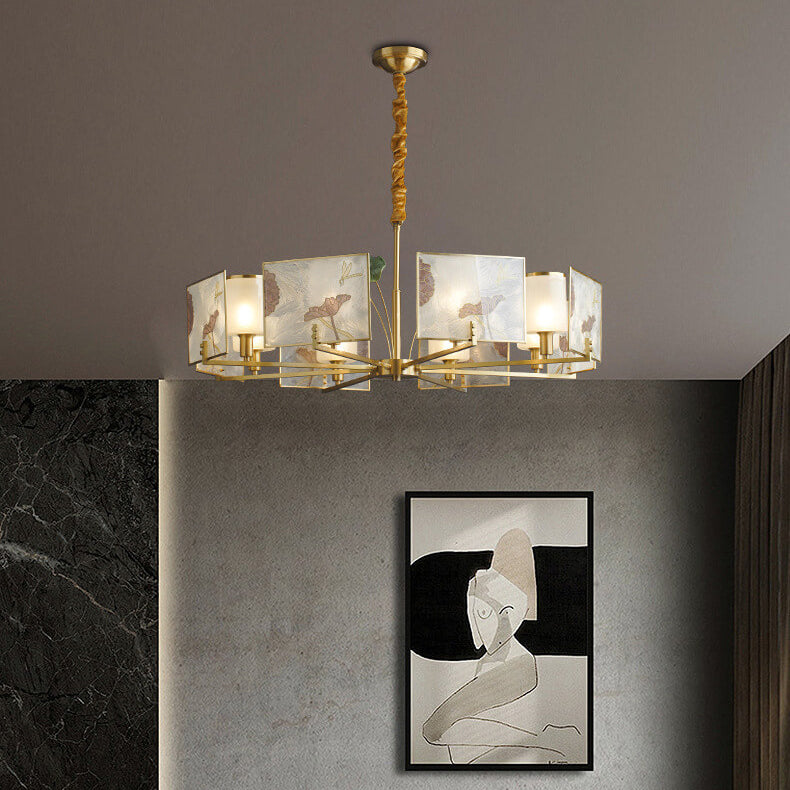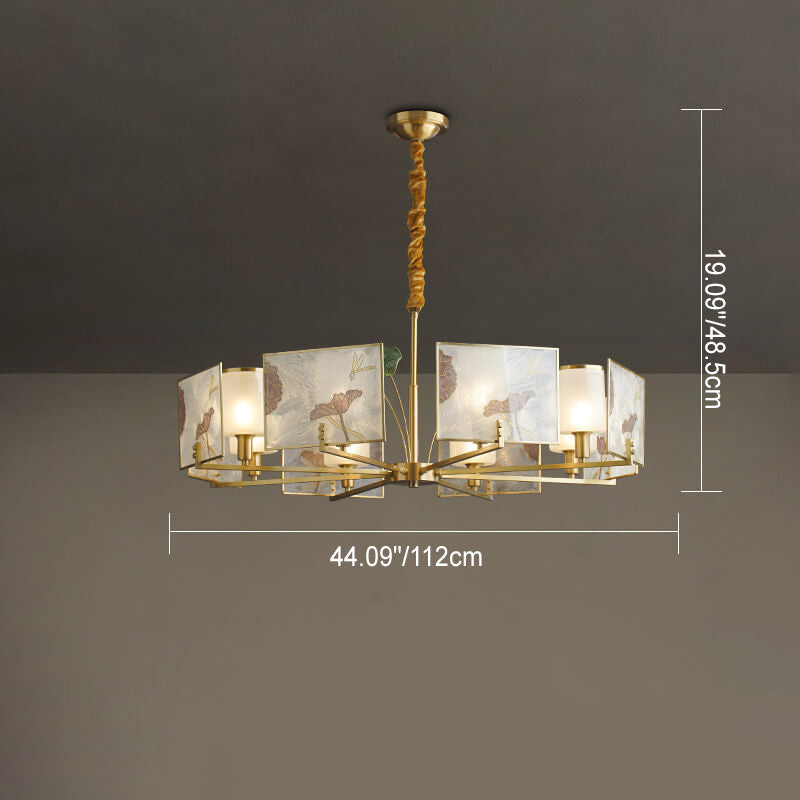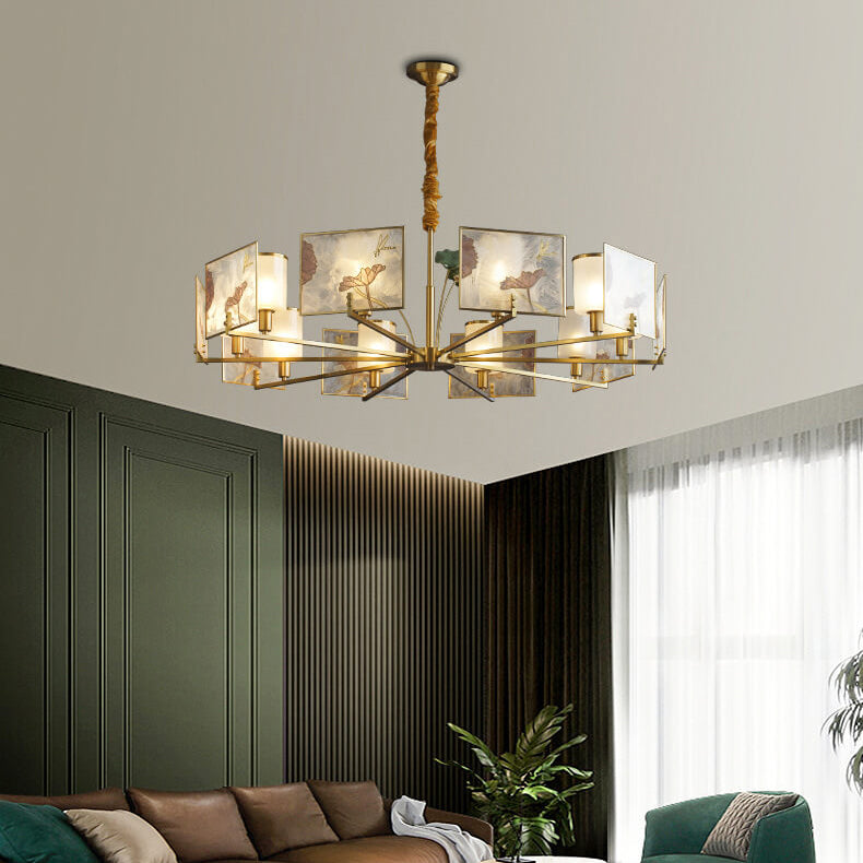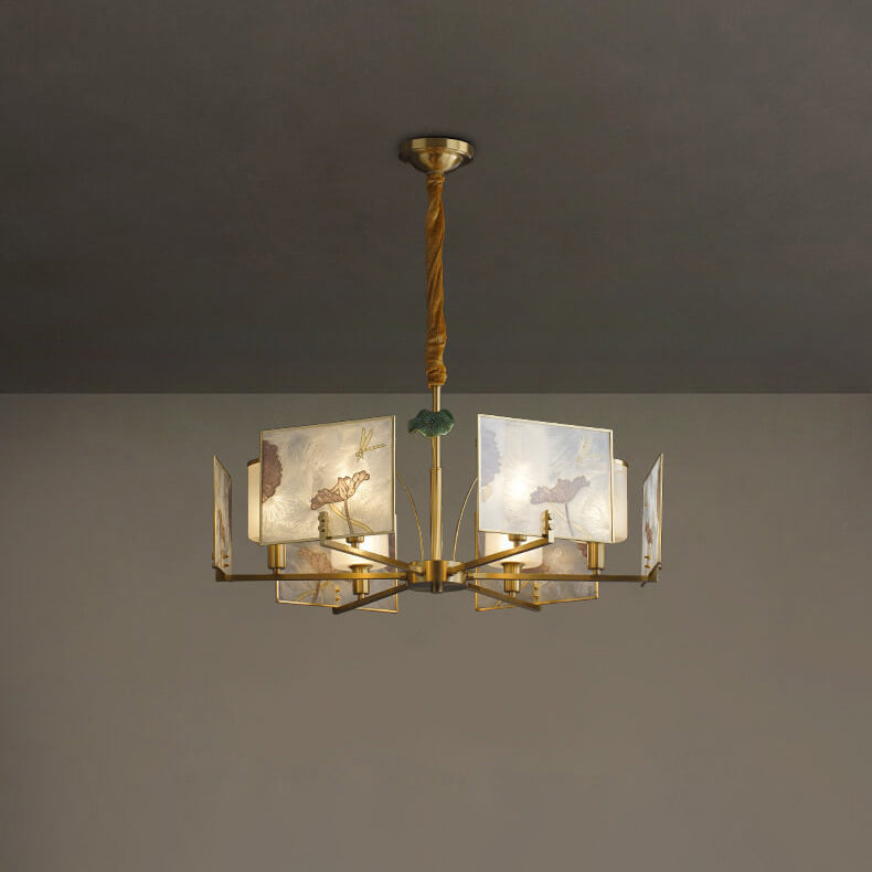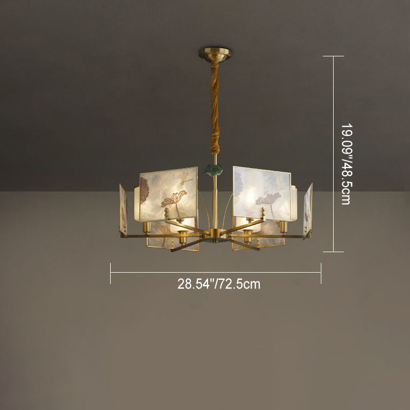 ثريا صينية تقليدية مربعة الشكل مصنوعة بالكامل من النحاس والسيراميك، 6/8/10 مصابيح لغرفة المعيشة