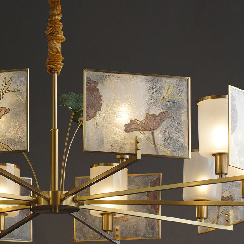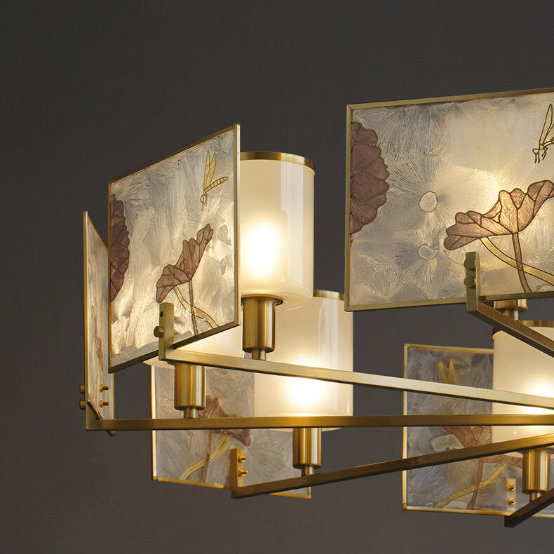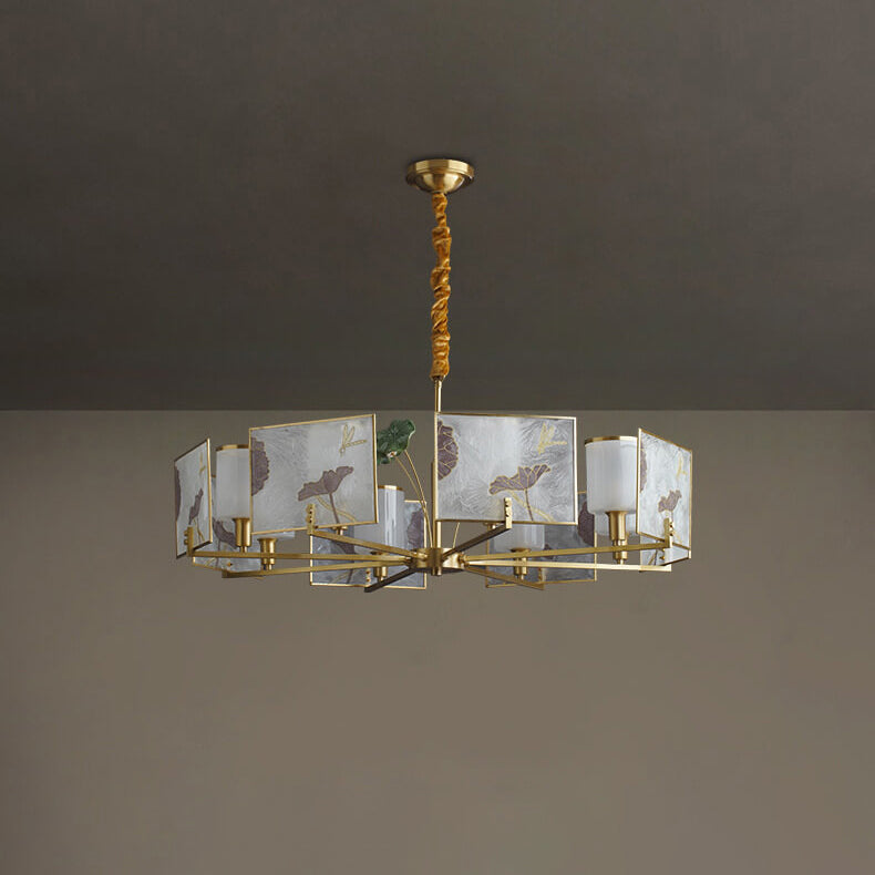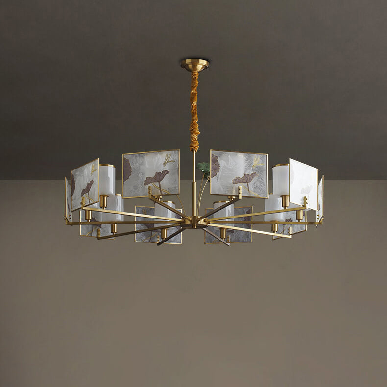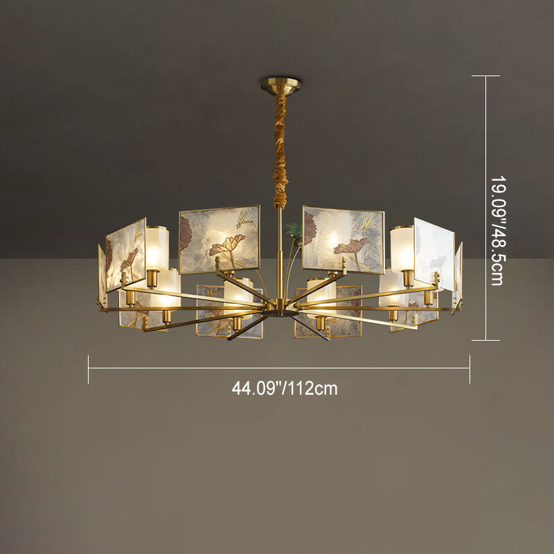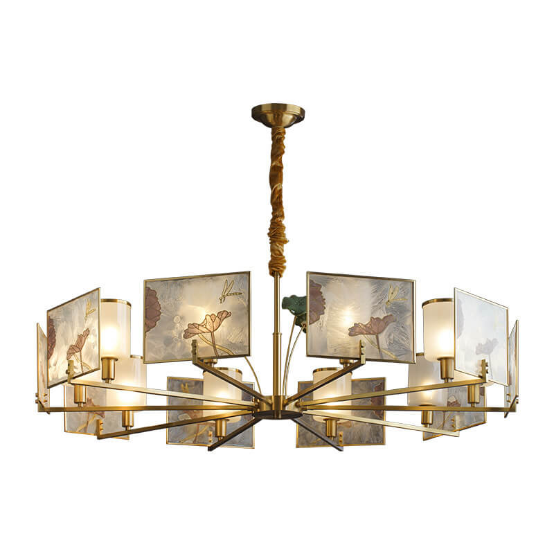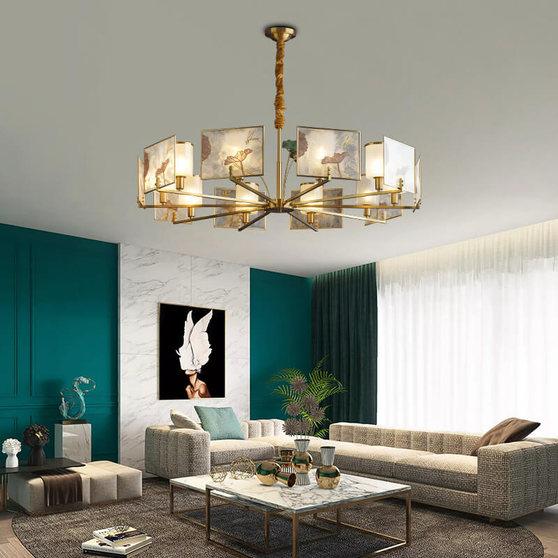 ثريا صينية تقليدية مربعة الشكل مصنوعة بالكامل من النحاس والسيراميك، 6/8/10 مصابيح لغرفة المعيشة