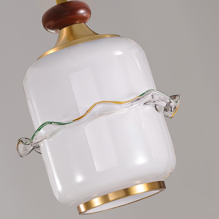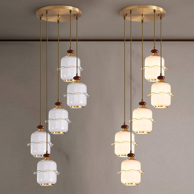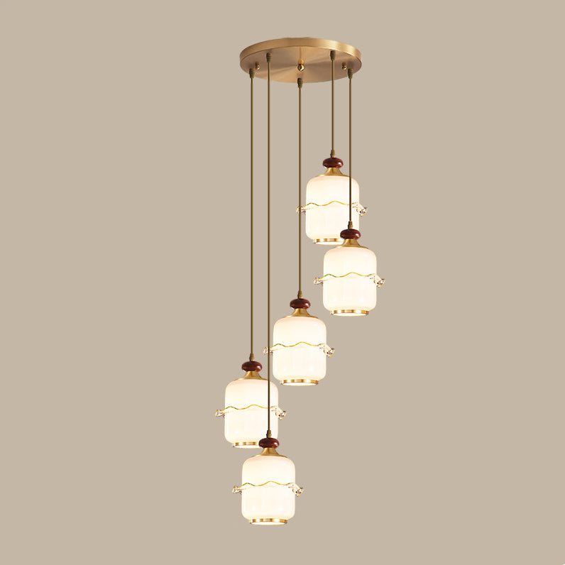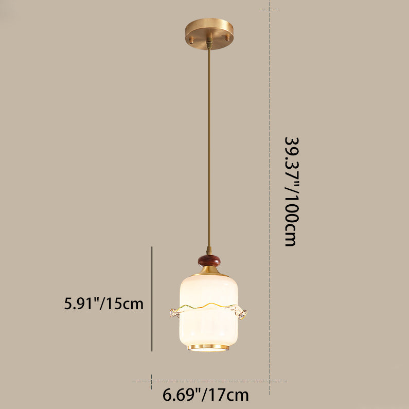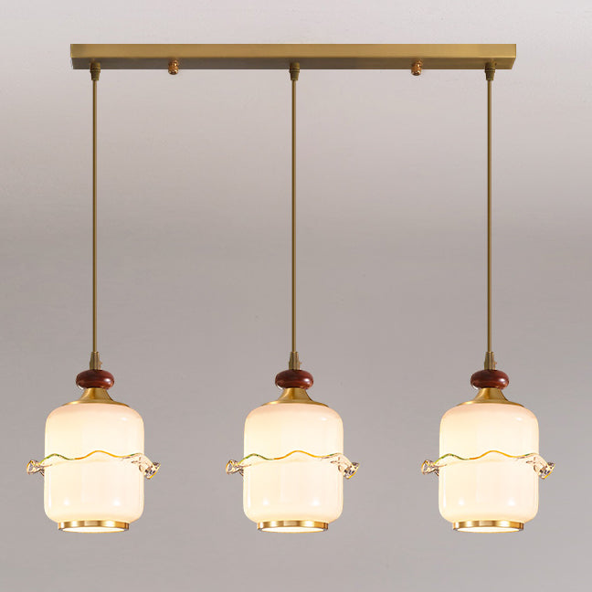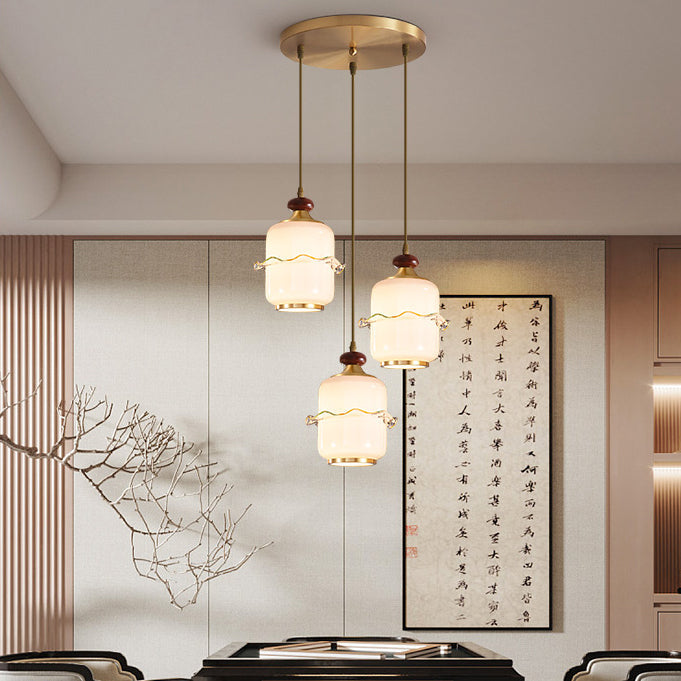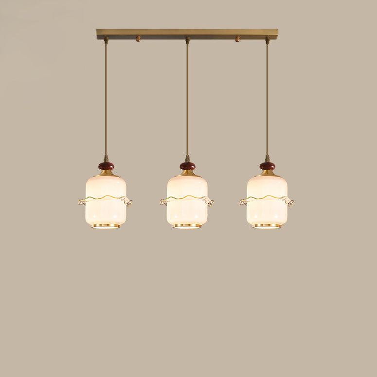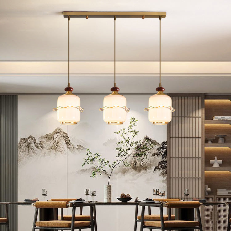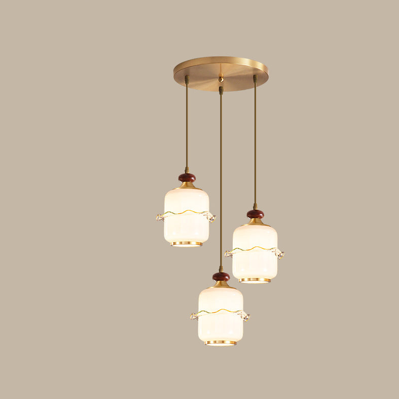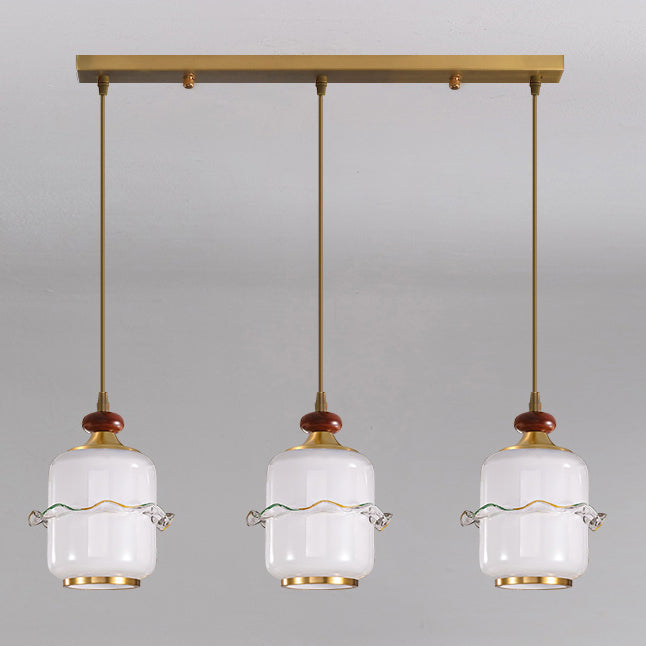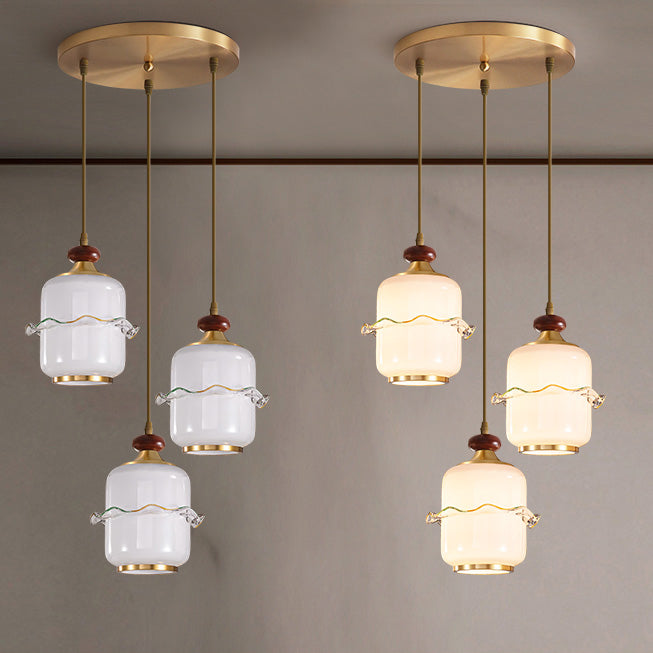 مصباح معلق صيني تقليدي من النحاس والزجاج والخشب ذو حافة مموجة أسطوانية، مكون من 1/3/5 مصابيح، مناسب لغرفة الطعام والمعيشة