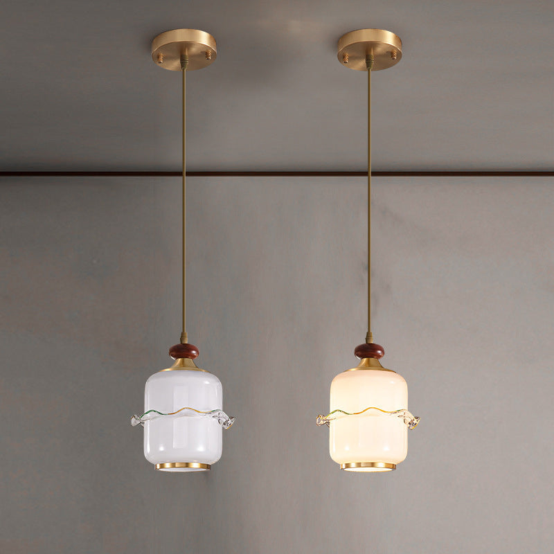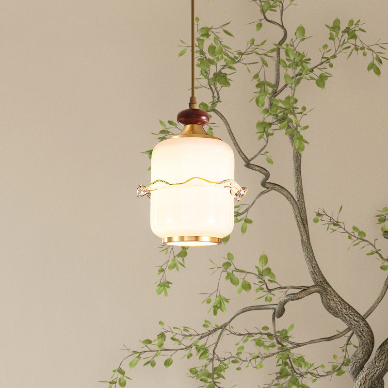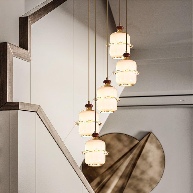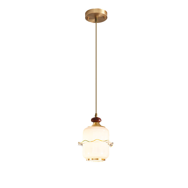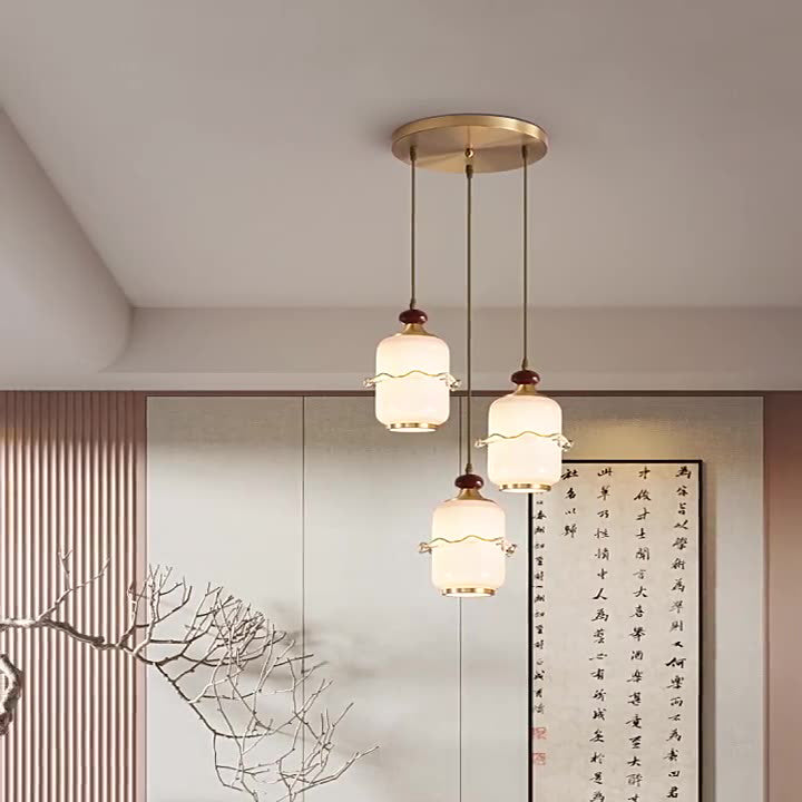 يمزج هذا المصباح المعلق الأنيق بين الجماليات الصينية التقليدية والبساطة العصرية، بهيكل أسطواني من النحاس والزجاج، مع حواف متموجة ولمسات خشبية غنية بلون الجوز. متوفر بخيارات إضاءة واحدة أو ثلاث أو خمس، وهو خيار رائع لغرف الطعام أو غرف المعيشة أو طاولات البار التي تبحث عن سحر خالد.
