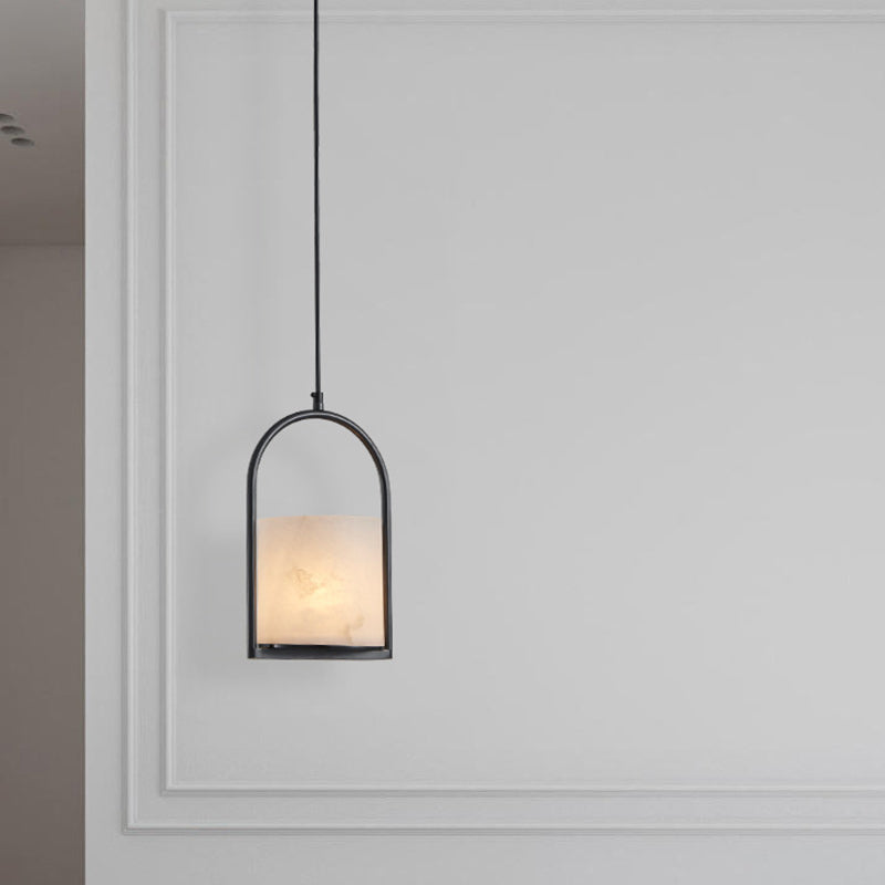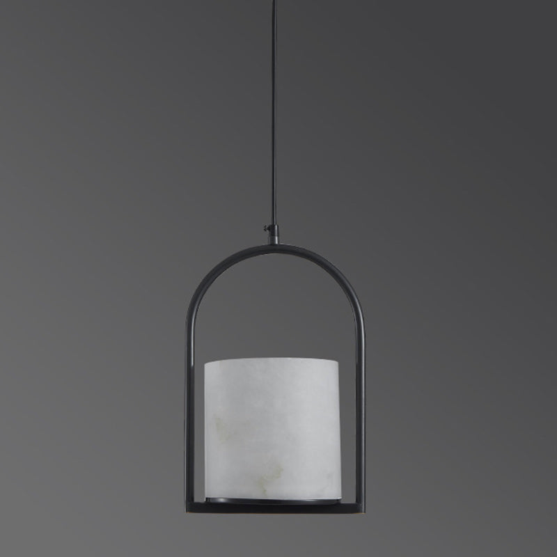 مصباح معلق صيني تقليدي من النحاس والرخام على شكل أسطوانة، مزود بإضاءة واحدة، مناسب لجانب السرير
