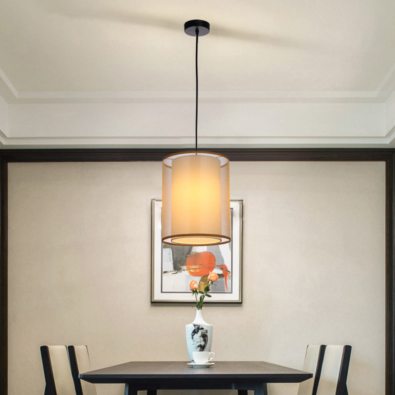 مصباح معلق صيني تقليدي مزدوج دائري من القماش الحديدي لغرفة المعيشة