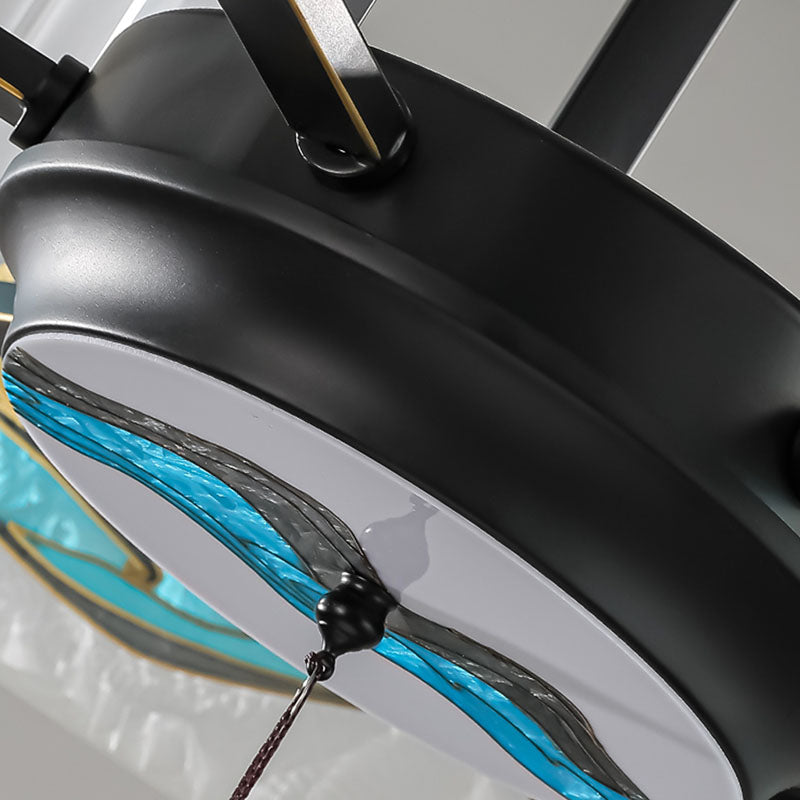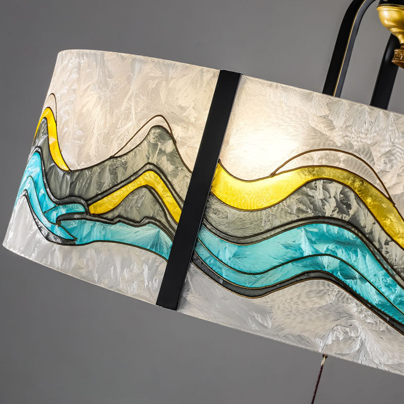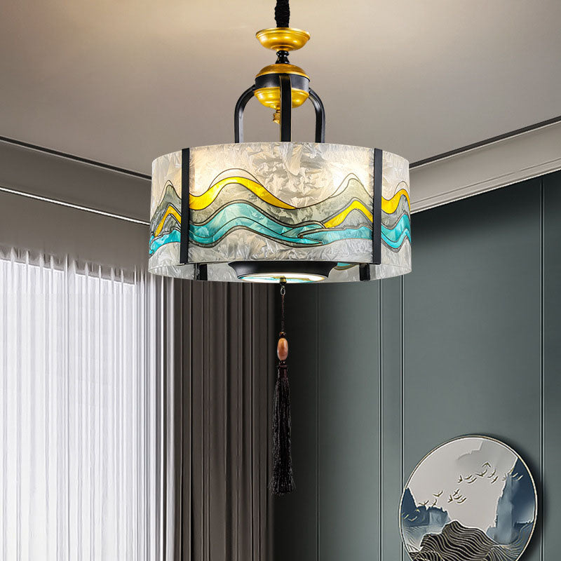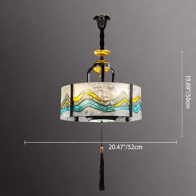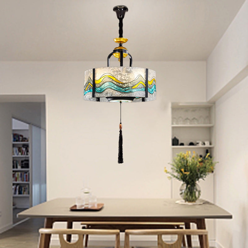 ثريات أسطوانية من المينا الصينية التقليدية مع شرابات من الحديد والأكريليك بأربعة مصابيح لغرفة الطعام