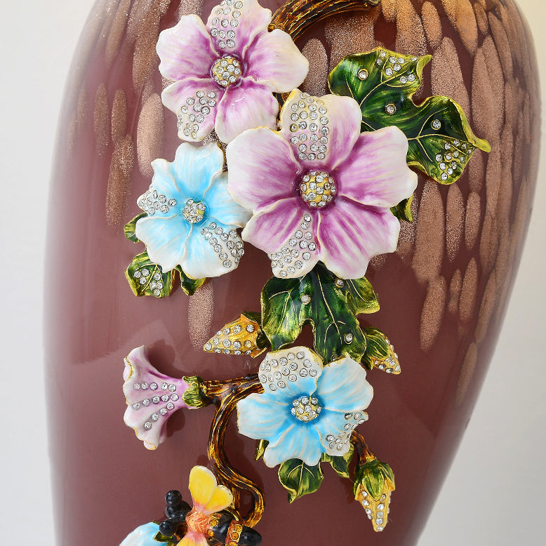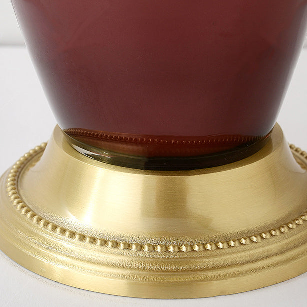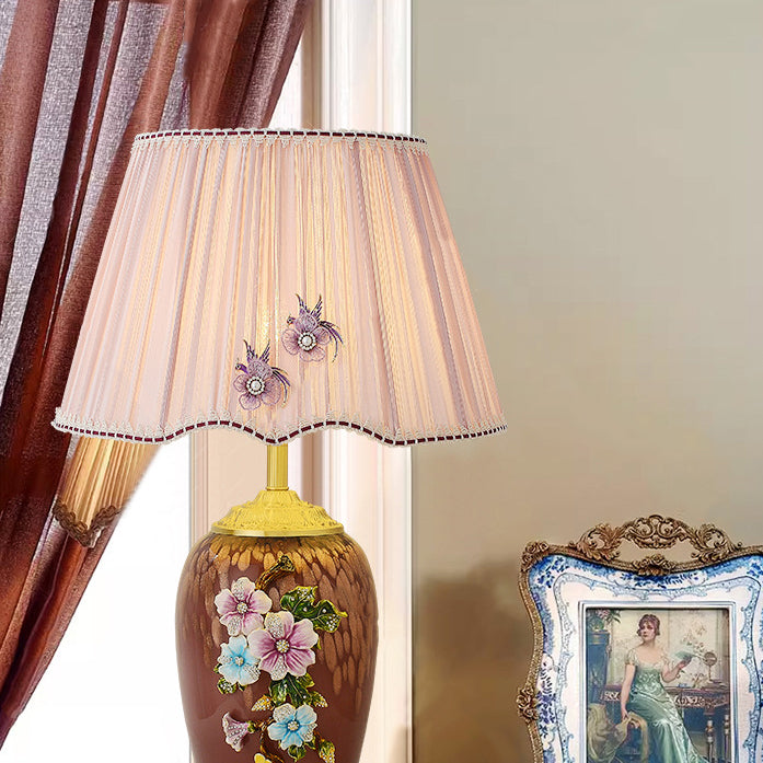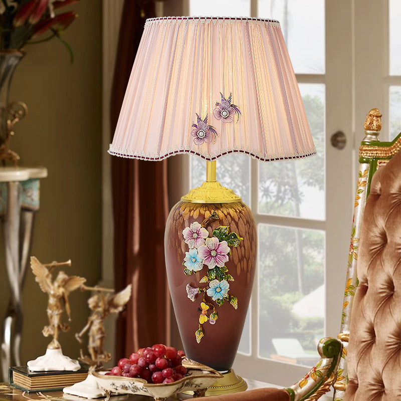 Traditional Chinese Enamel Glass Vase Base Pleated Fabric Shade 1-Light Table Lamp For Bedroom