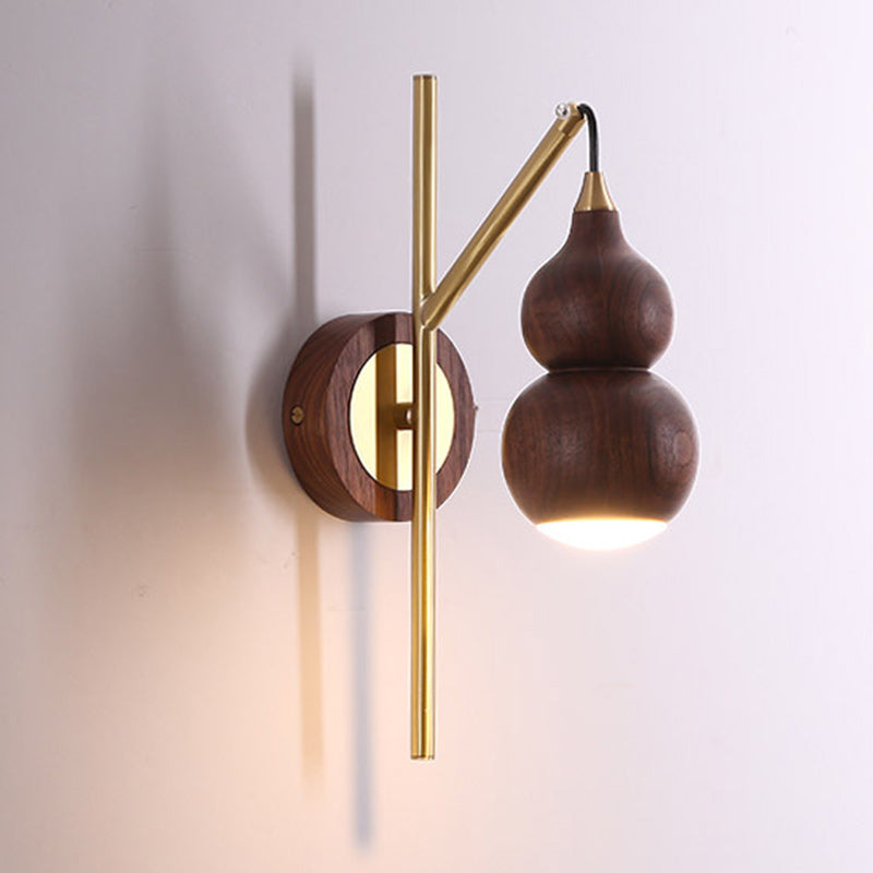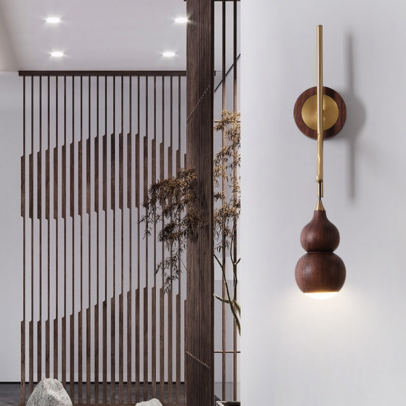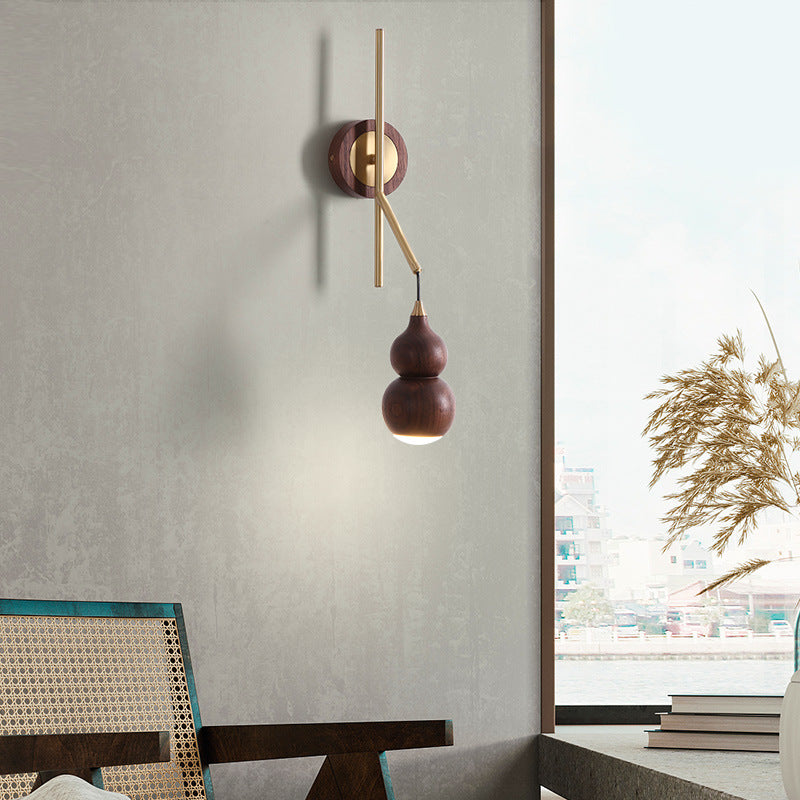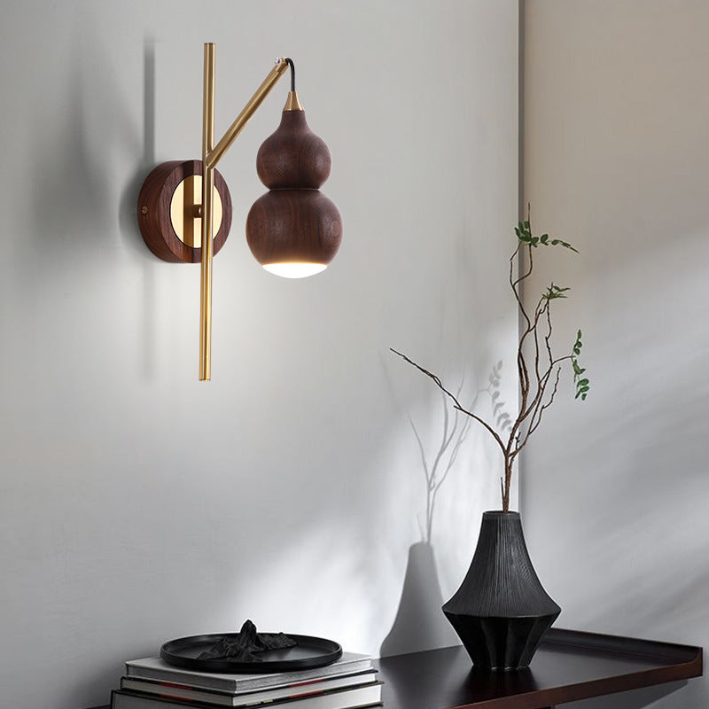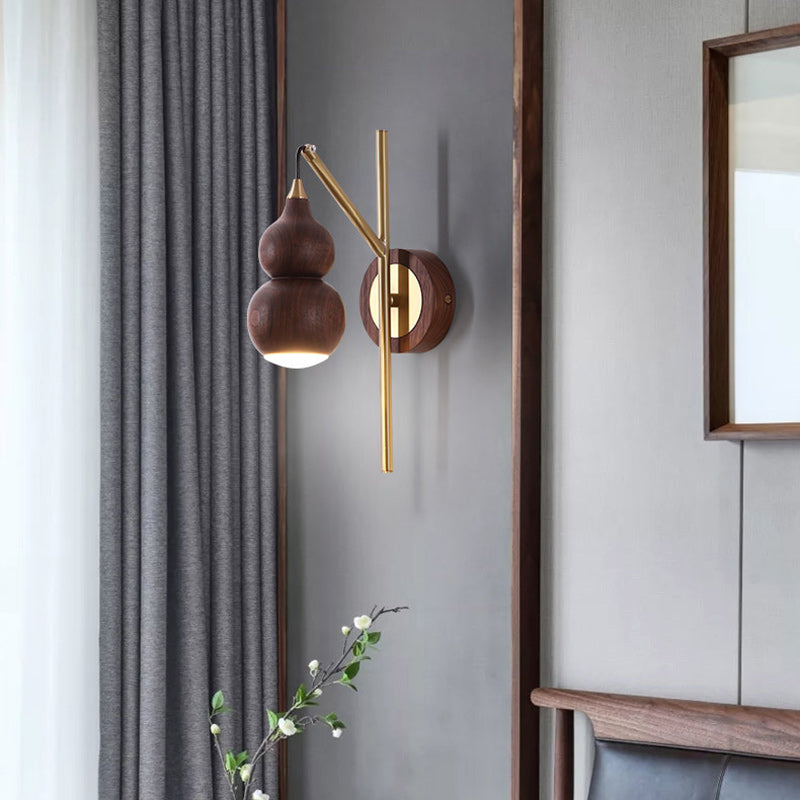 مصباح حائطي صيني تقليدي من خشب الجوز والنحاس على شكل قرع - مصباح حائطي لغرفة المعيشة
