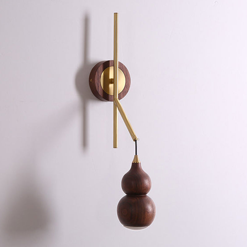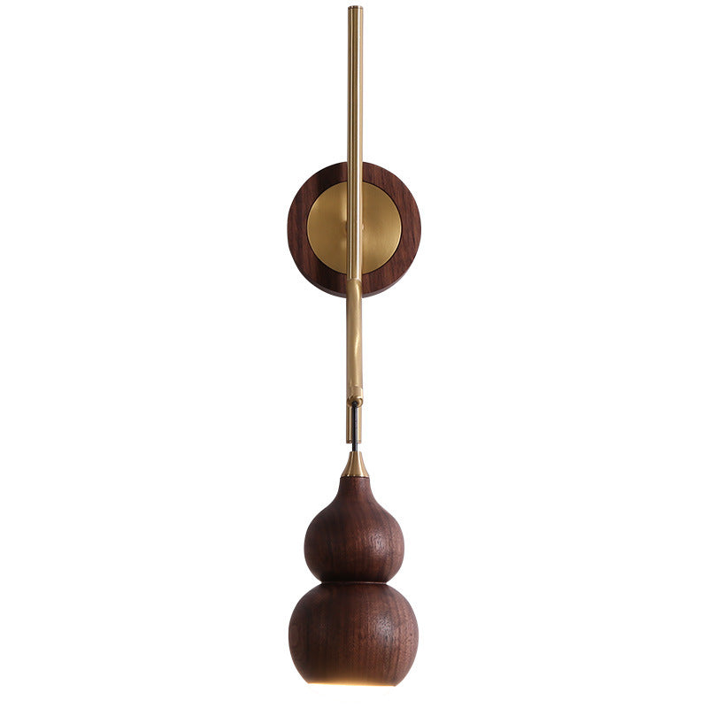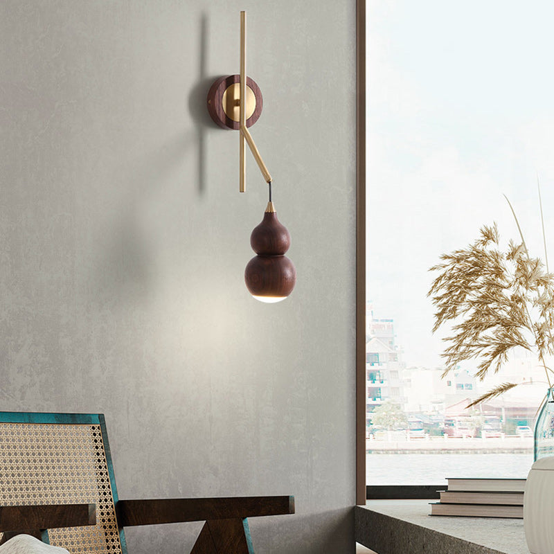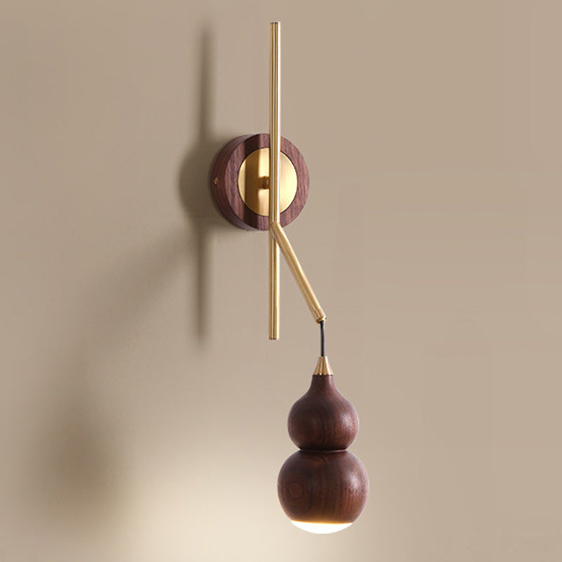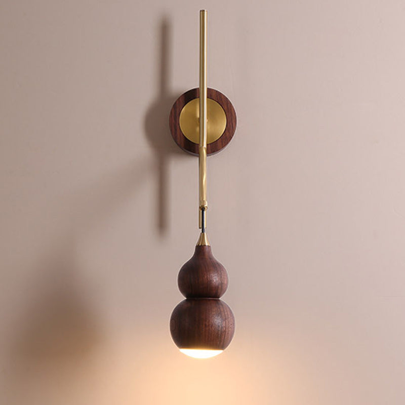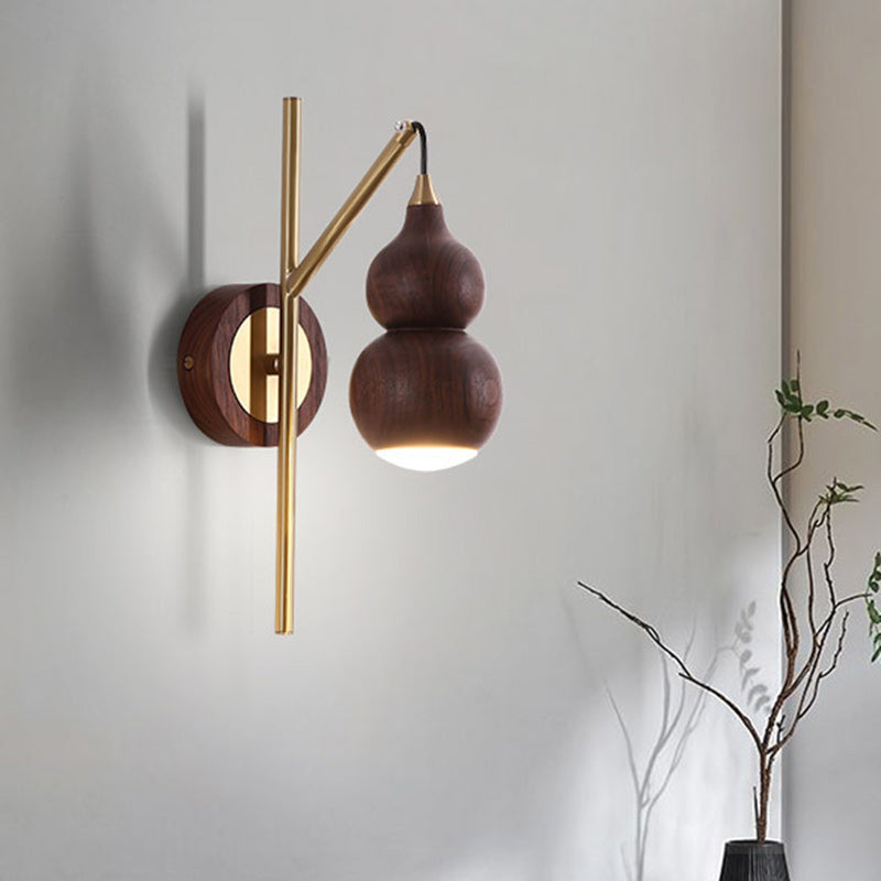 مصباح حائطي صيني تقليدي من خشب الجوز والنحاس على شكل قرع - مصباح حائطي لغرفة المعيشة