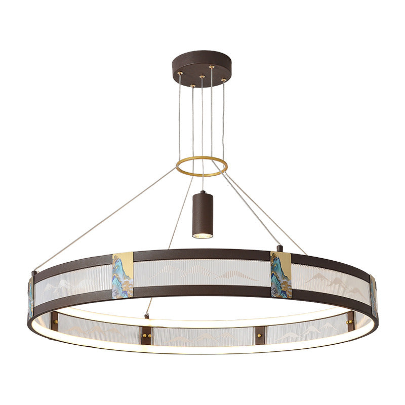 الثريات LED التقليدية الصينية المصنوعة من الحديد الأكريليكي والفولاذ المقاوم للصدأ والمطلية بالمينا المستديرة لغرفة المعيشة