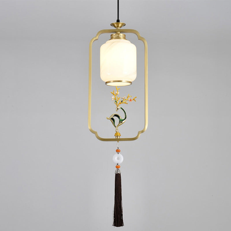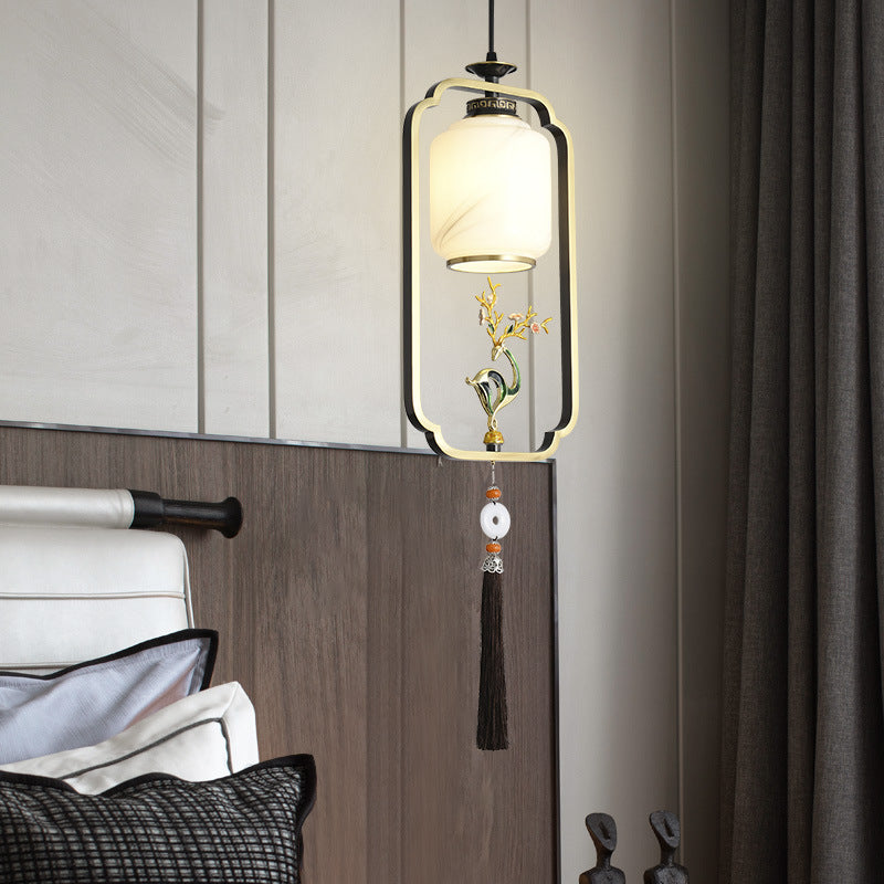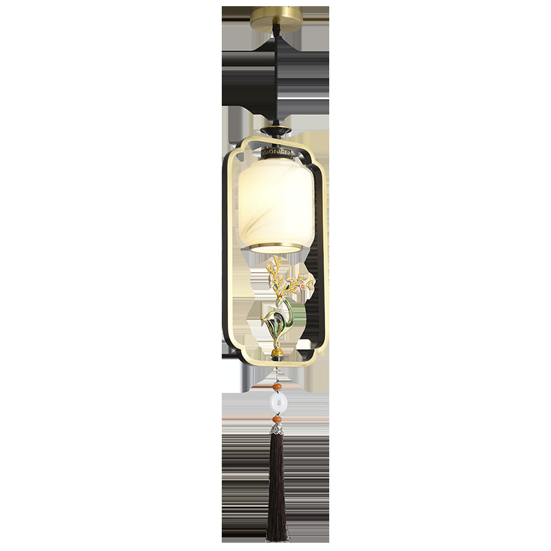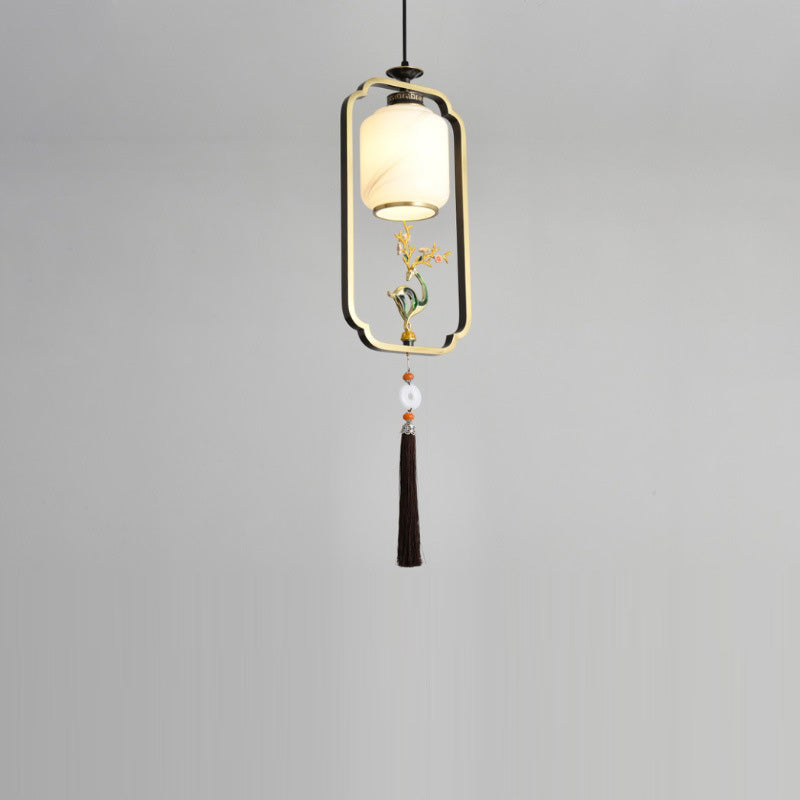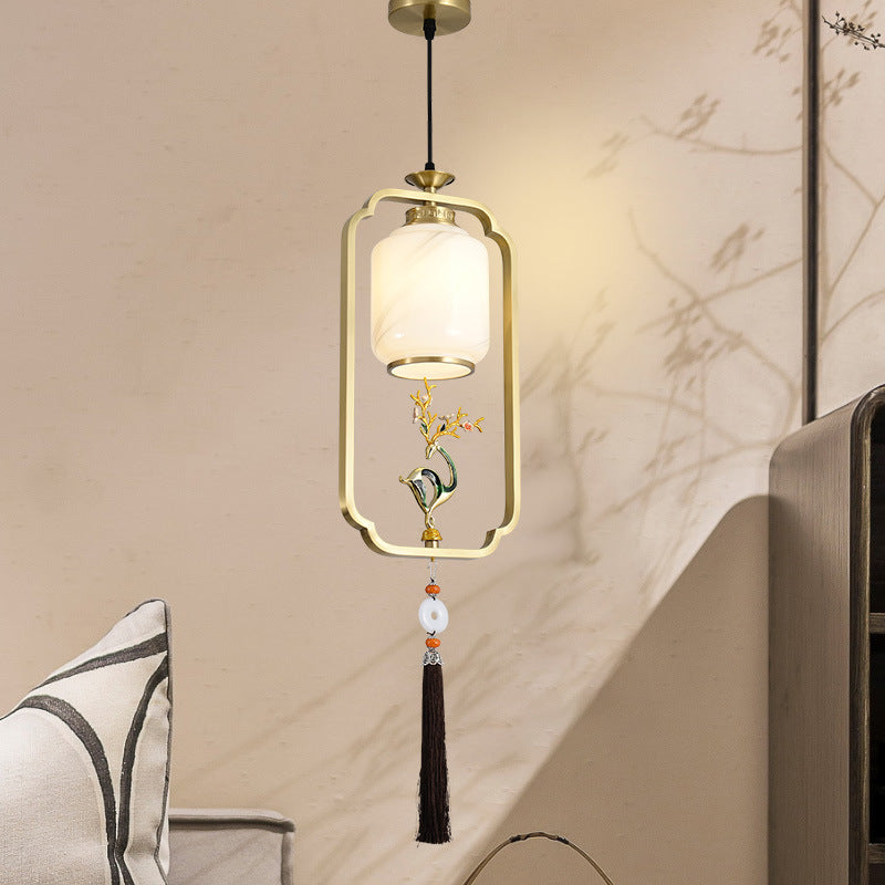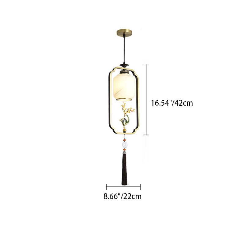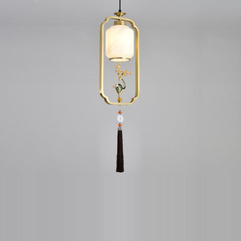 فانوس صيني تقليدي أسطواني من النحاس والزجاج وسبائك الزنك، مصباح معلق واحد لغرفة النوم
