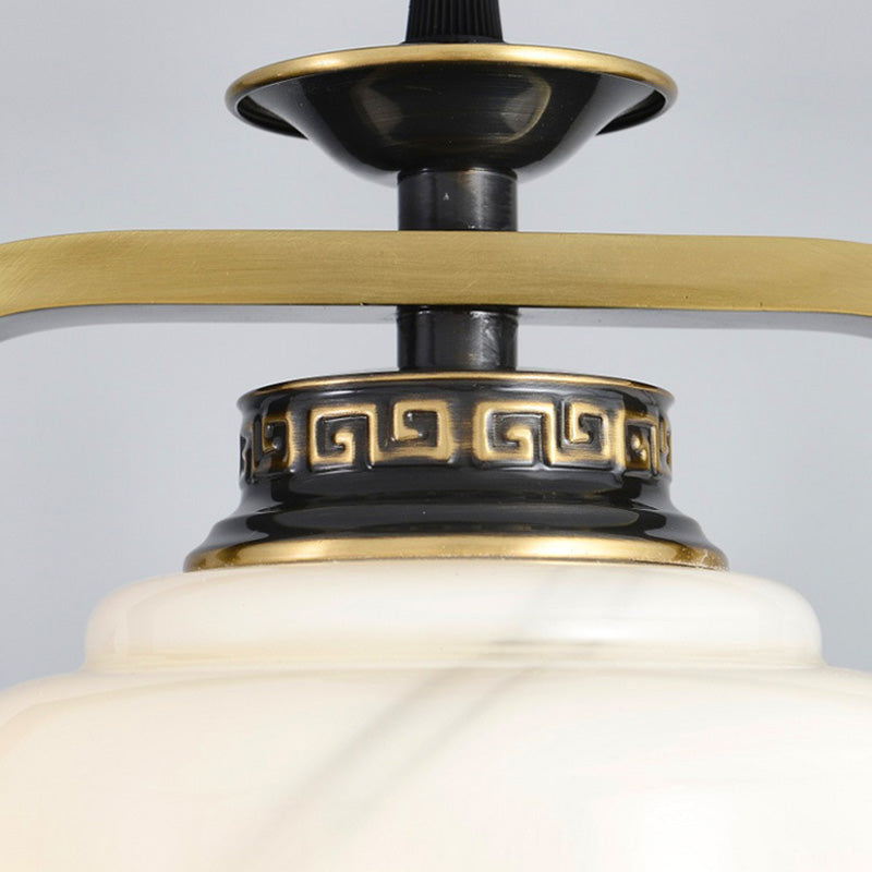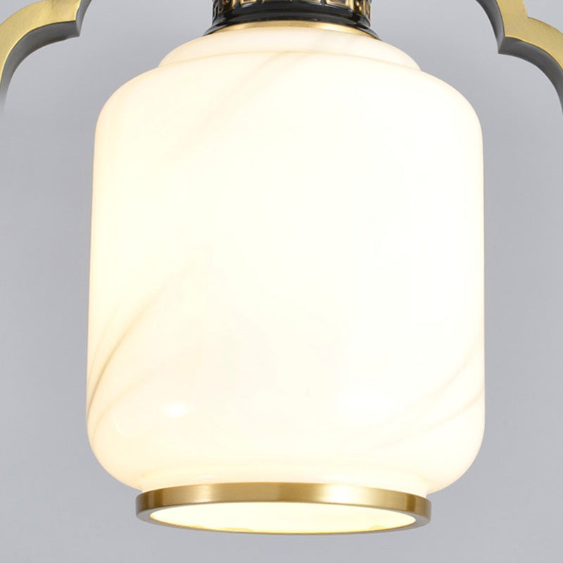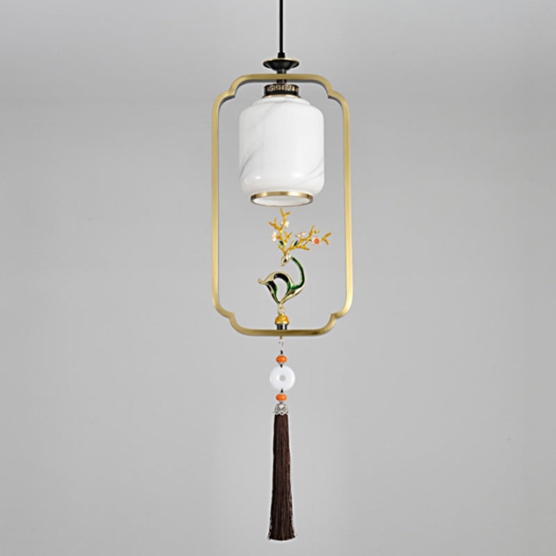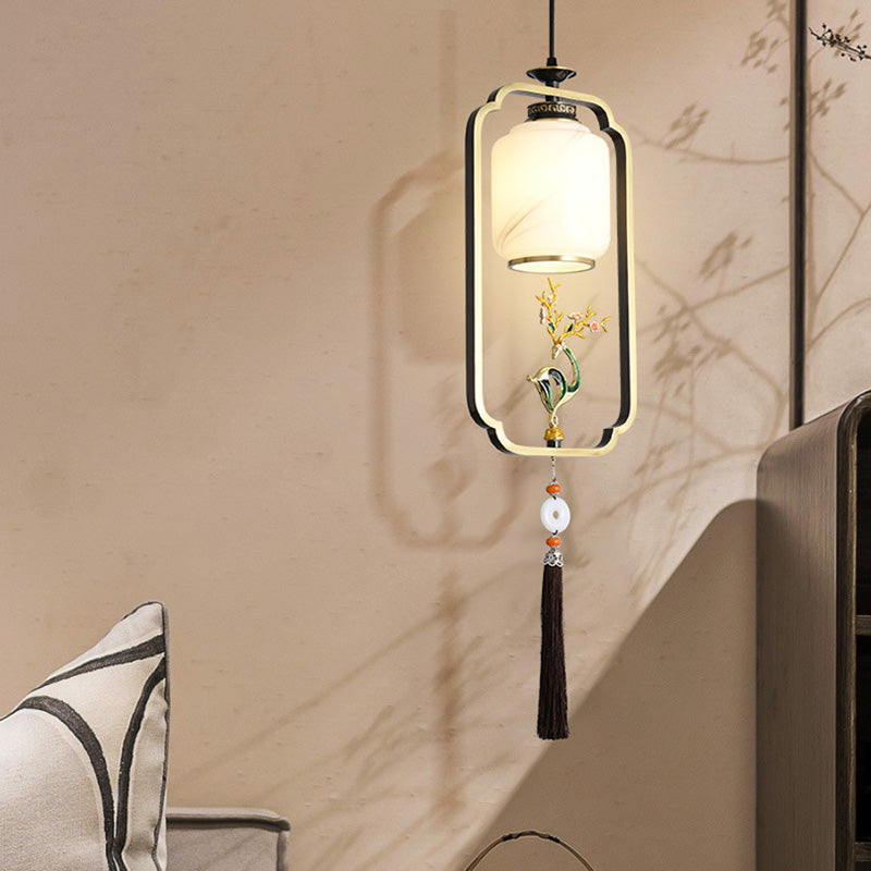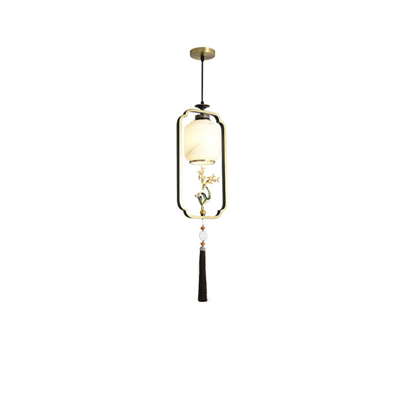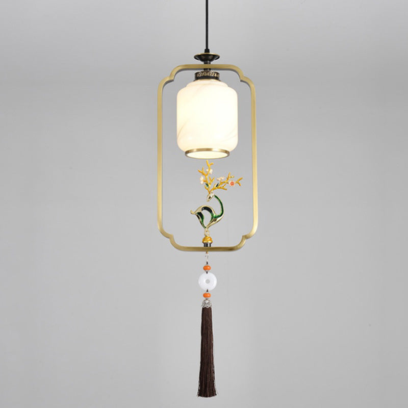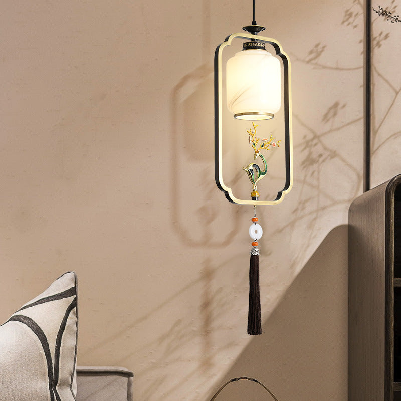 فانوس صيني تقليدي أسطواني من النحاس والزجاج وسبائك الزنك، مصباح معلق واحد لغرفة النوم