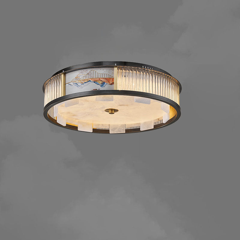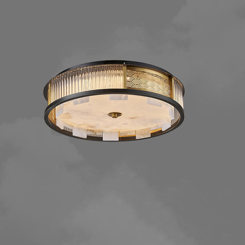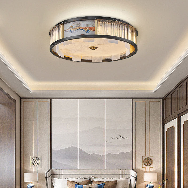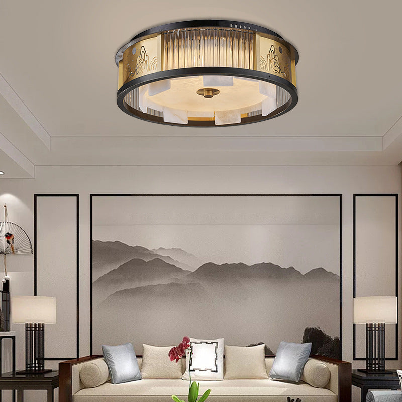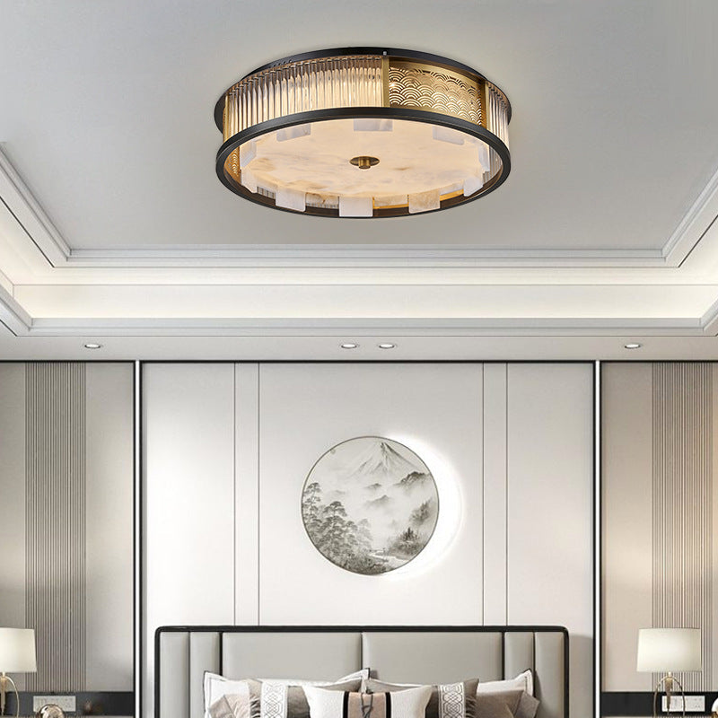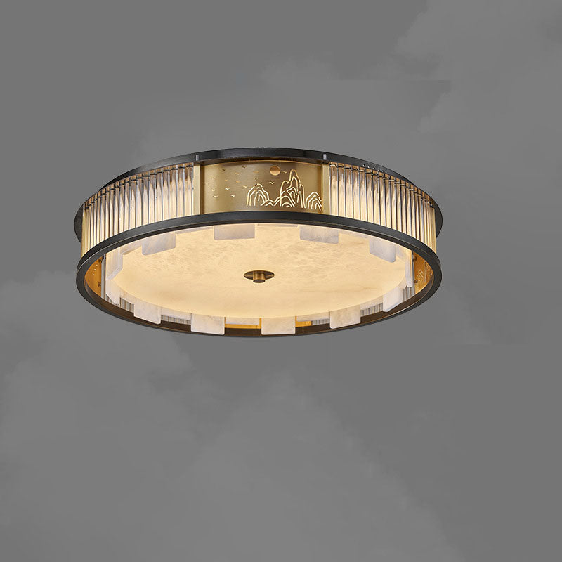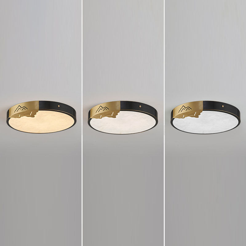 مصباح سقف LED دائري فاخر من الرخام والنحاس الصيني التقليدي لغرفة المعيشة