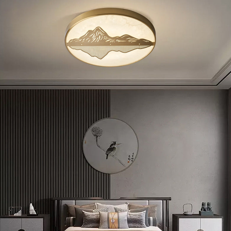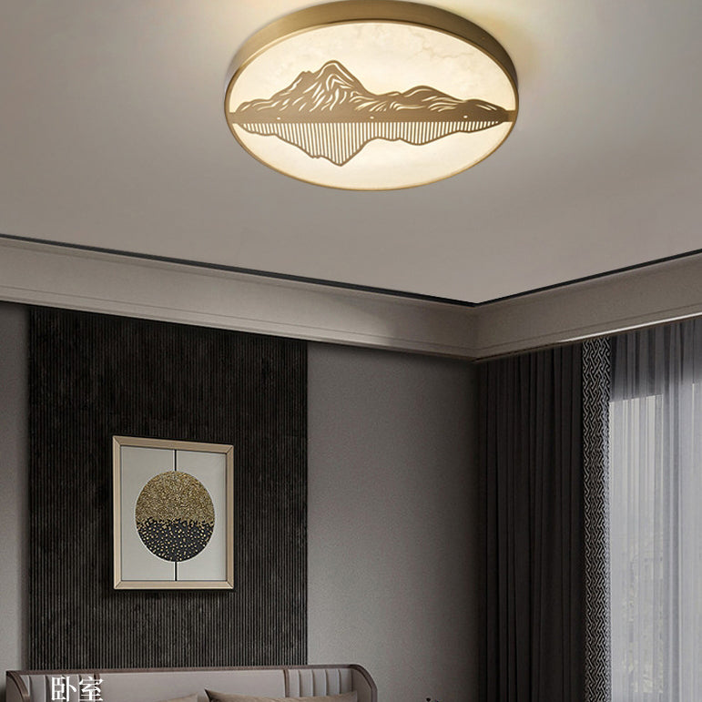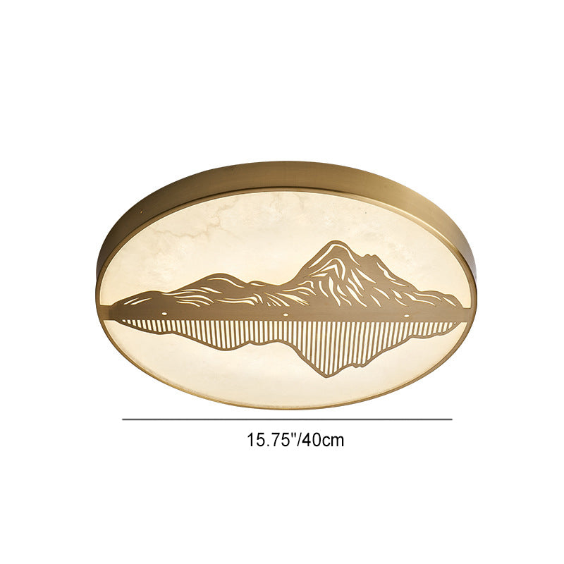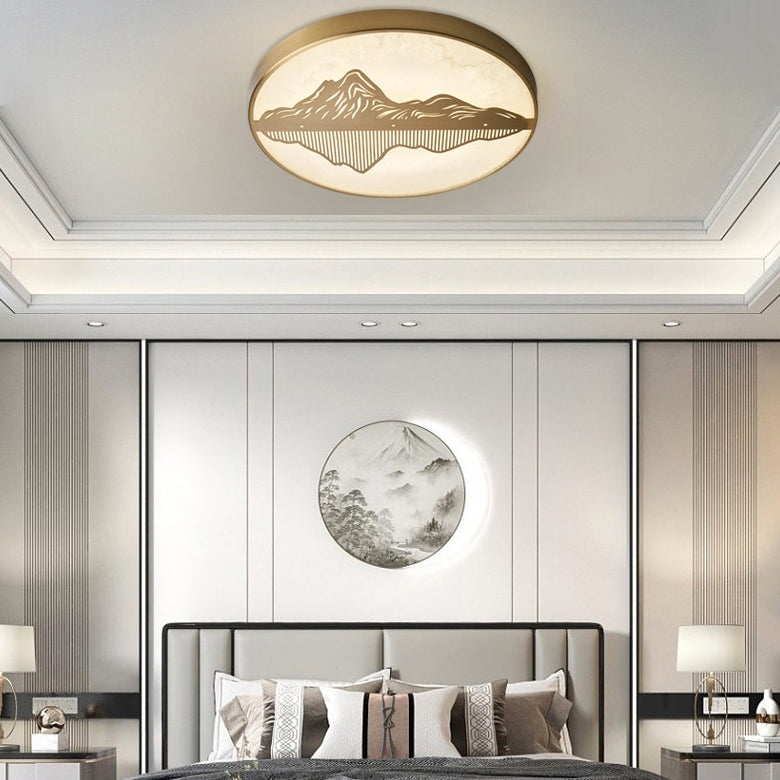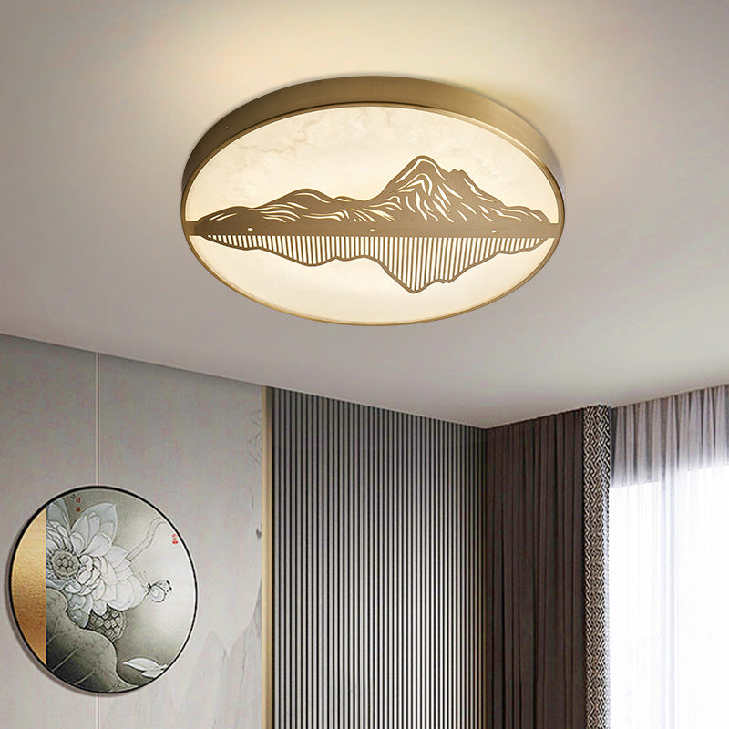 مصباح سقف LED دائري الشكل من الرخام والنحاس الصيني التقليدي لغرفة النوم