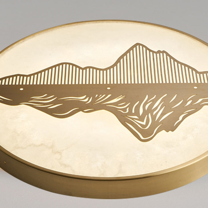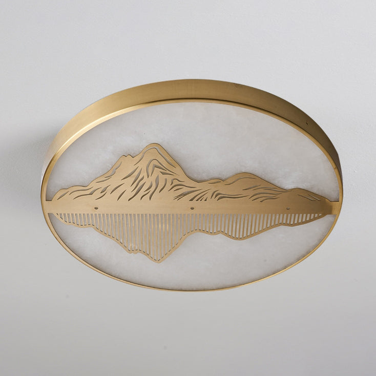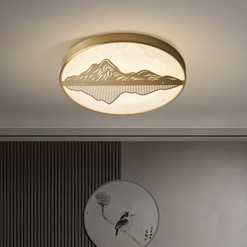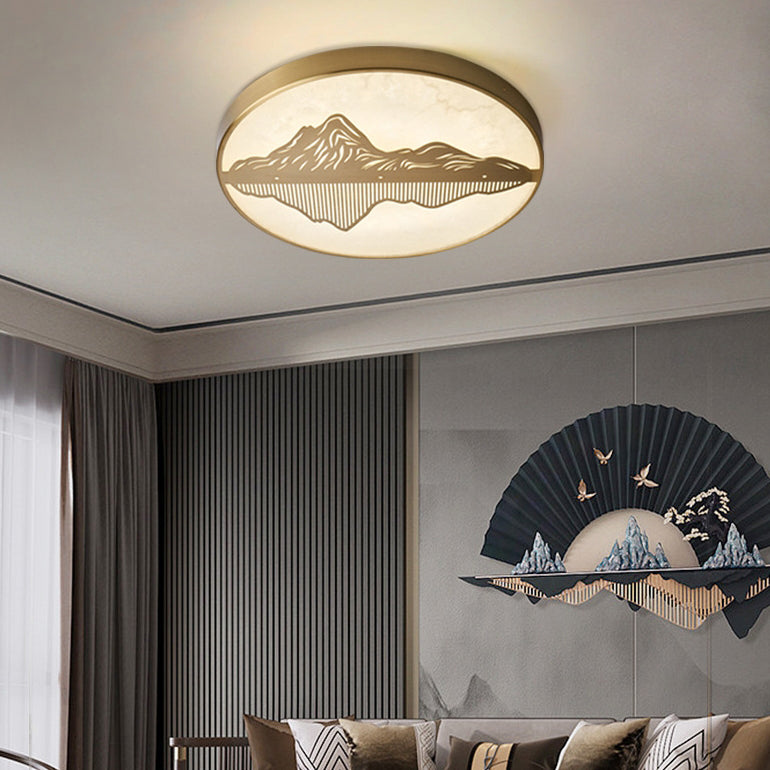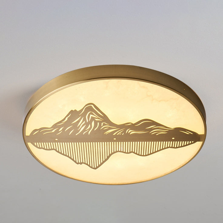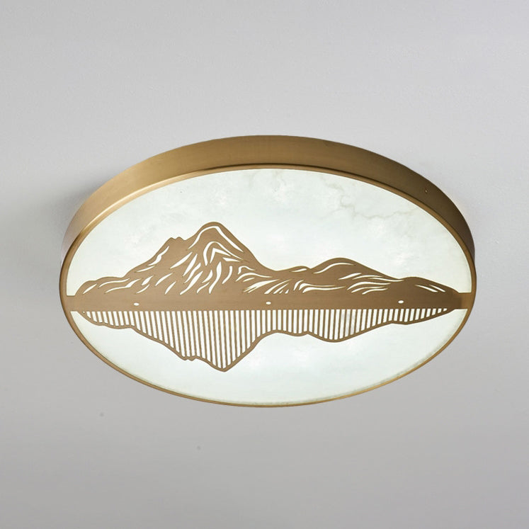 مصباح سقف LED دائري الشكل من الرخام والنحاس الصيني التقليدي لغرفة النوم