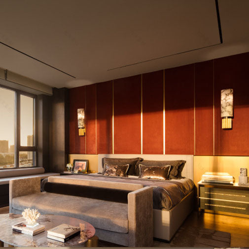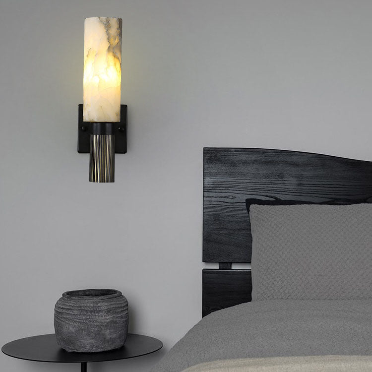 مصباح حائط أسطواني رخامي صيني تقليدي لغرفة النوم مزود بإضاءة واحدة