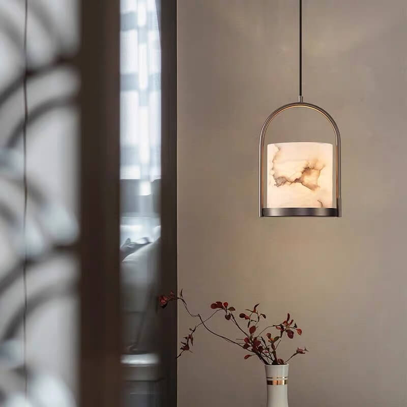 مصباح معلق أسطواني من الرخام الصيني التقليدي لغرفة المعيشة